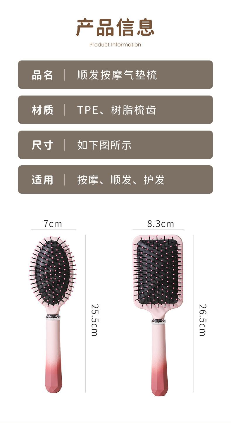 Peine de Cojín de Aire para Masaje del Cuero Cabelludo, Especial para Cabello Largo de Mujer, Color Gradiente de Aspecto Elegante, Portátil, Antiestático, Peine de Costillas Esponjoso