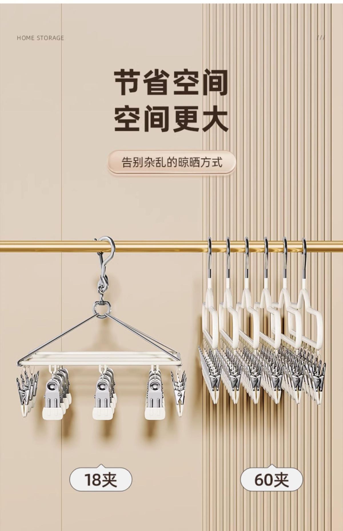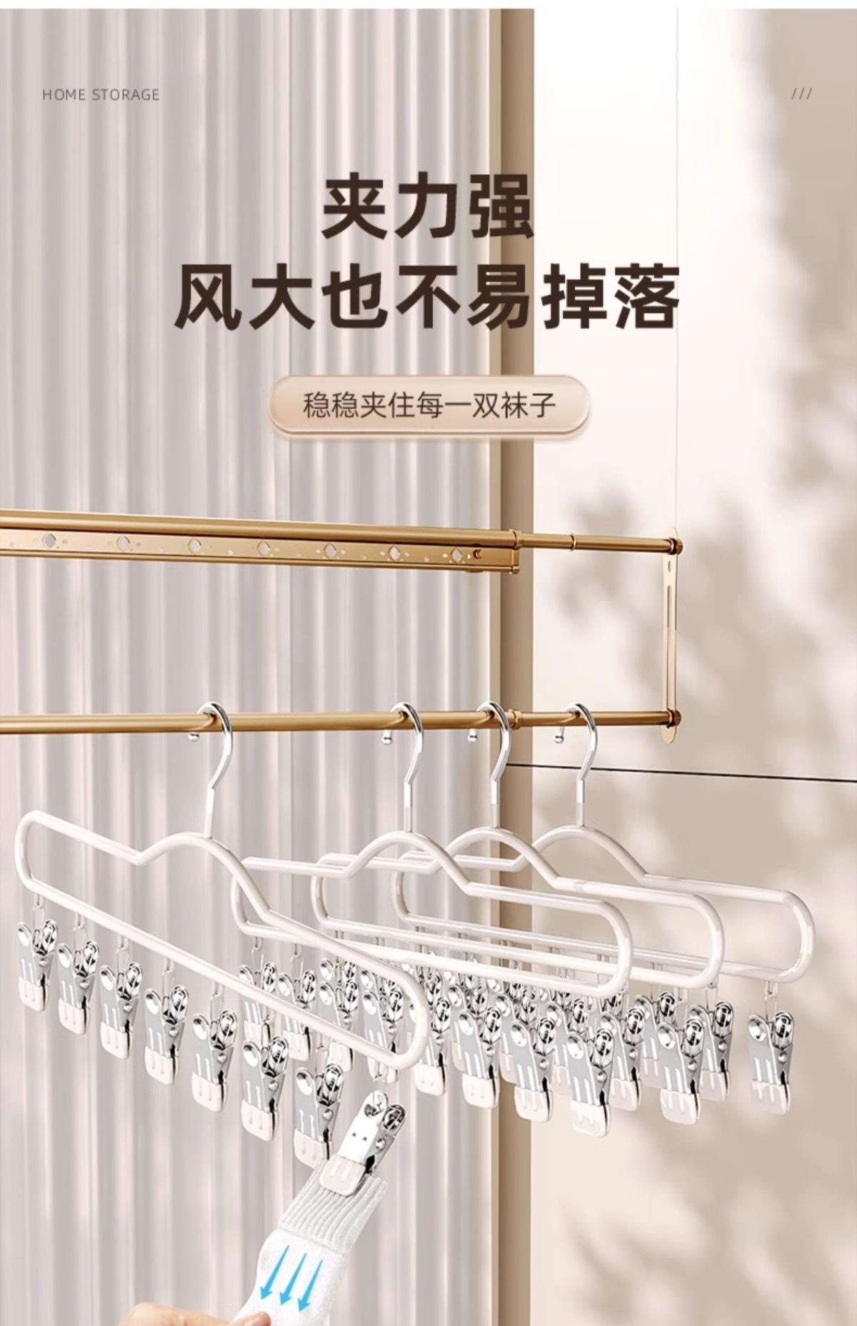 Artefacto de secado de calcetines de acero inoxidable, tendedero multifuncional para balcón, con múltiples clips, resistente al viento, gancho para el hogar
