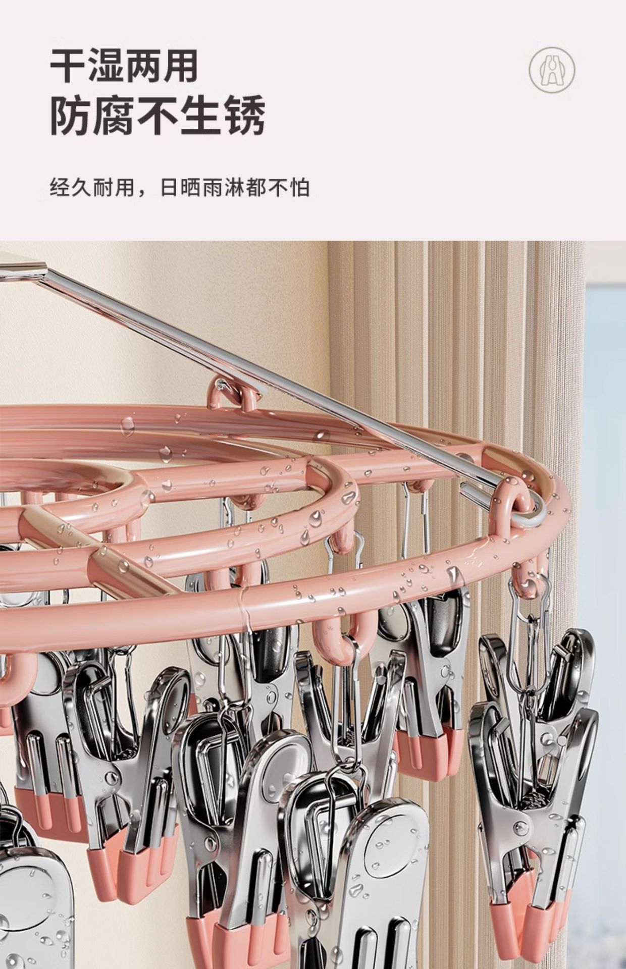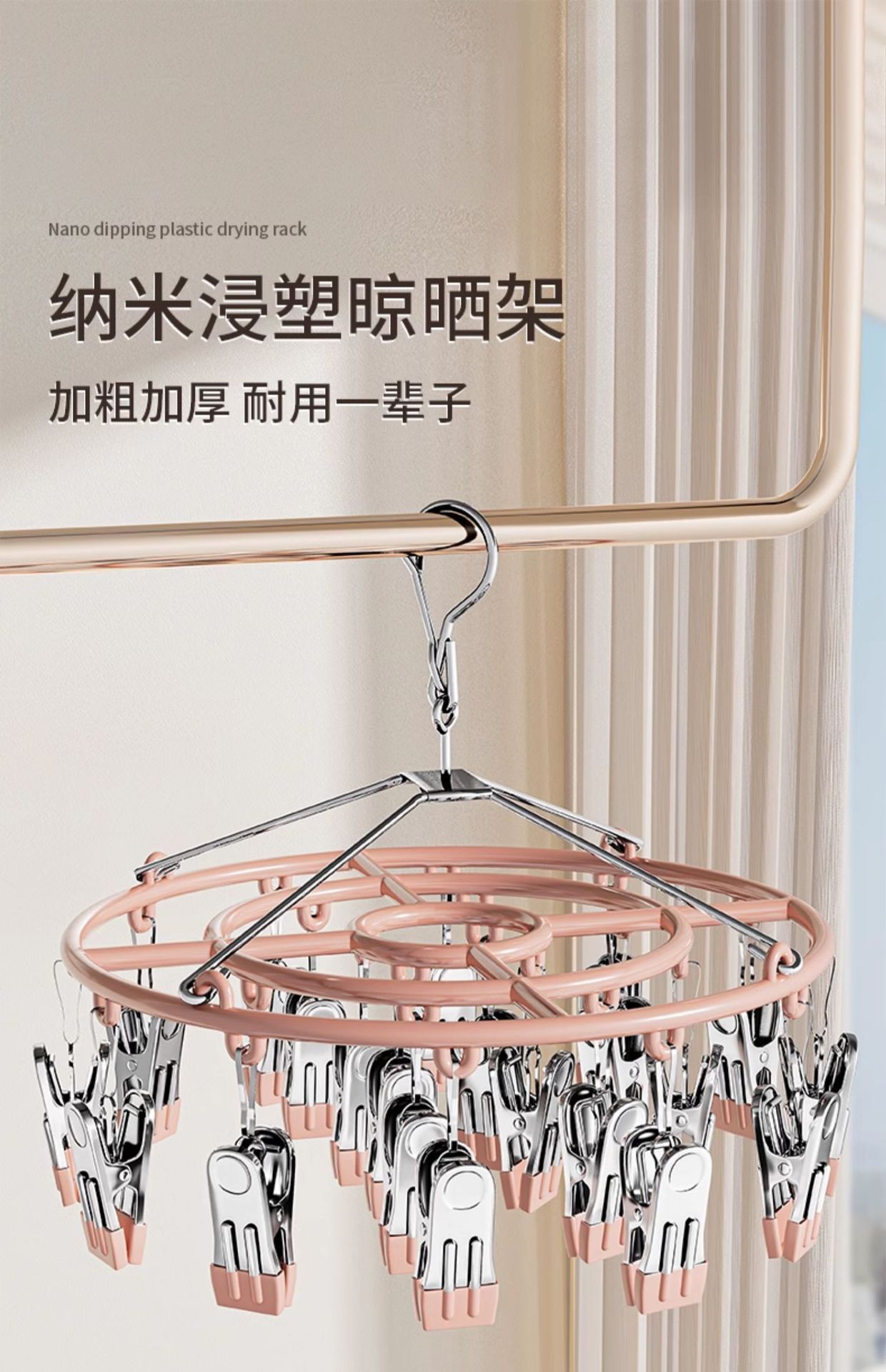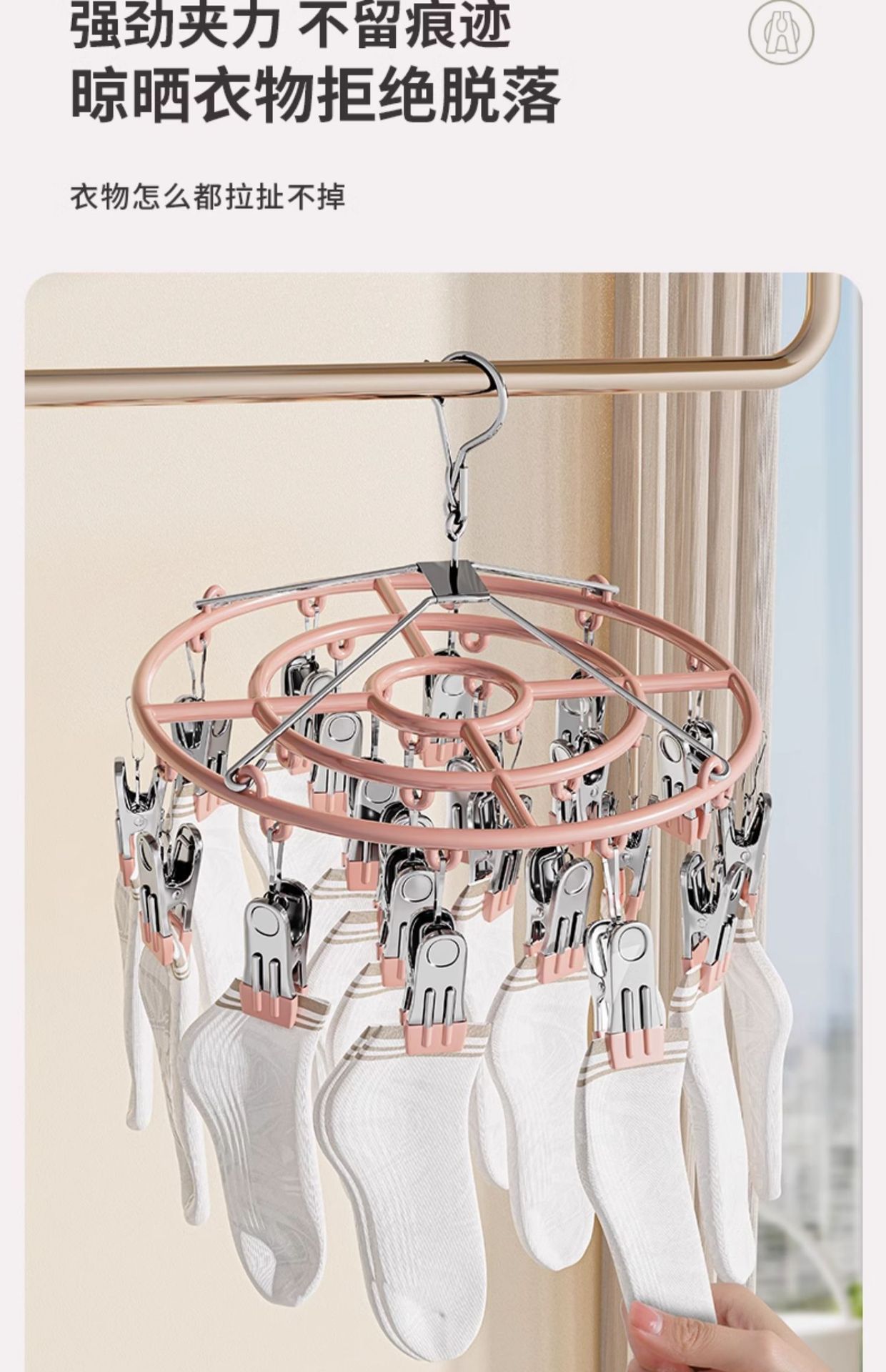 Tendedero de calcetines de acero inoxidable, tendedero de ropa para balcón, hogar, con tendedero de múltiples pinzas, artefacto de clip para secar ropa interior multifunción