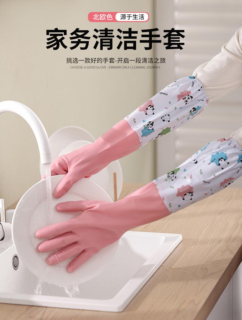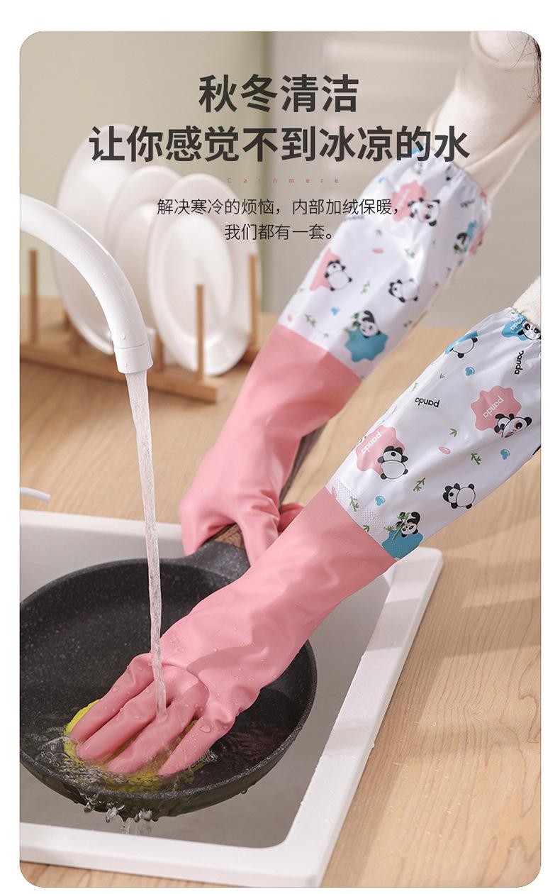 Compra Guantes de Cocina para Lavar Platos con Forro Polar Engrosados de Látex de Goma Guantes para Tareas Domésticas Lavandería Impermeables Extendidos Cálidos al por mayor en Joom.pro