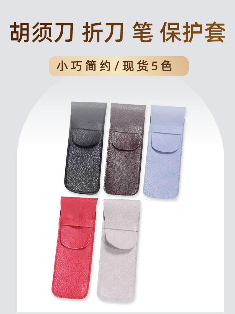 Funda para navaja de barba de punto transfronterizo personalizable funda protectora para navaja plegable múltiples bolsas de almacenamiento para bolígrafos herramienta depiladora estuche de cuero funda protectora para navaja puede imprimir logotipo estuche de cuero para almacenamiento de navaja manual