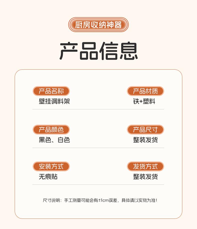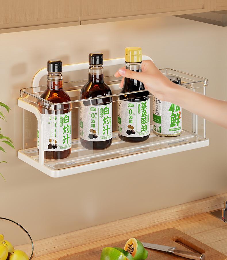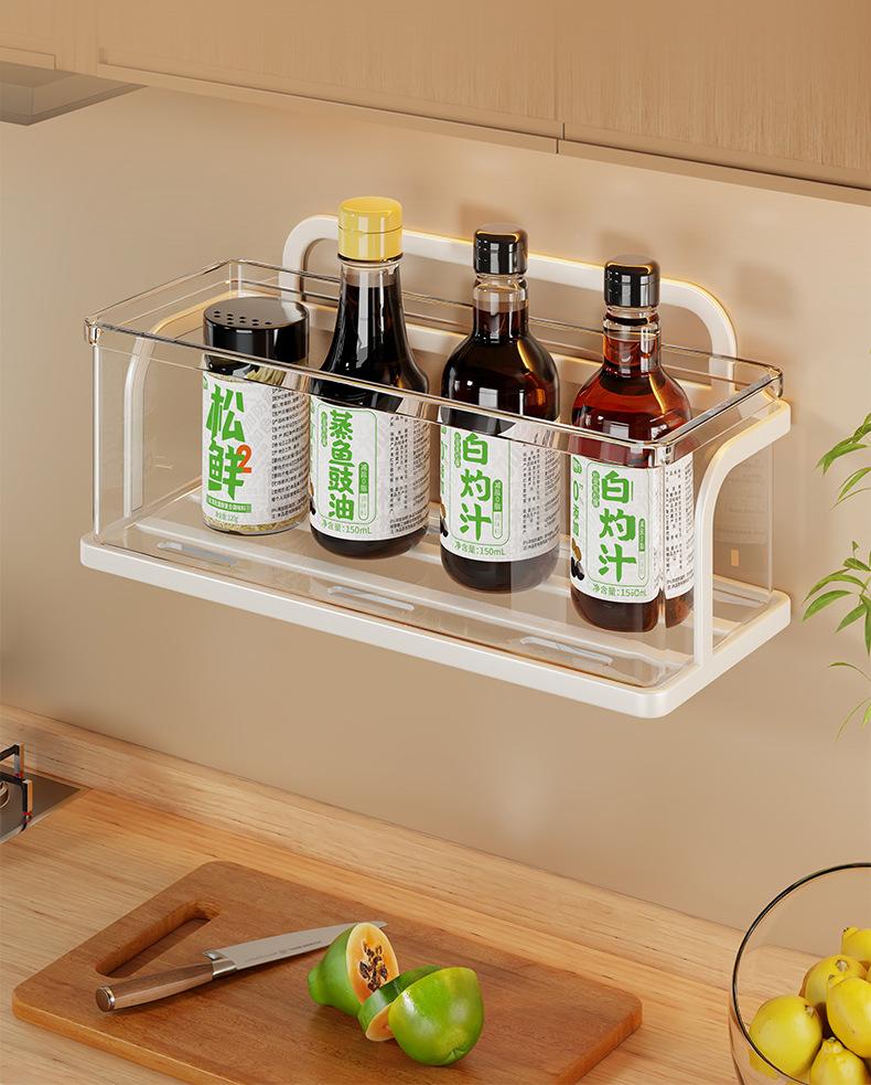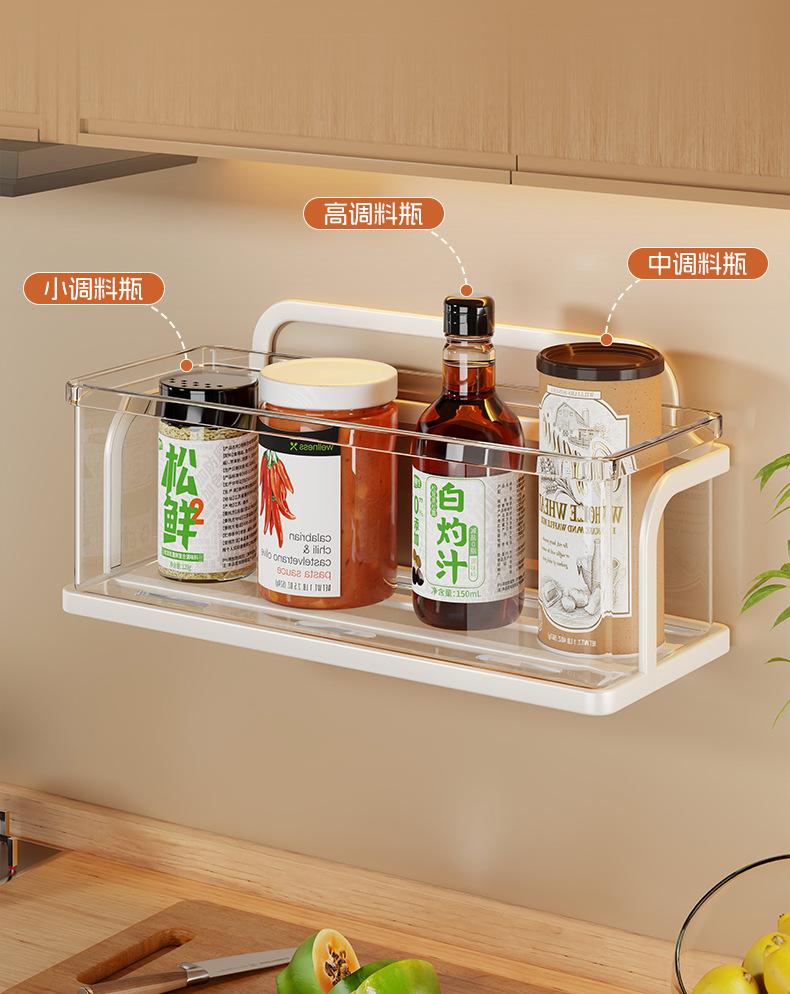 Cesta de Almacenamiento de Condimentos Estante de Almacenamiento para Frascos de Condimentos Montado en la Pared Simple Sin Perforaciones Estante para Colocar Aceite Sal Salsa Vinagre