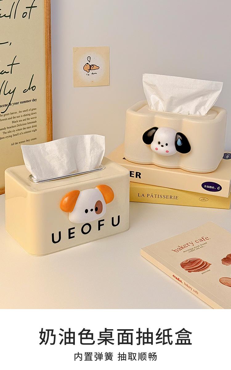 Cloud Tissue Box【Lifting Spring】+Khaki Dog Patch