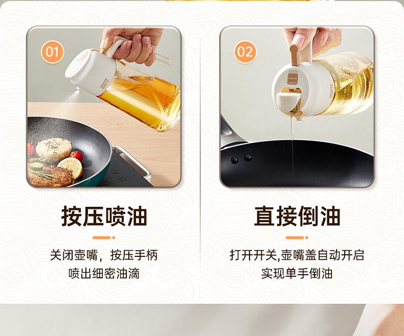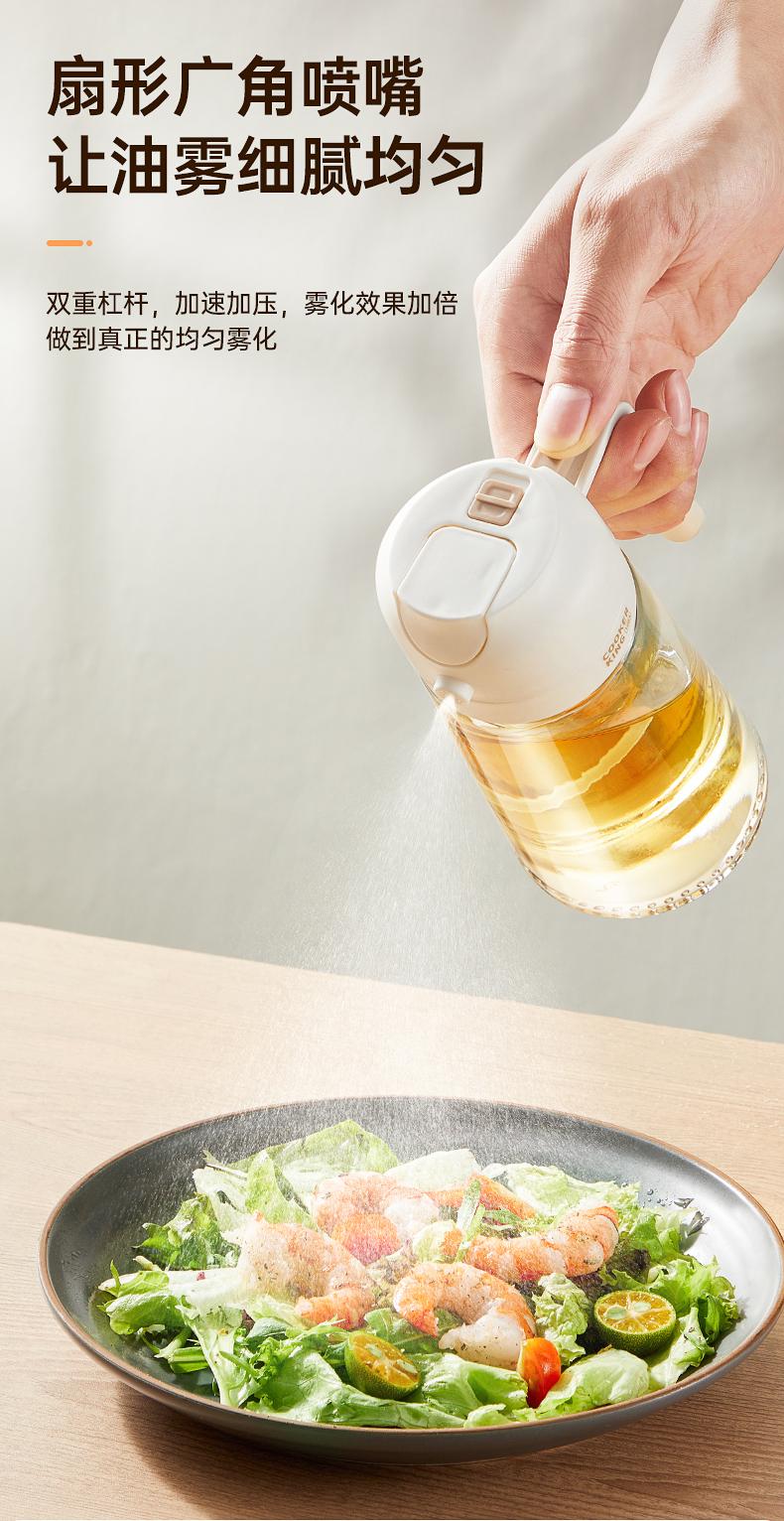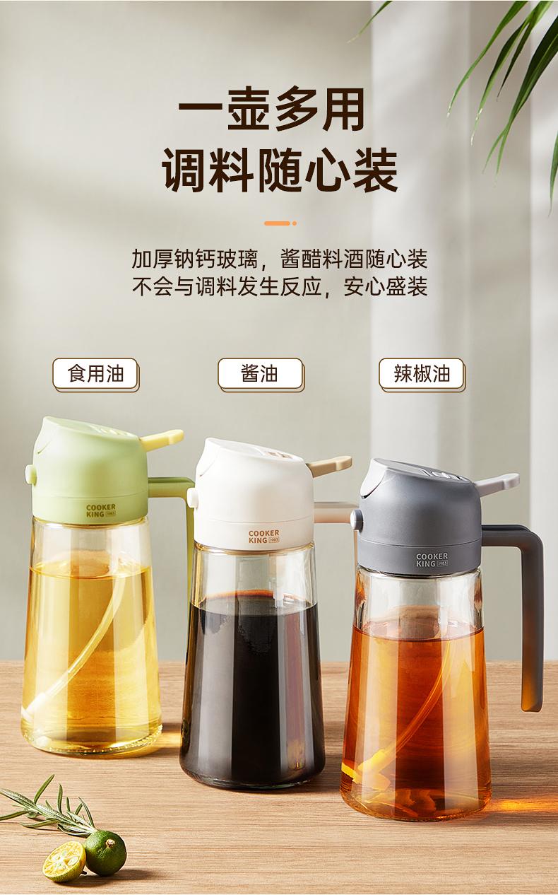 Olla de aceite para el hogar al por mayor, rociador de cocina, olla para aceite comestible de doble uso, rociador, vidrio, botella rociadora de aceite dos en uno