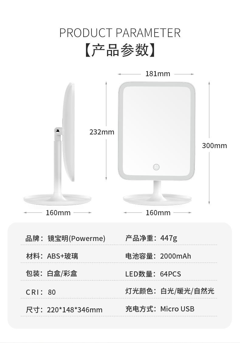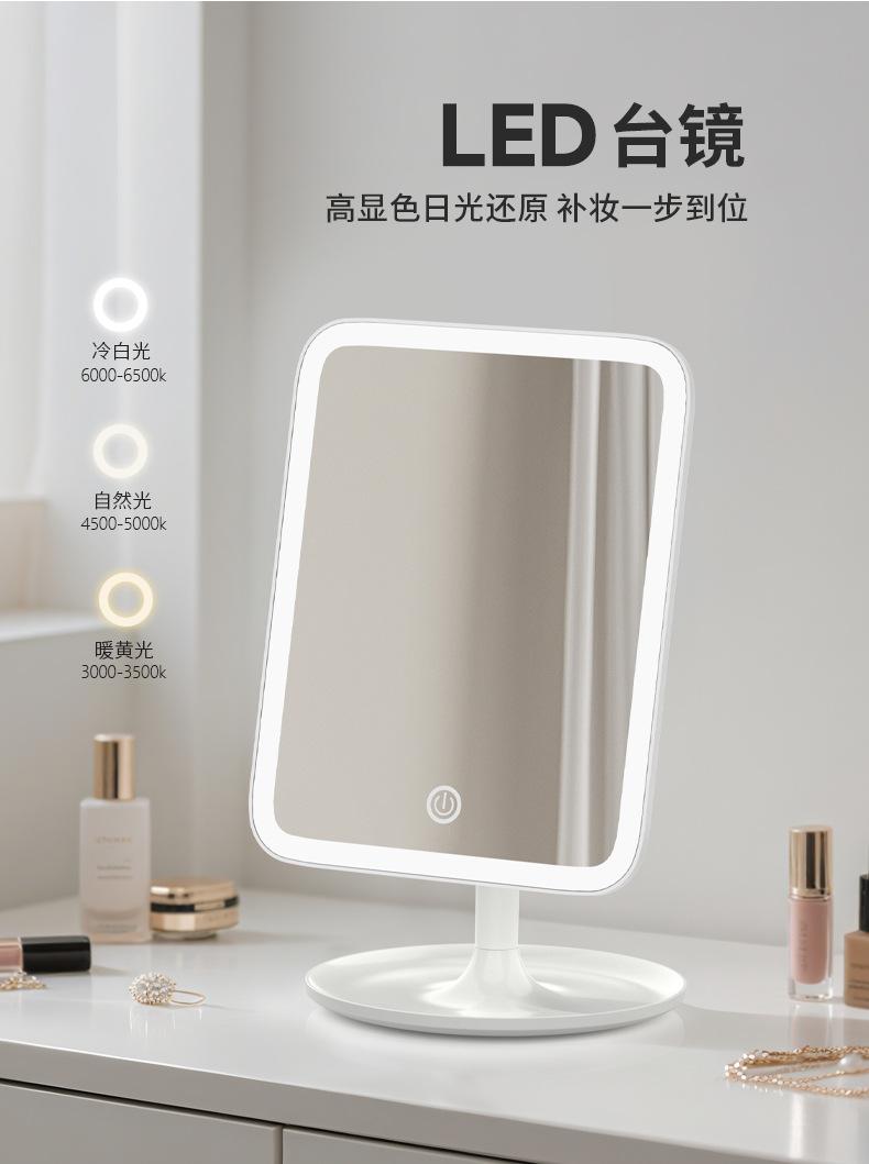 Espejo de Maquillaje LED con Luz, Espejo de Tocador Portátil de Escritorio para Dormitorio de Estudiantes, Espejo para Retoques en Casa