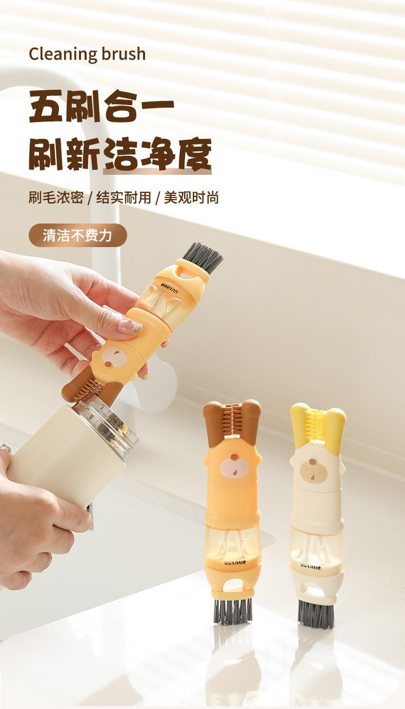 Cepillo para Tapa de Vaso Cinco en Uno Portátil Cepillo para Biberón de Bebé Juego de Cepillos de Limpieza Cepillo para Boca de Vaso Cepillo para Vaso Aislado Artefacto para Limpiar Vaso de Agua