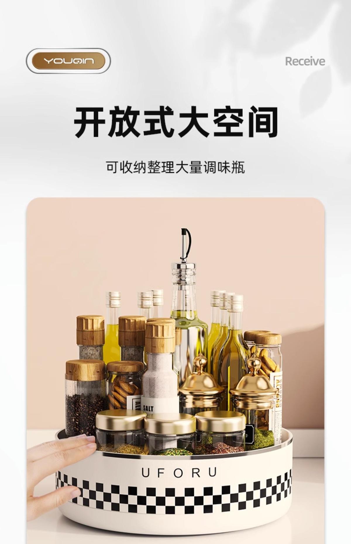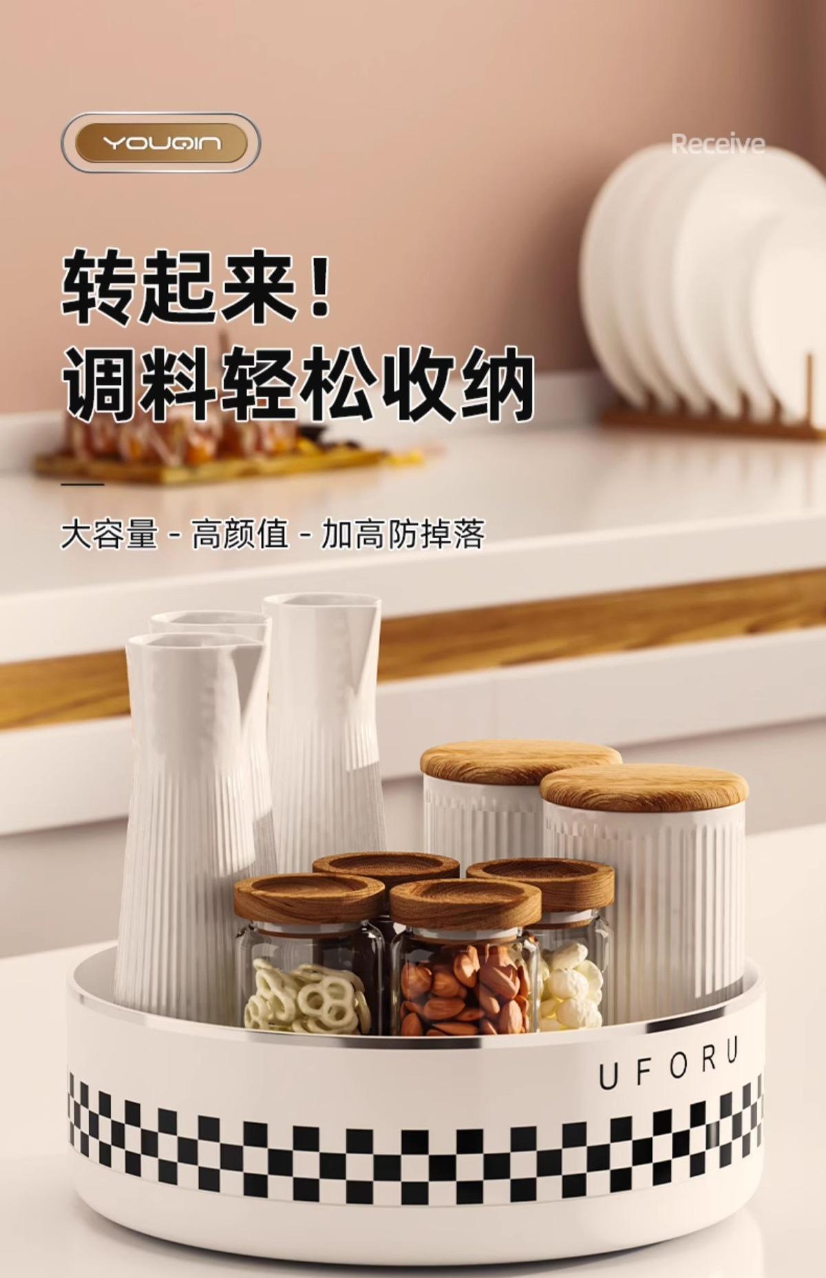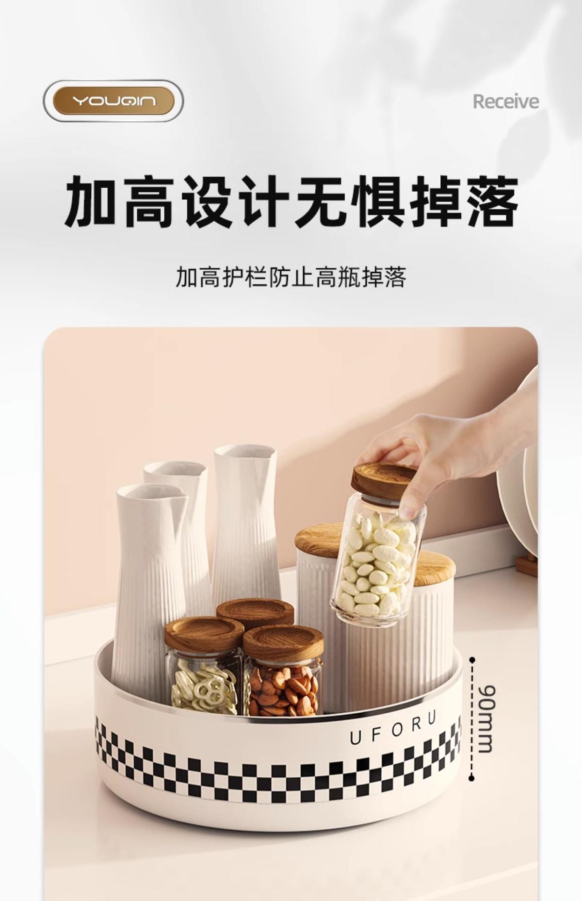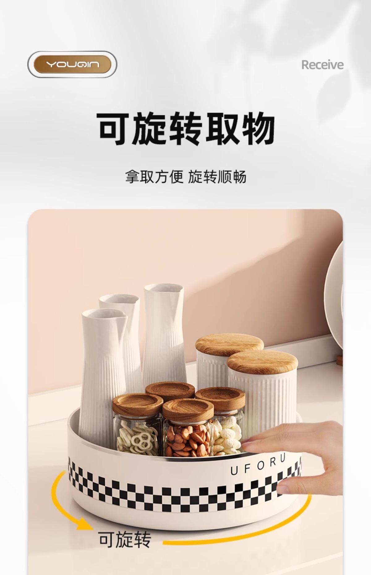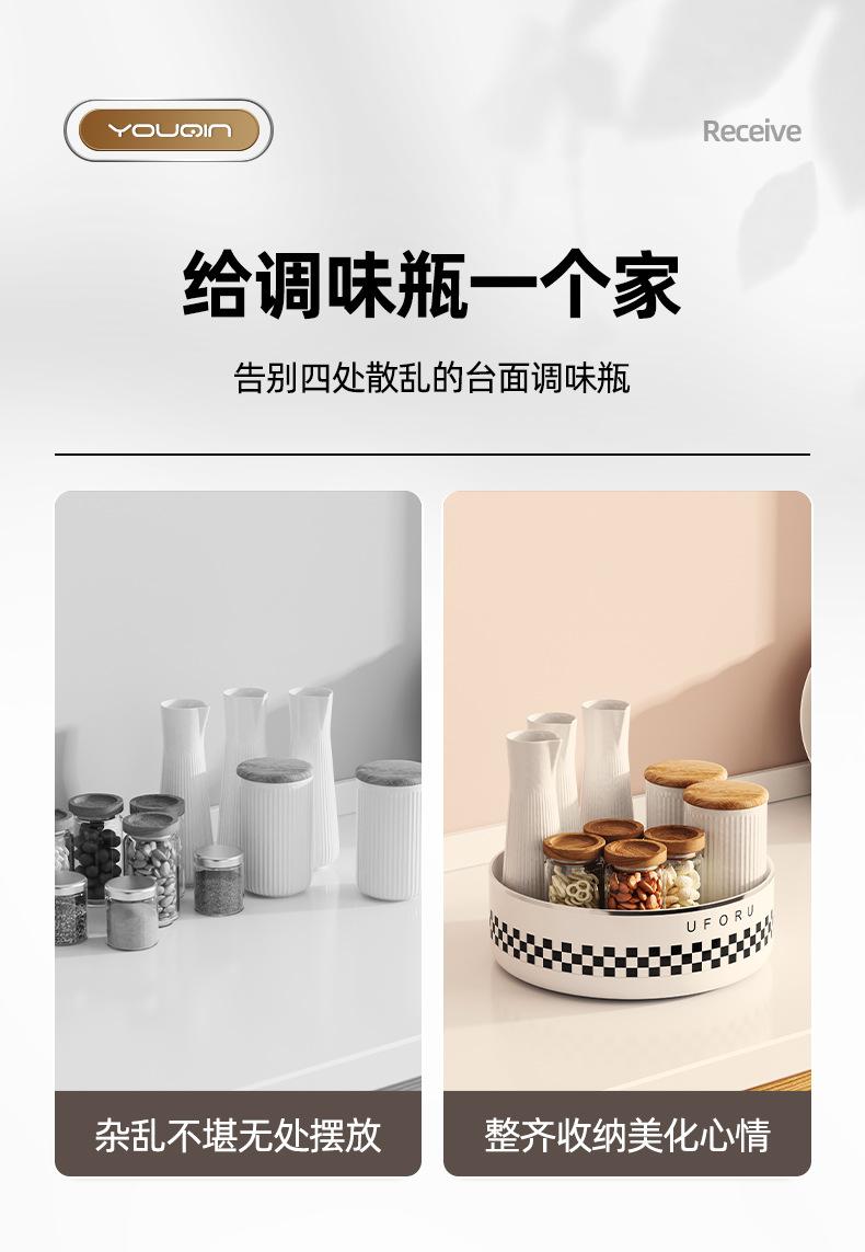 Seasoning rotating storage rack-cream white (checkerboard) [360°Free rotation]