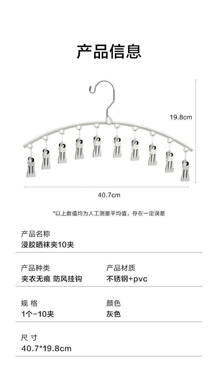 Nombre: Pinza para calcetines de 10 pinzas de una sola cabeza