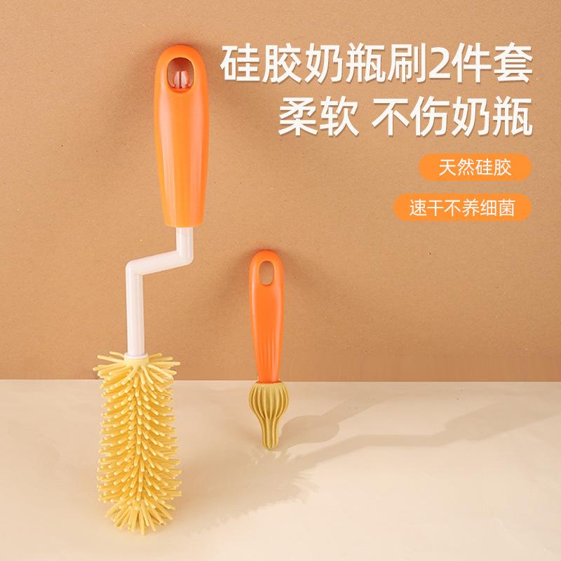 Nuevo Cepillo para Tetina de Paja para Bebé Transfronterizo, Cepillo de Silicona para Biberón de Bebé, Juego de Limpieza, Mango Largo, Juego de Cepillos de Limpieza Giratorios