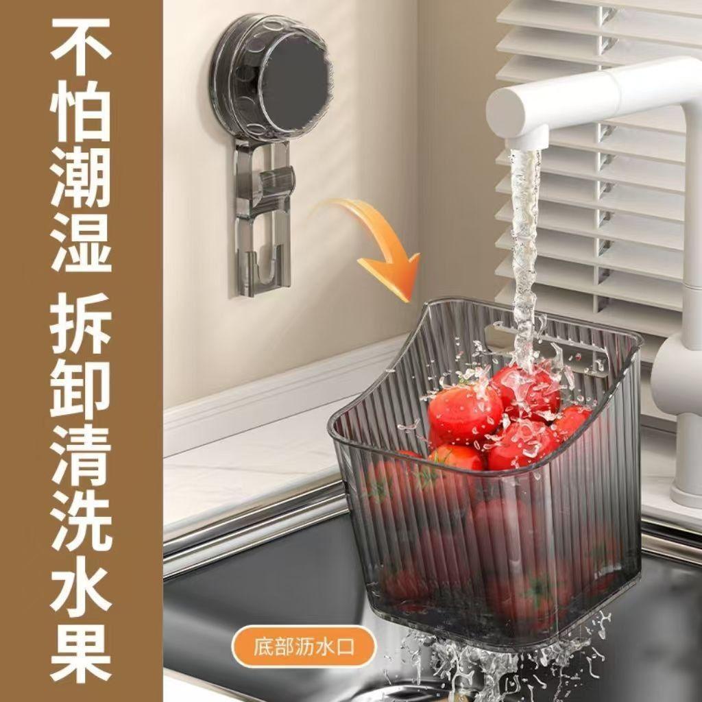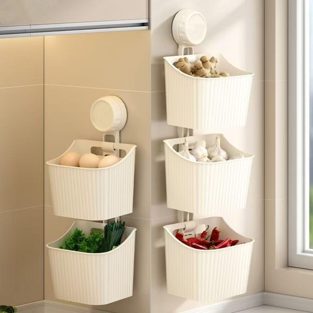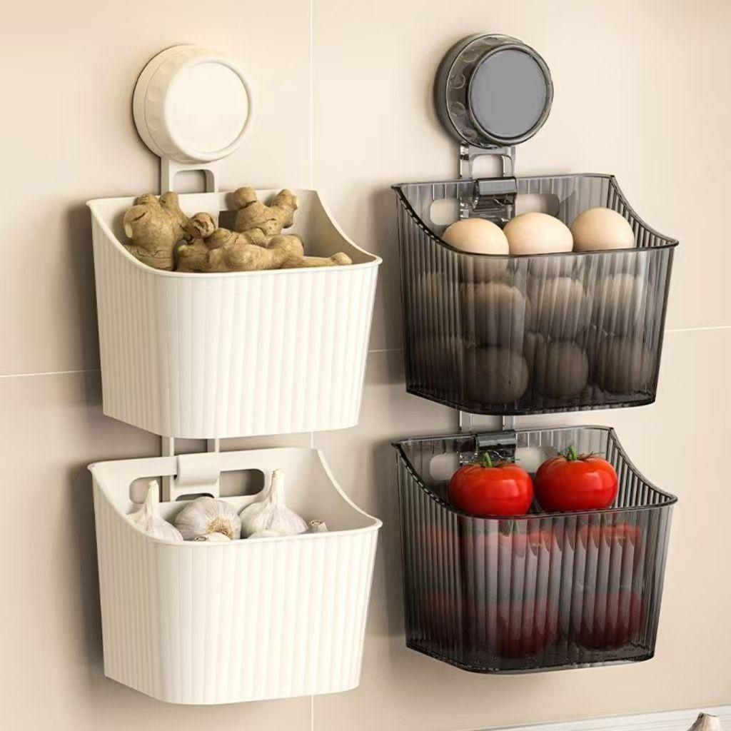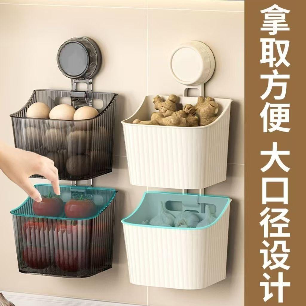 Estante de Almacenamiento de Cocina sin Perforaciones Caja de Almacenamiento Montado en la Pared Jengibre Ajo Jengibre Condimento Ajo Cesta de Almacenamiento Transparente Multifuncional