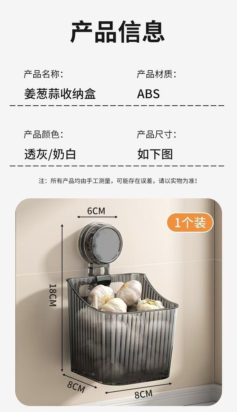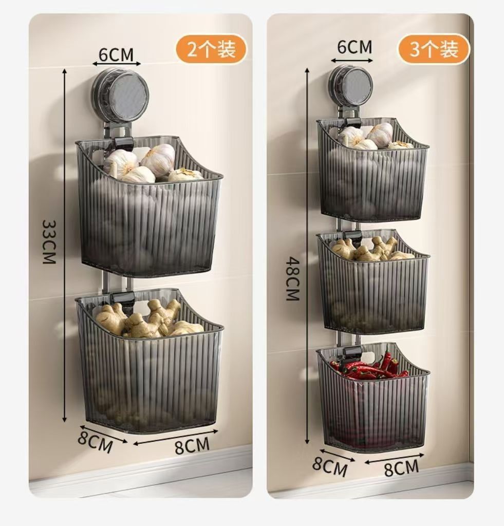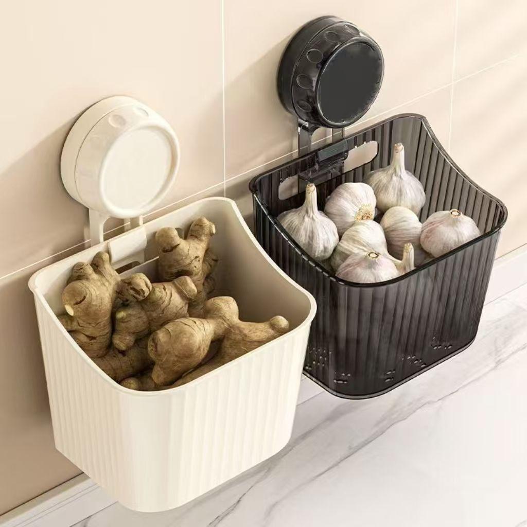 Estante de Cocina sin Perforaciones Caja de Almacenamiento Montado en la Pared Jengibre Ajo Jengibre Condimento Ajo Cesta de Almacenamiento Transparente Multifuncional