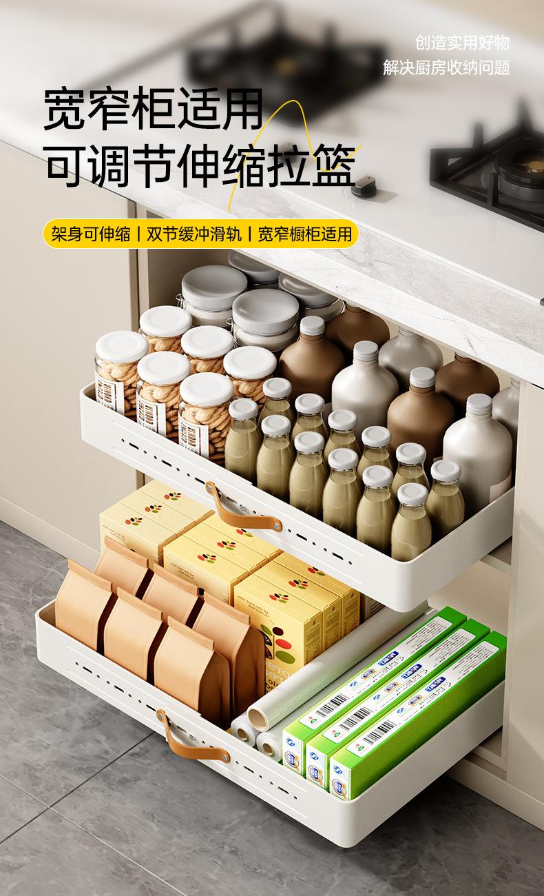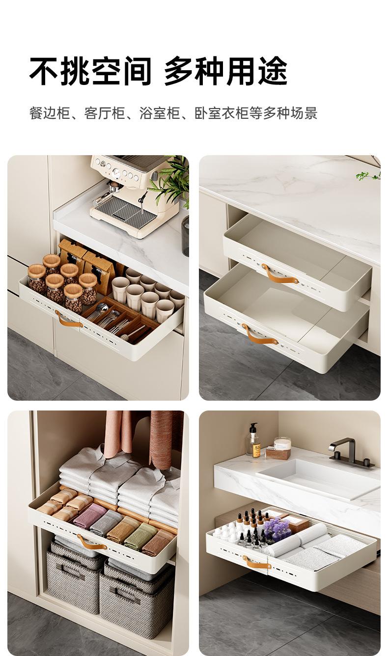 Estante de almacenamiento extraíble de cocina retráctil transfronterizo Cesta extraíble debajo del fregadero Cajón deslizante para gabinete Caja de almacenamiento engrosada