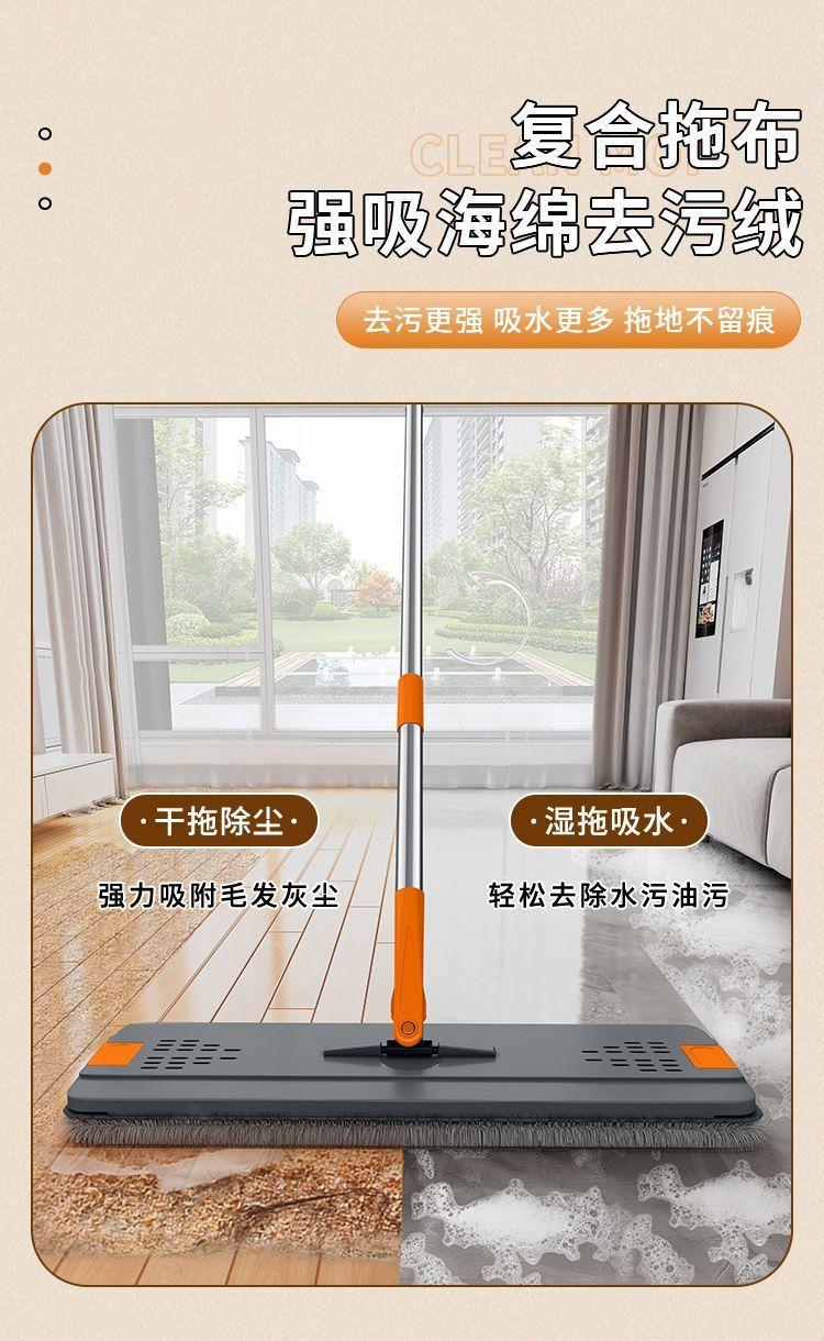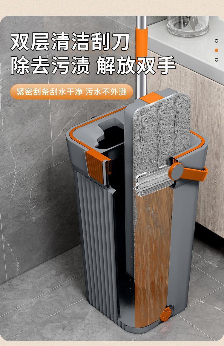 Cubo de fregona con raspador de doble uso húmedo y seco, fregona plana lavable a mano, artefacto de fregona perezosa para el hogar