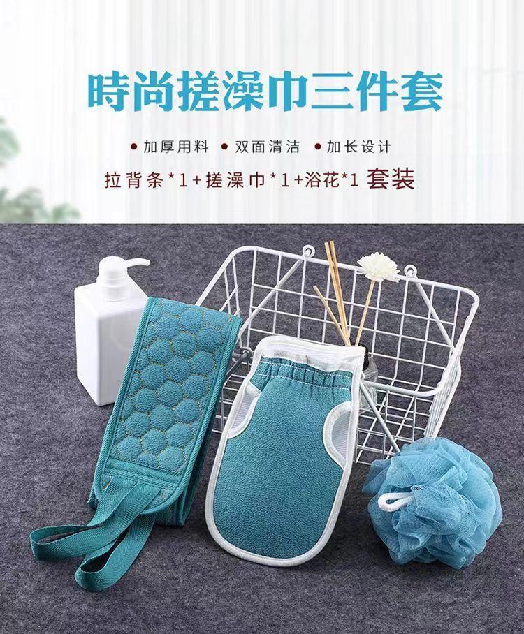 Set de Toalla de Baño Combinación de Tres Piezas Guantes Exfoliantes para la Espalda Bola de Baño Exfoliante Doméstica Venta al por Mayor Herramienta de Limpieza para el Baño