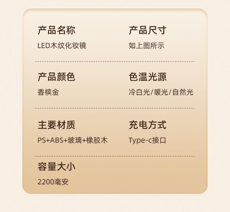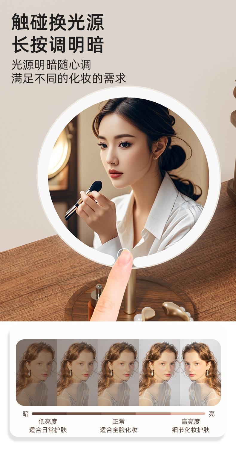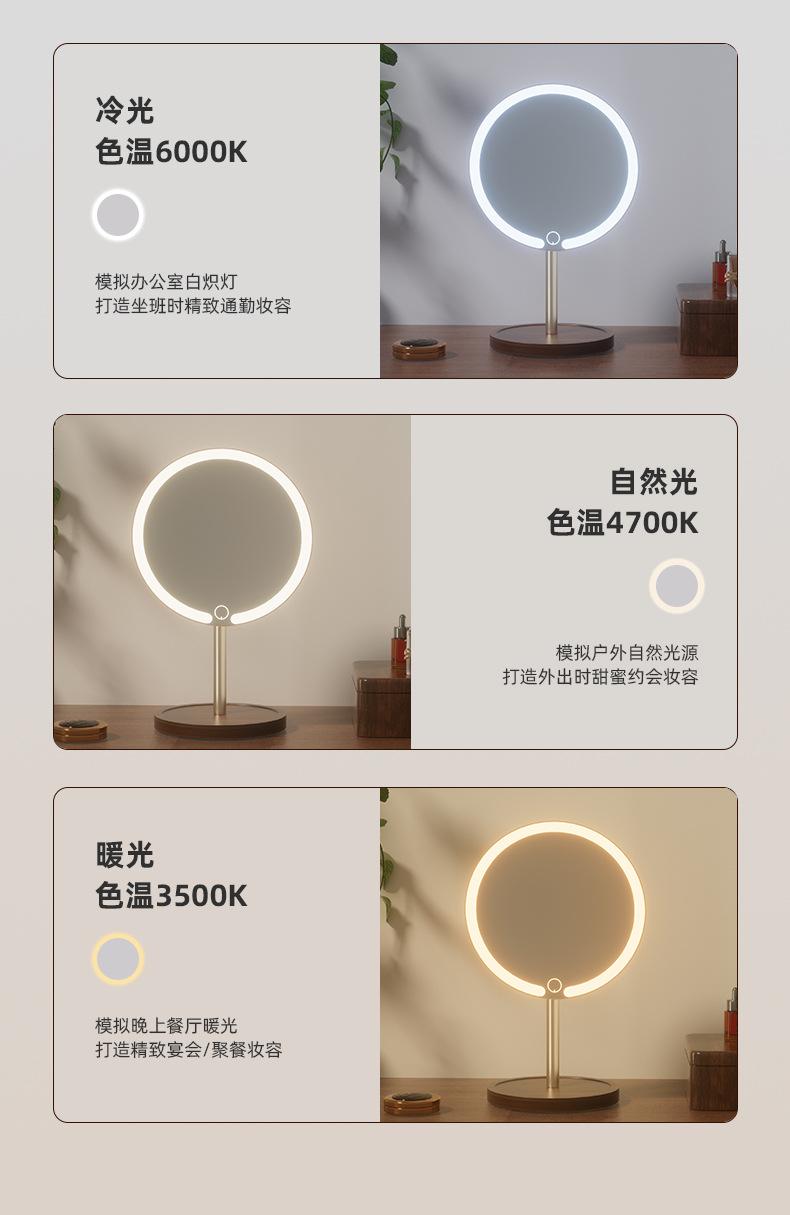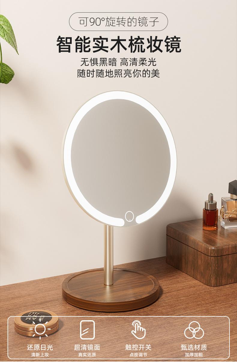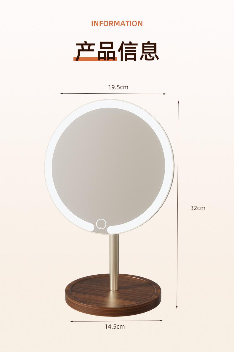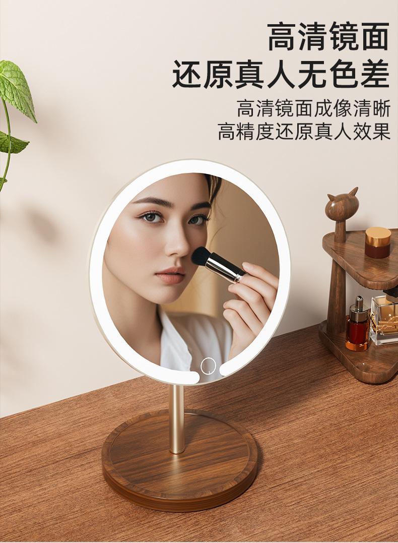 Espejo de Maquillaje LED con Luces de Mesa Base de Madera Maciza Varilla de Aleación Luces Tricolor Luz de Relleno Espejo Espejo de Tocador para Maquillaje