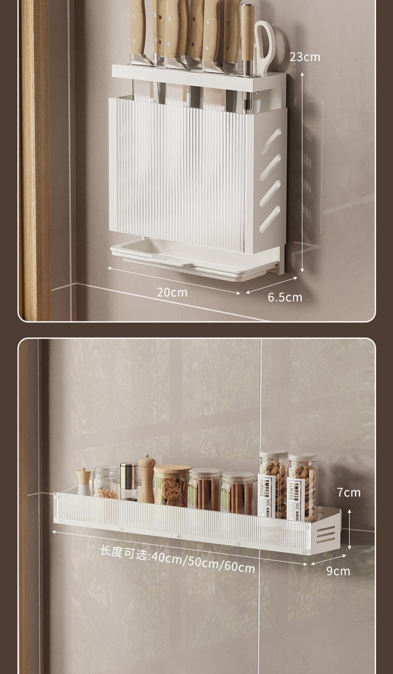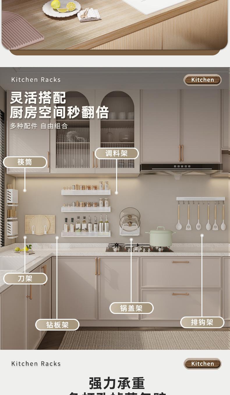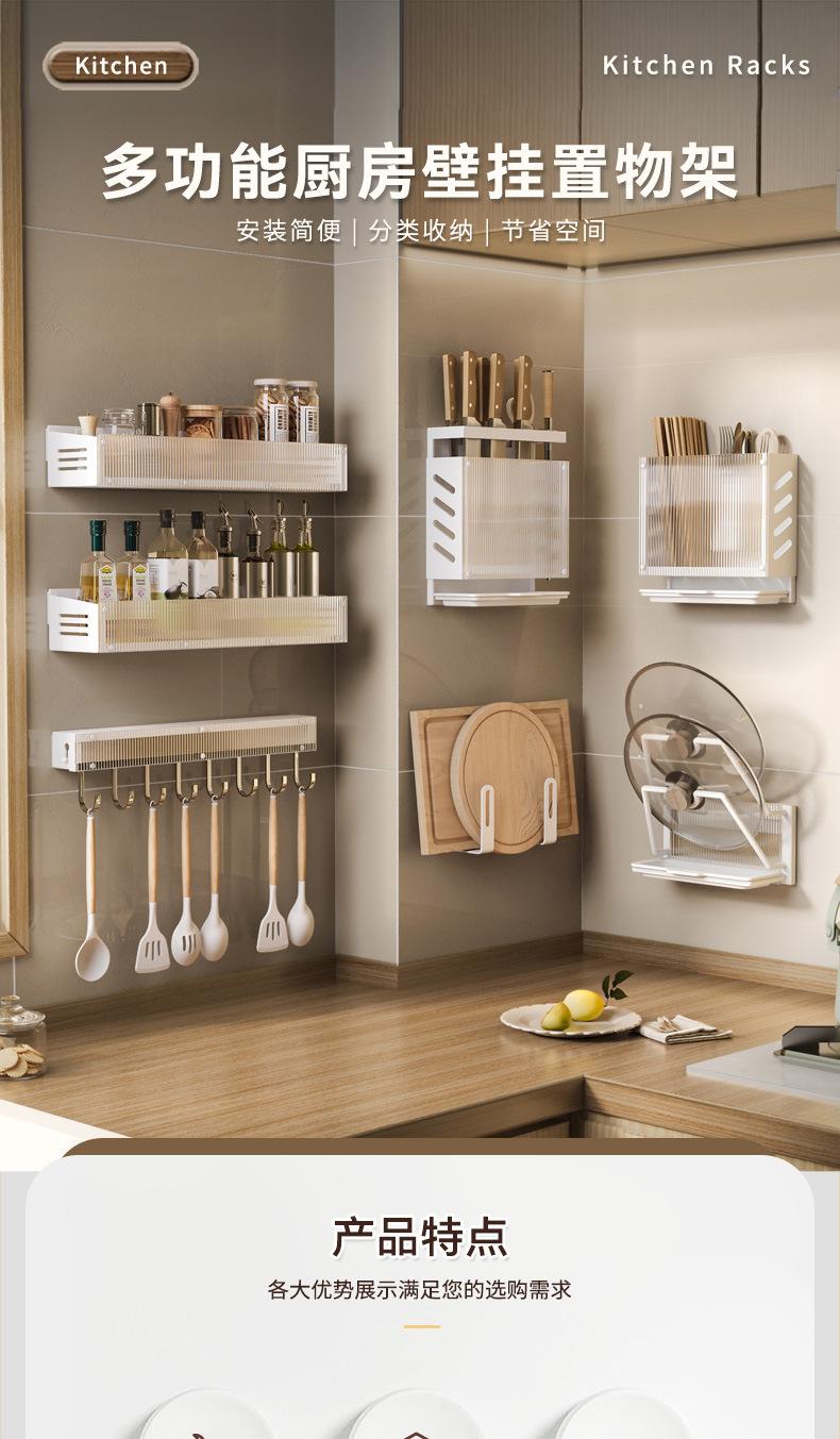 Compra Estante de Almacenamiento de Cocina de Lujo Ligero Montado en la Pared Almacenamiento de Especias Doméstico Estante Multifuncional Gancho para Tapa de Olla y Cuchillos sin Perforación al por mayor en Joom.pro