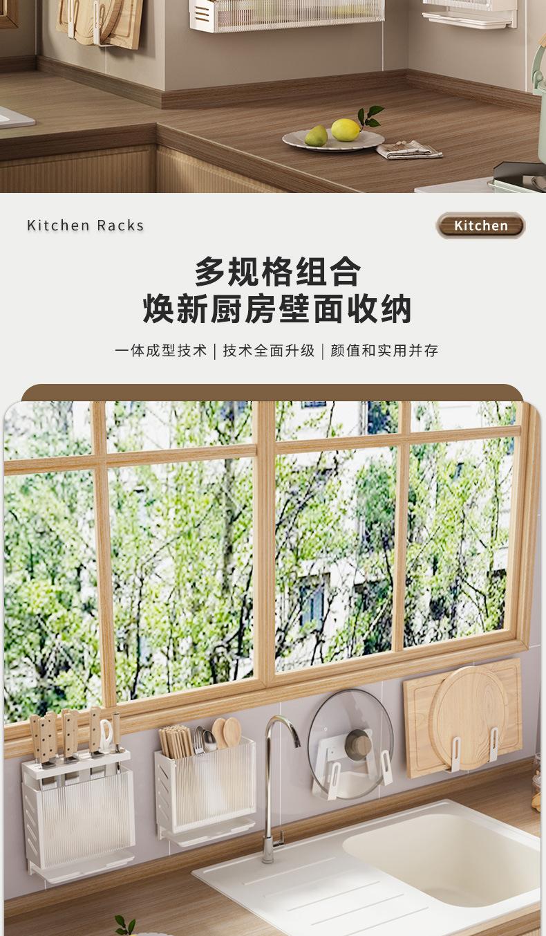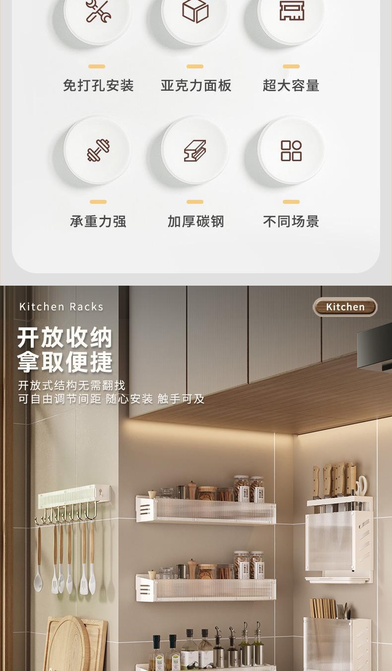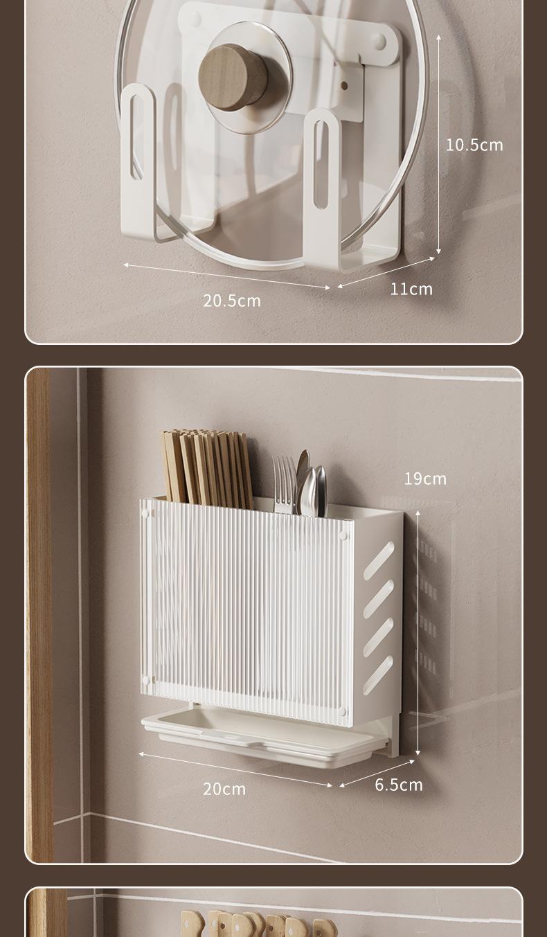 Compra Estante de Almacenamiento de Cocina de Lujo Ligero Montado en la Pared Almacenamiento de Especias Doméstico Estante Multifuncional Gancho para Tapa de Olla y Cuchillos sin Perforación al por mayor en Joom.pro