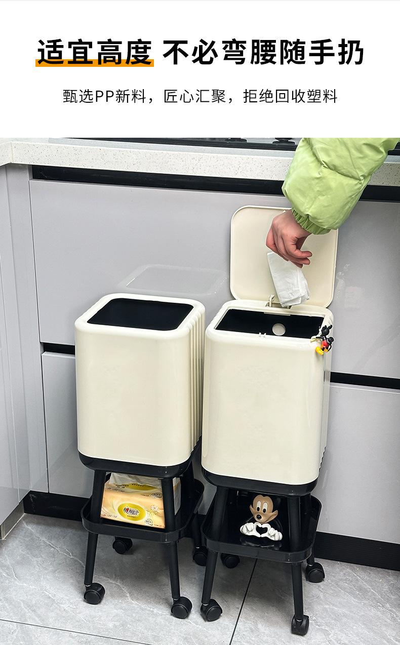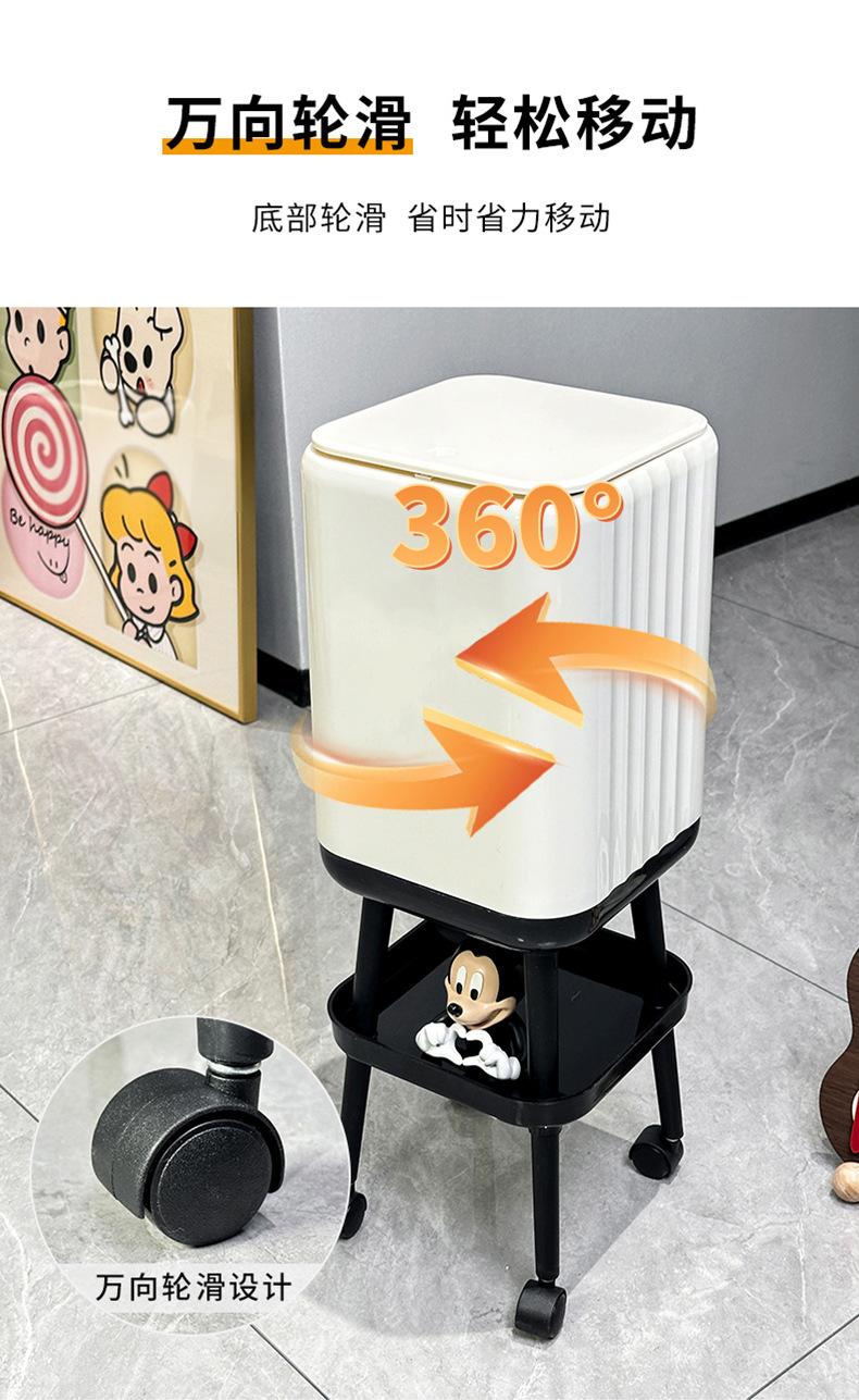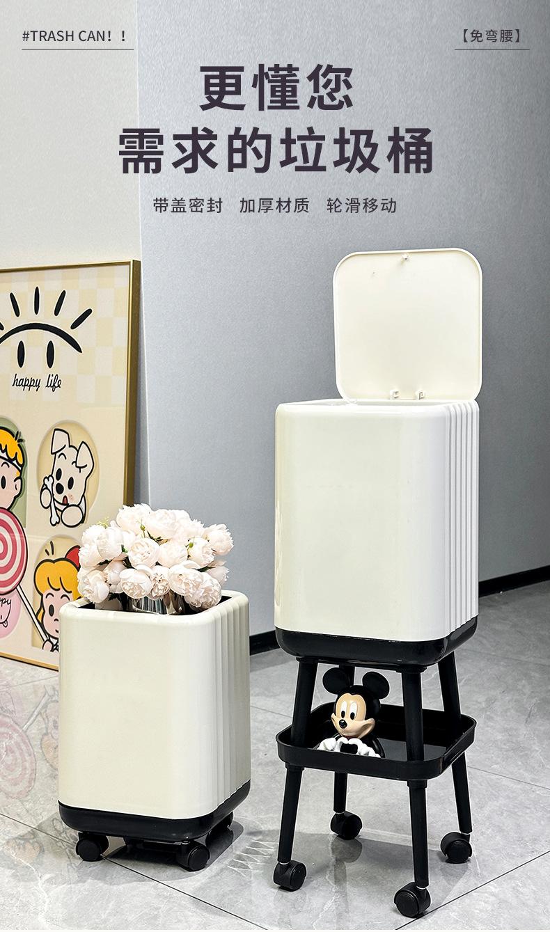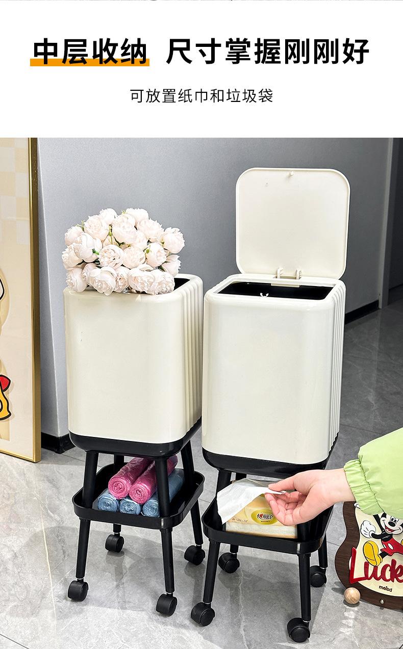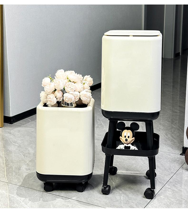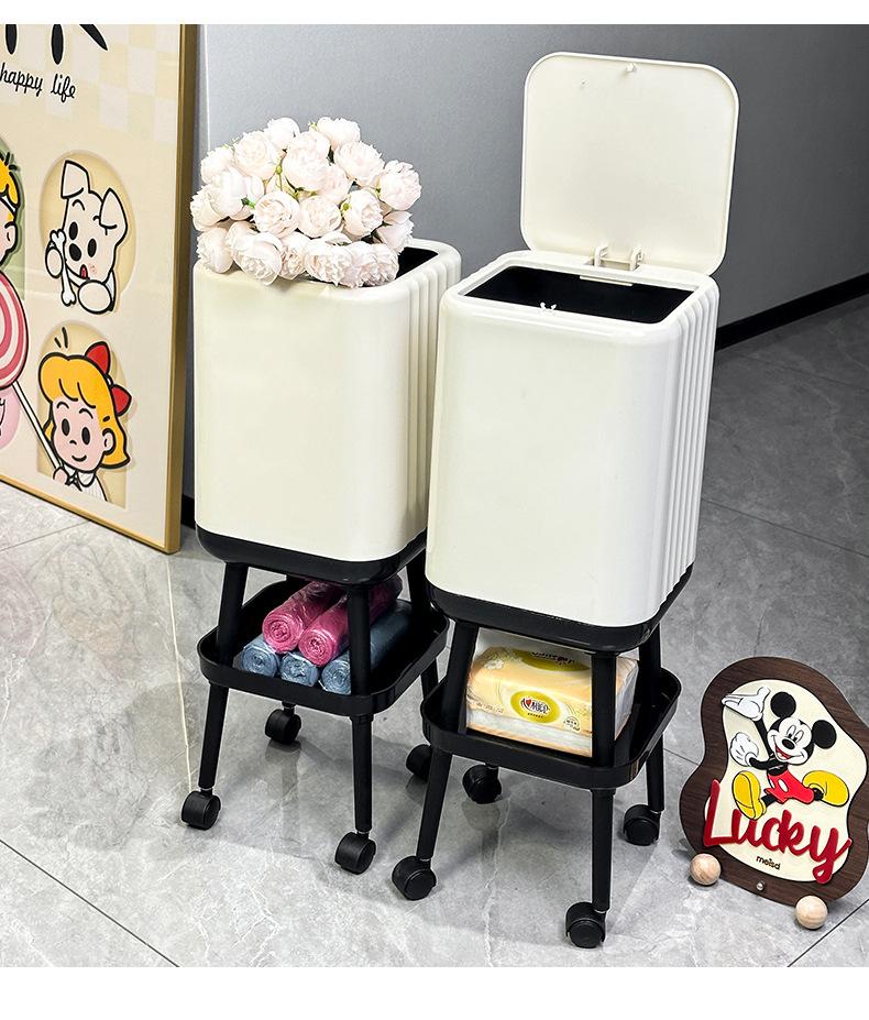 Bote de Basura Alto con Tapa, Lujo Accesible y Sensación de Alta Gama, Sin Agacharse, Hogar Sala de Estar y Cocina, Bote de Basura con Ruedas y Tapa de Apertura a Presión