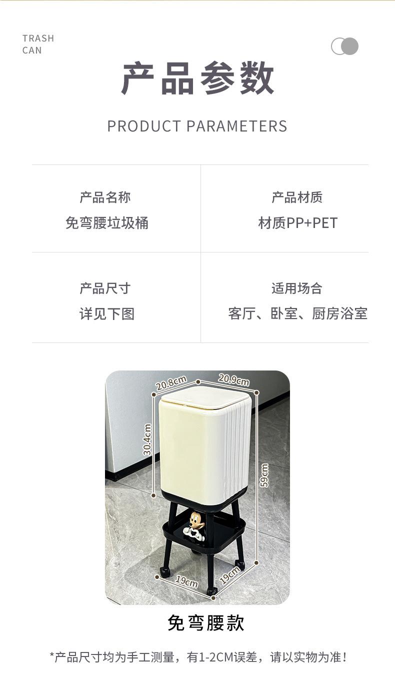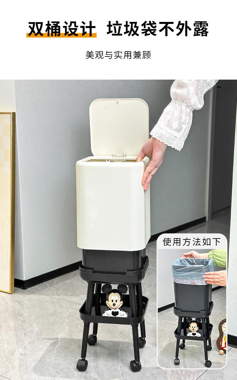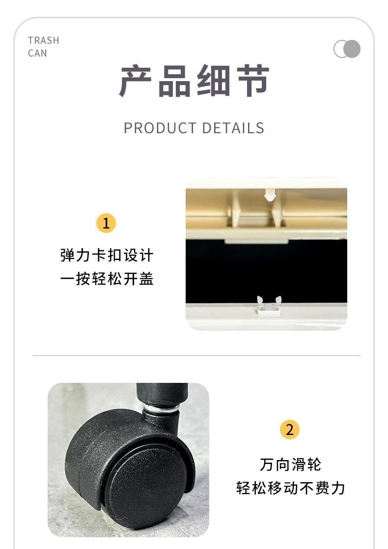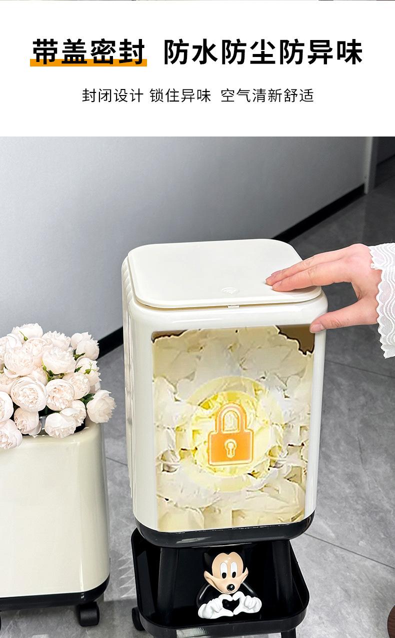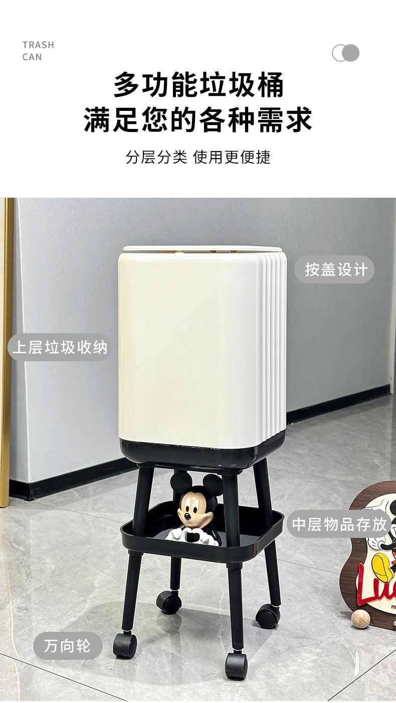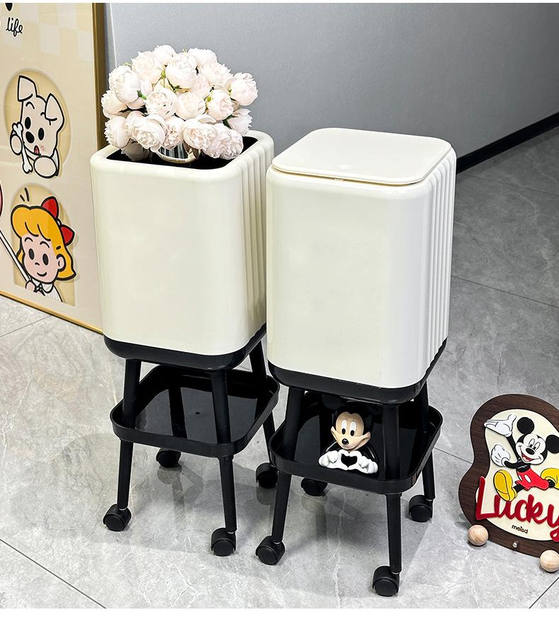 Bote de Basura Alto con Tapa, Lujo Accesible y Sensación de Alta Gama, Sin Agacharse, Hogar Sala de Estar y Cocina, Bote de Basura con Ruedas y Tapa de Apertura a Presión