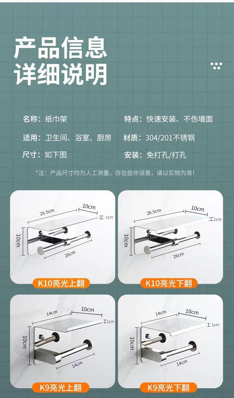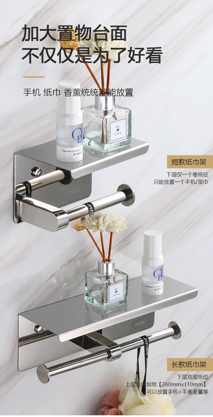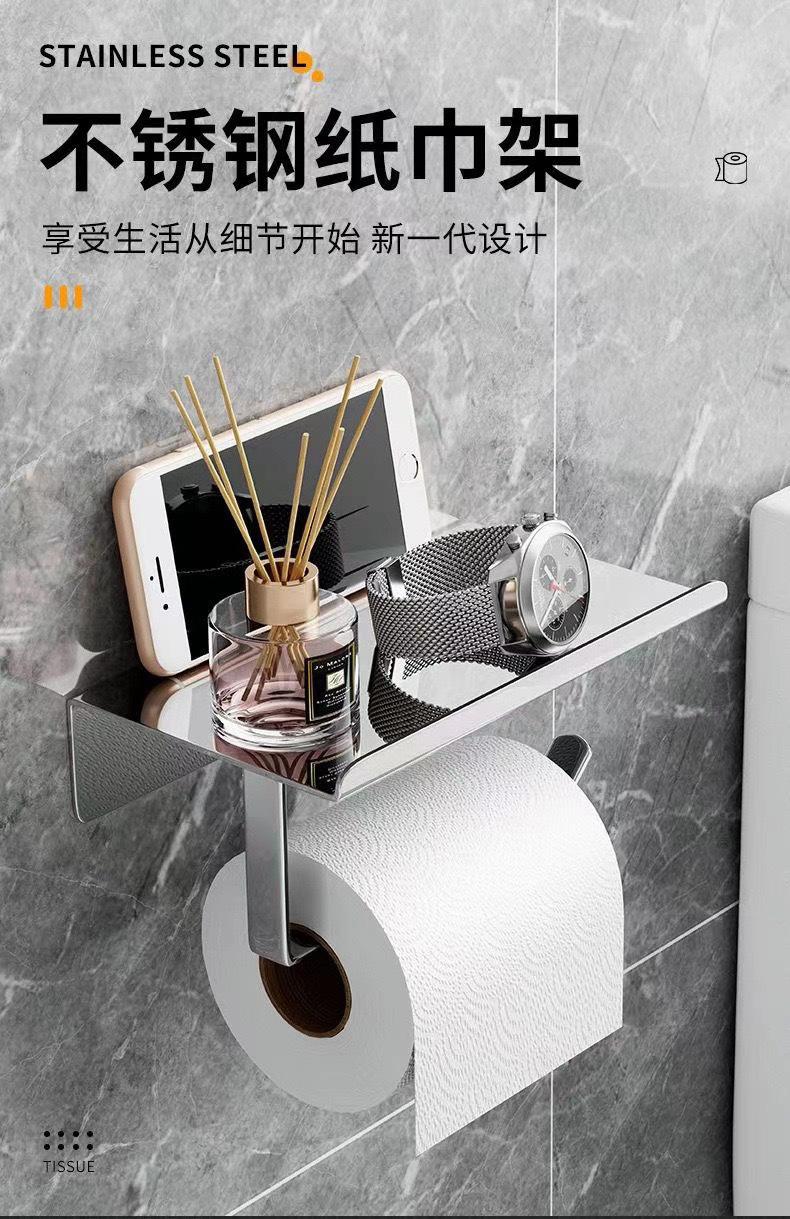 Portarrollos de Papel Higiénico de Acero Inoxidable 304 para Baño Hotel Caja de Pañuelos Soporte para Teléfono Móvil para Inodoro Soporte para Papel Higiénico de Baño Sin Perforación