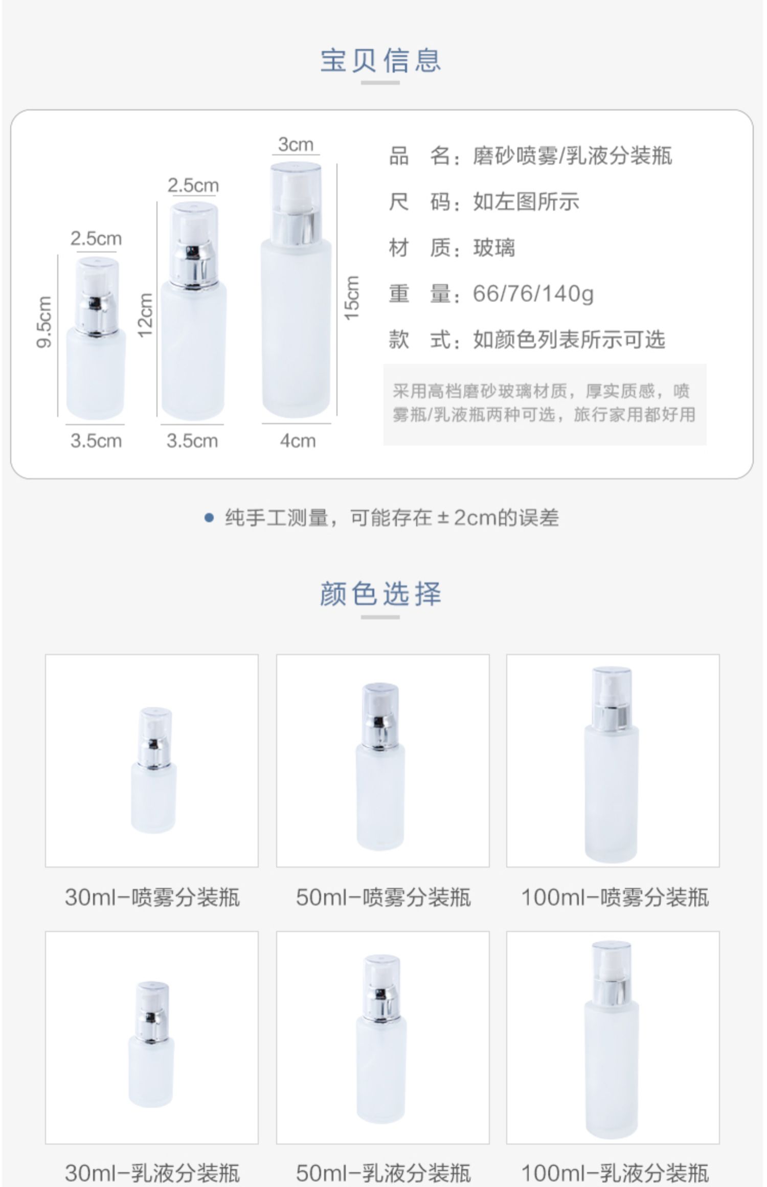 Upgrade Frosted Spray Dispenser Bottle [100ml]