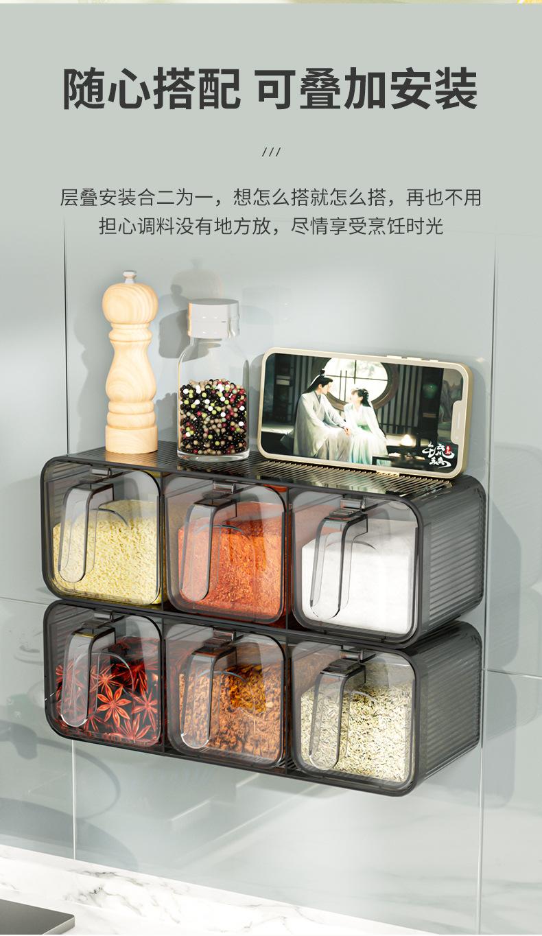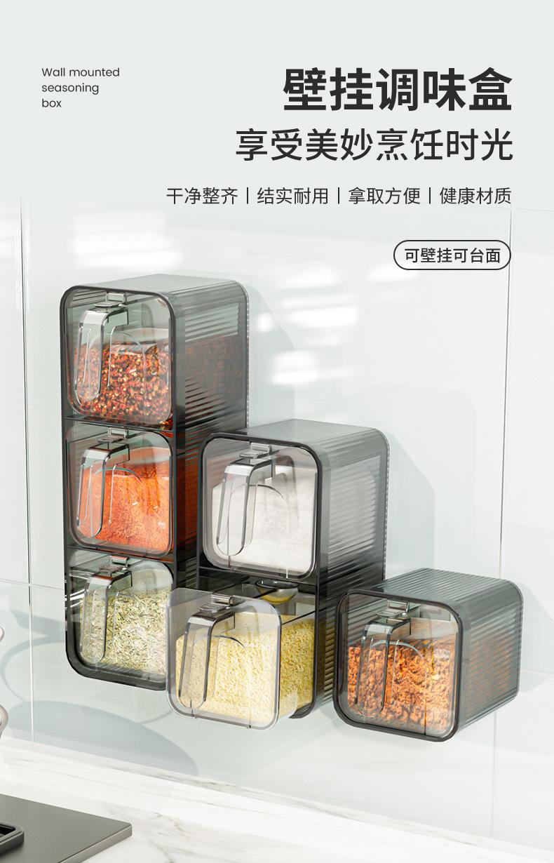Caja de Almacenamiento de Cocina Tarro Botella de Condimento Tarro de Sal Msg Tarro de Condimento Juego de Cajas de Condimento Montadas en la Pared Paquete Combinado para el Hogar