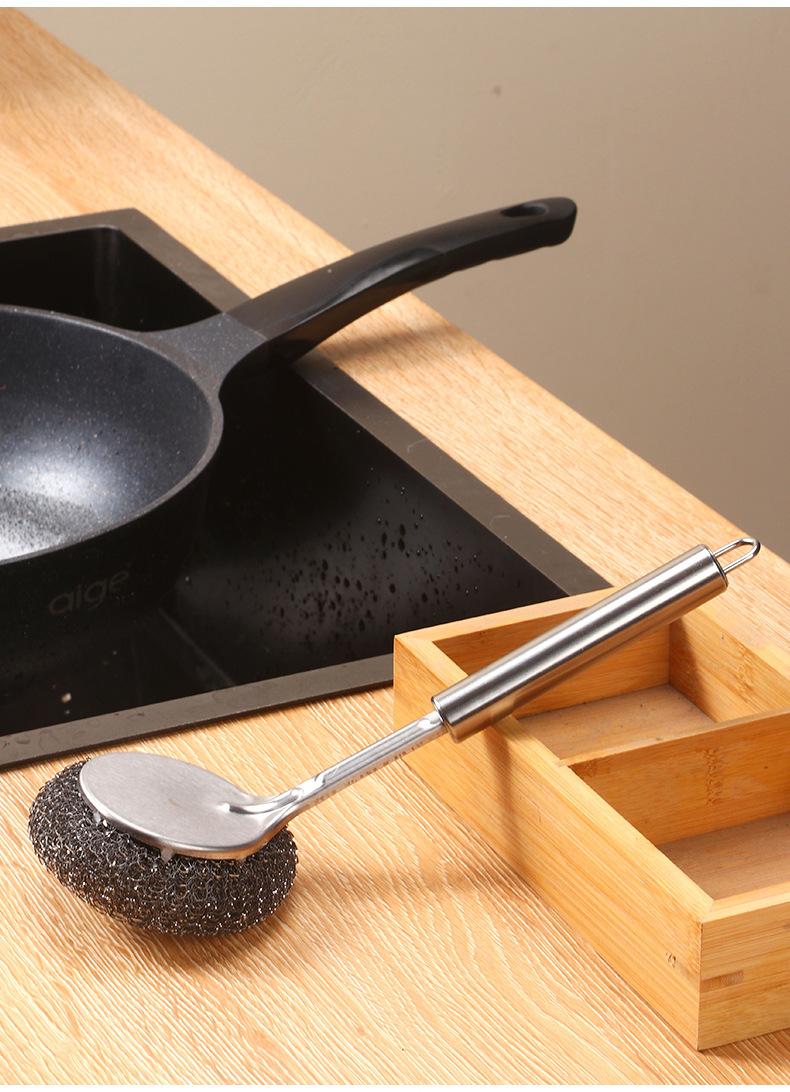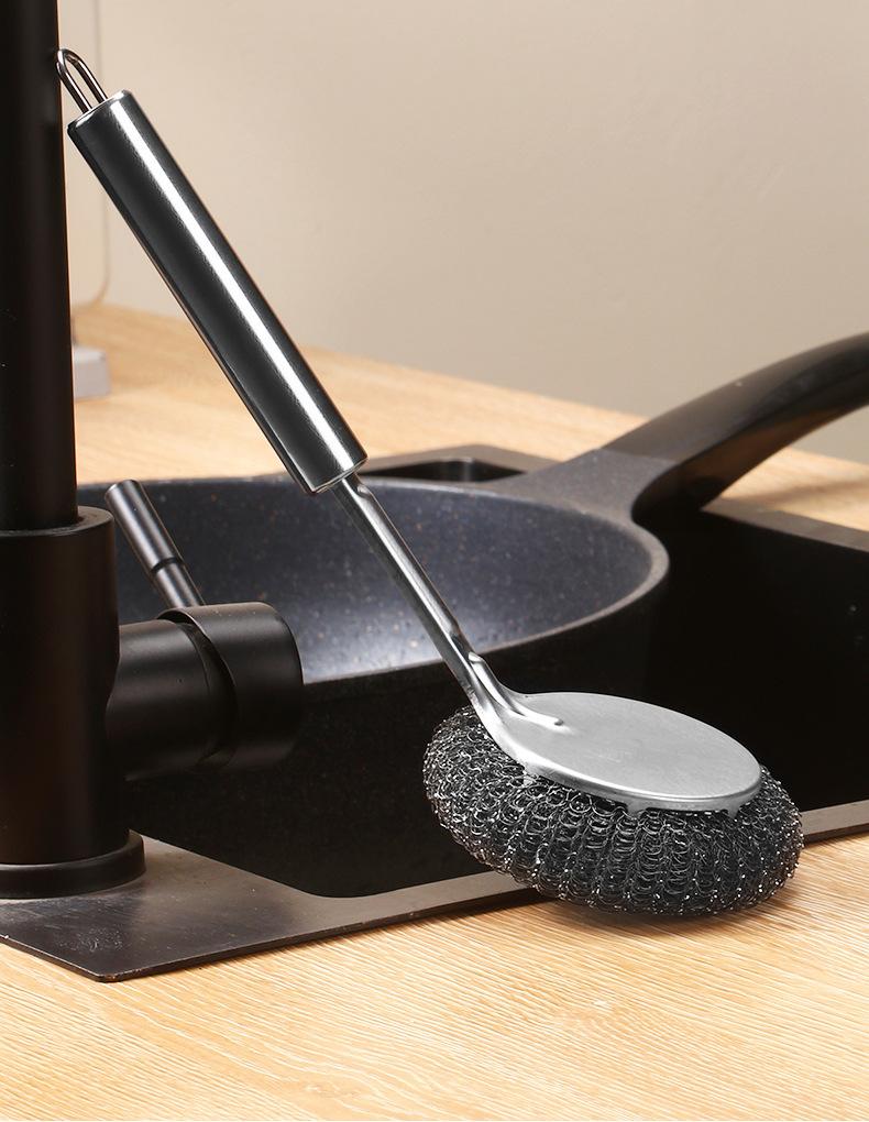 Cepillo para lavar ollas de acero inoxidable bola de acero mango largo cabezal de cepillo reemplazable cepillo de limpieza para lavar platos de cocina artefacto de descontaminación cepillo trípode