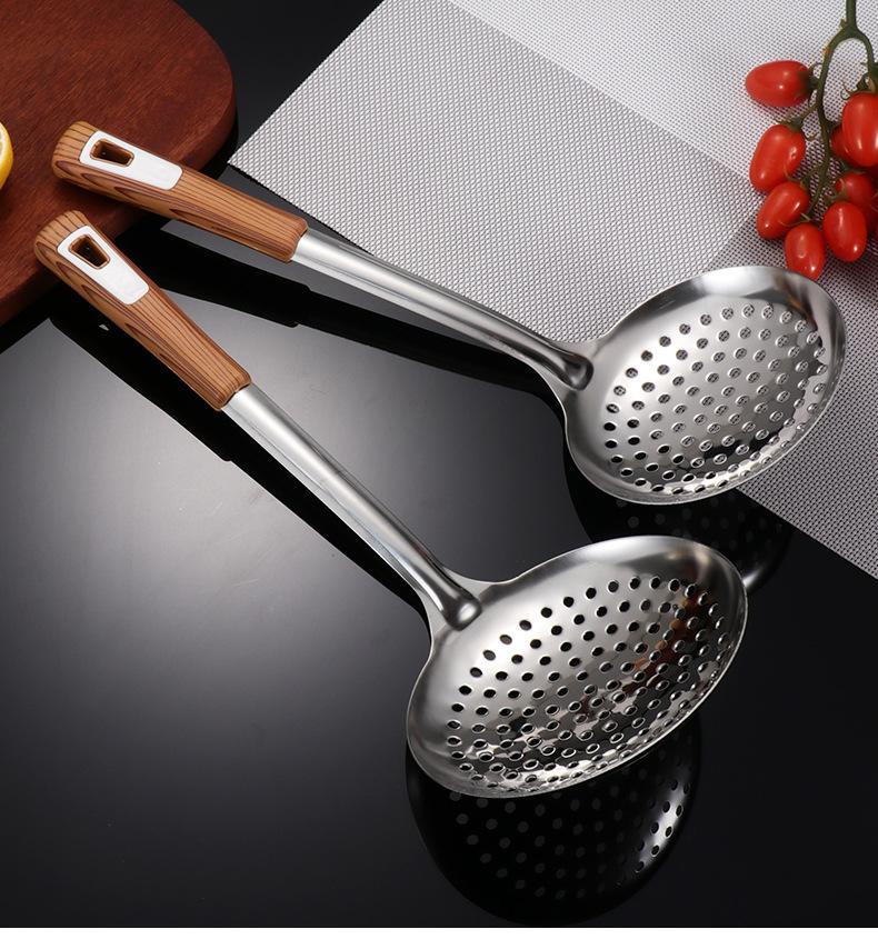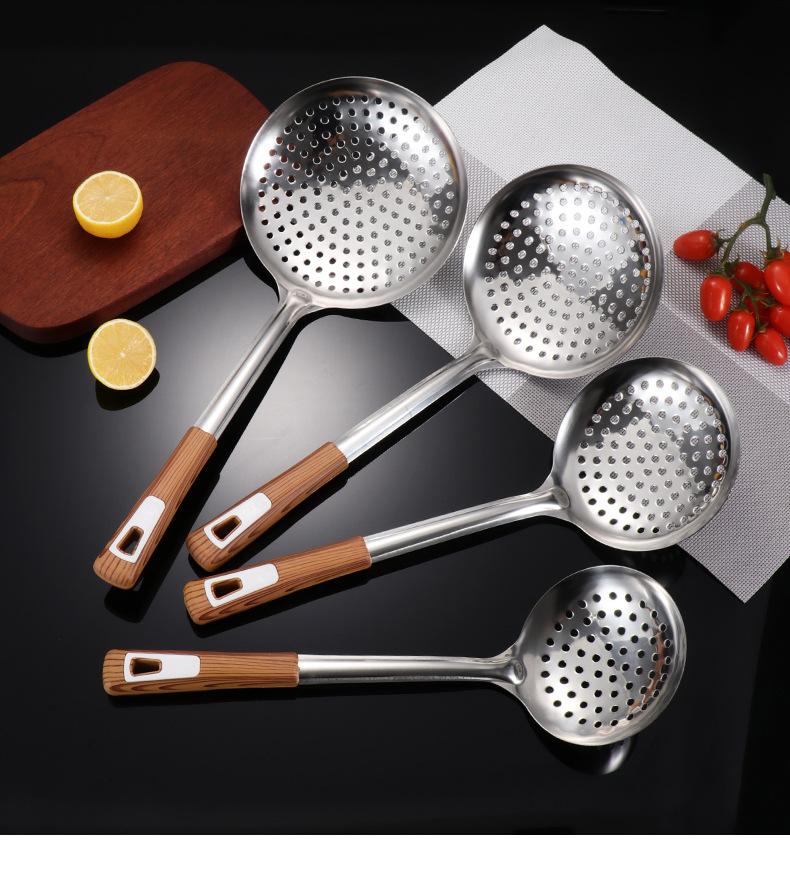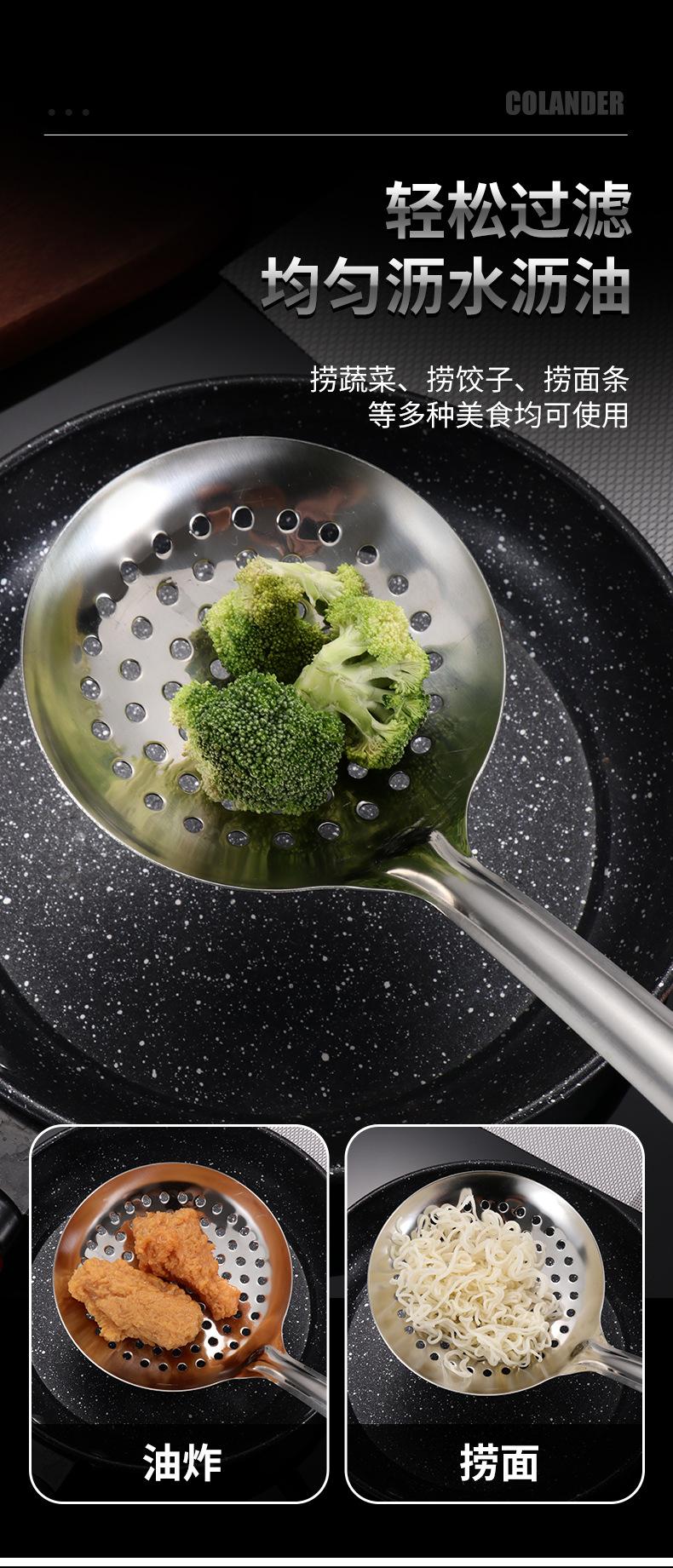 Colador de Acero Inoxidable Engrosado Cuchara de Cocina Doméstica Drenar Aceite Fideos Cuchara para Dumplings Utensilios de Cocina Listo para la Venta