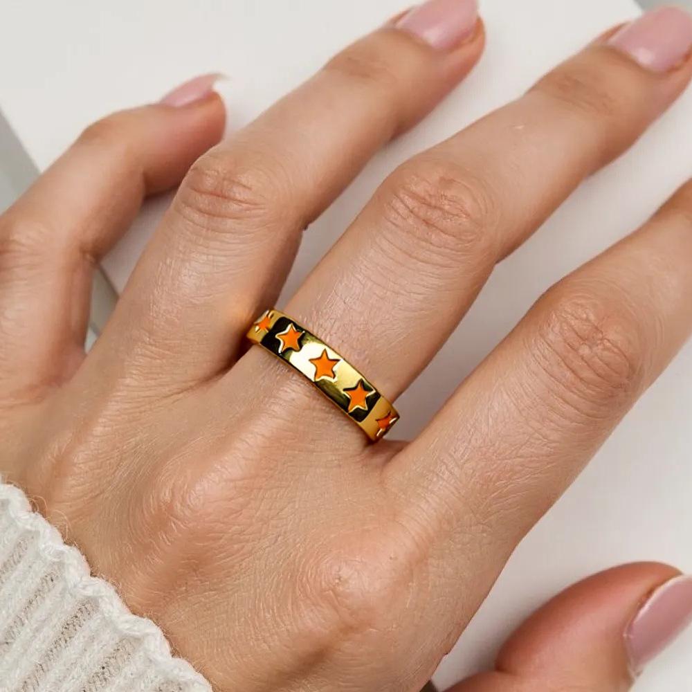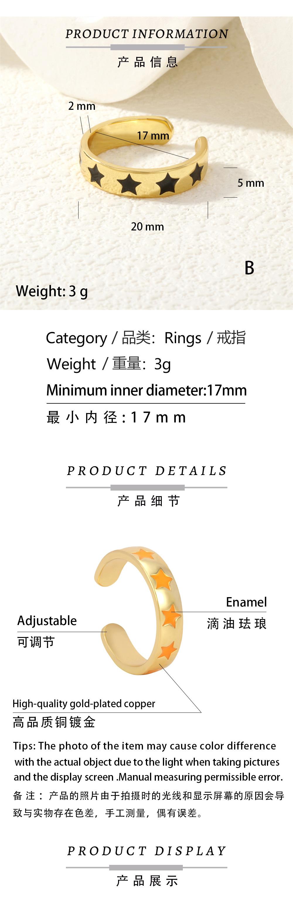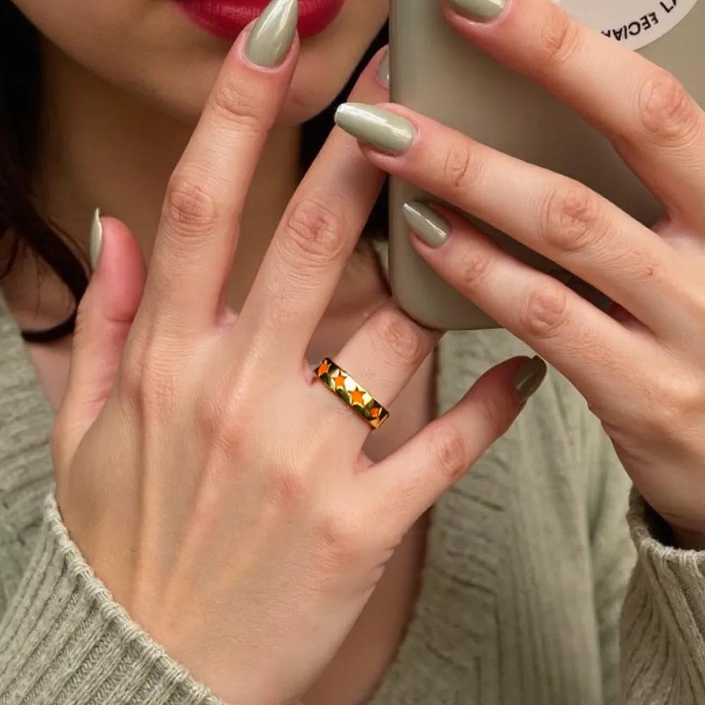 Compra Anillo de Estrella de Color Caramelo de Moda Europea y Americana, Anillo Abierto Ajustable, Anillo de Corazón, Anillo Colorido de Cobre con Goteo de Aceite al por mayor en Joom.pro
