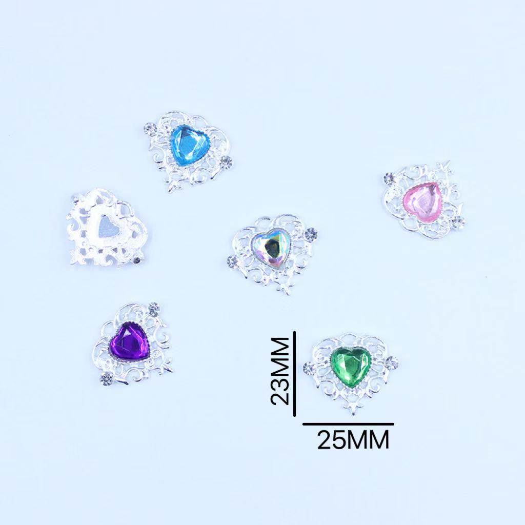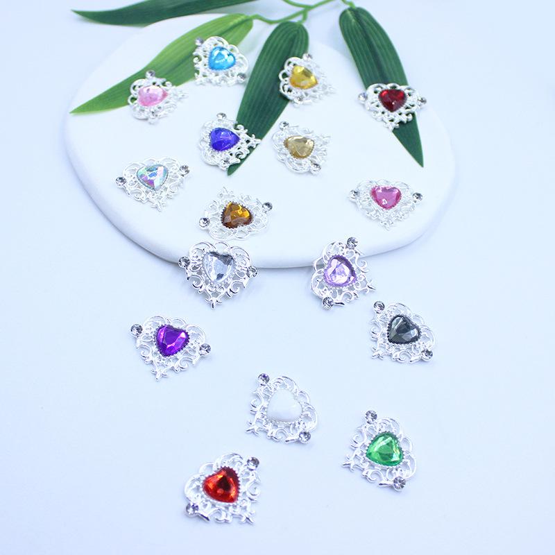 21*25MM Aleación de Pedrería en Forma de Corazón DIY Accesorios de Joyería Acrílico Ropa Accesorios para el Cabello Decoración de Bolsos Venta Caliente Transfronteriza