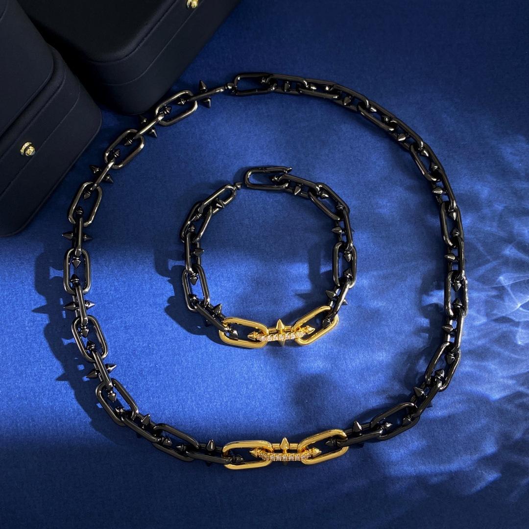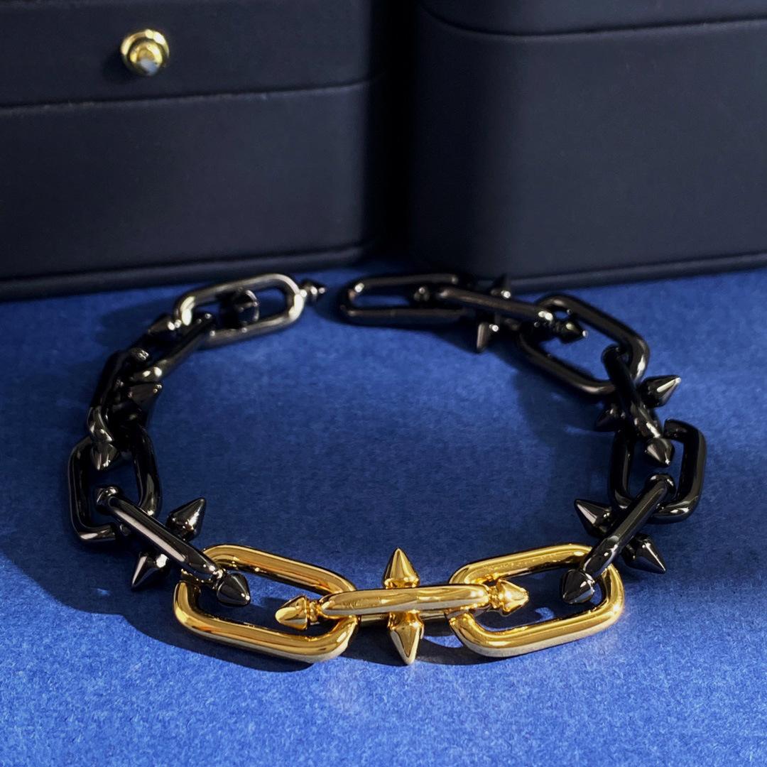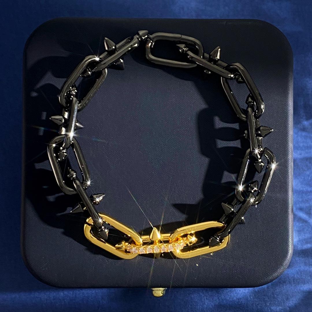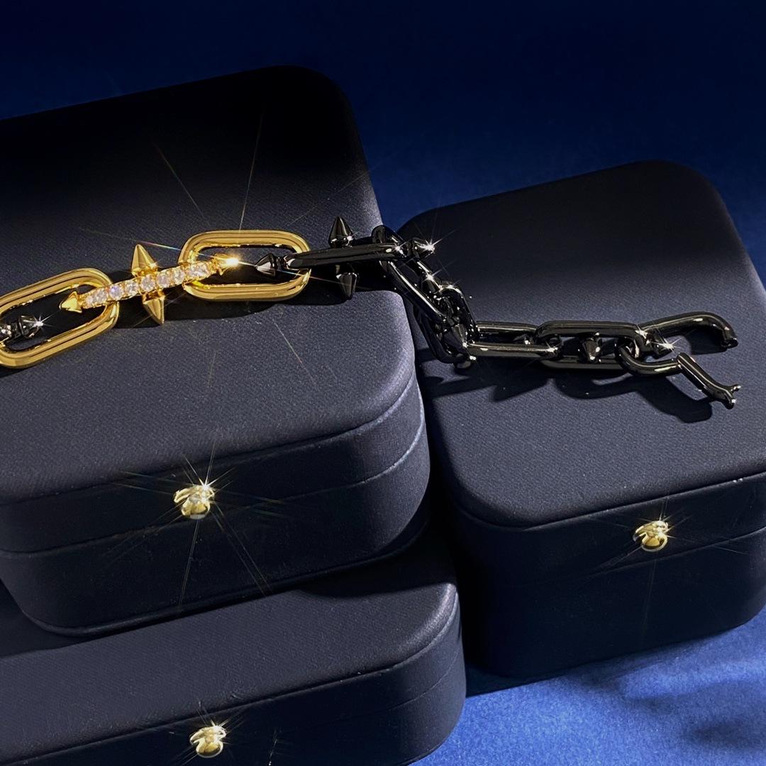 Moda Europea y Americana Elegante Cadena Negra Remaches Costuras Pulsera Cadena Diamantes Dorados Pulsera Tridente