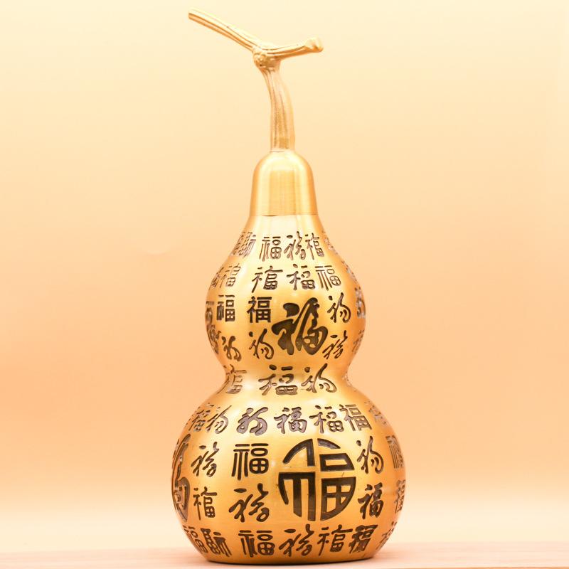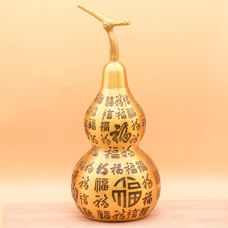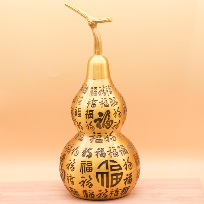 Latón Grande 28cm Adorno de Calabaza Cien Bendiciones Artesanía de Metal Decoración para Oficina Sala de Estar Regalo Carácter de Bendición Cobre