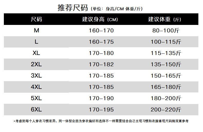 M, L, XL, 2XL, 3XL, 4XL, 5XL, 6XL