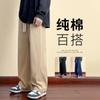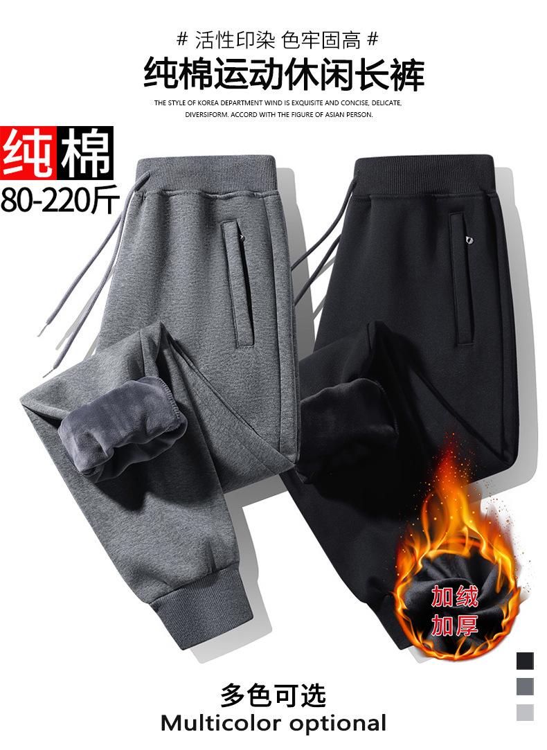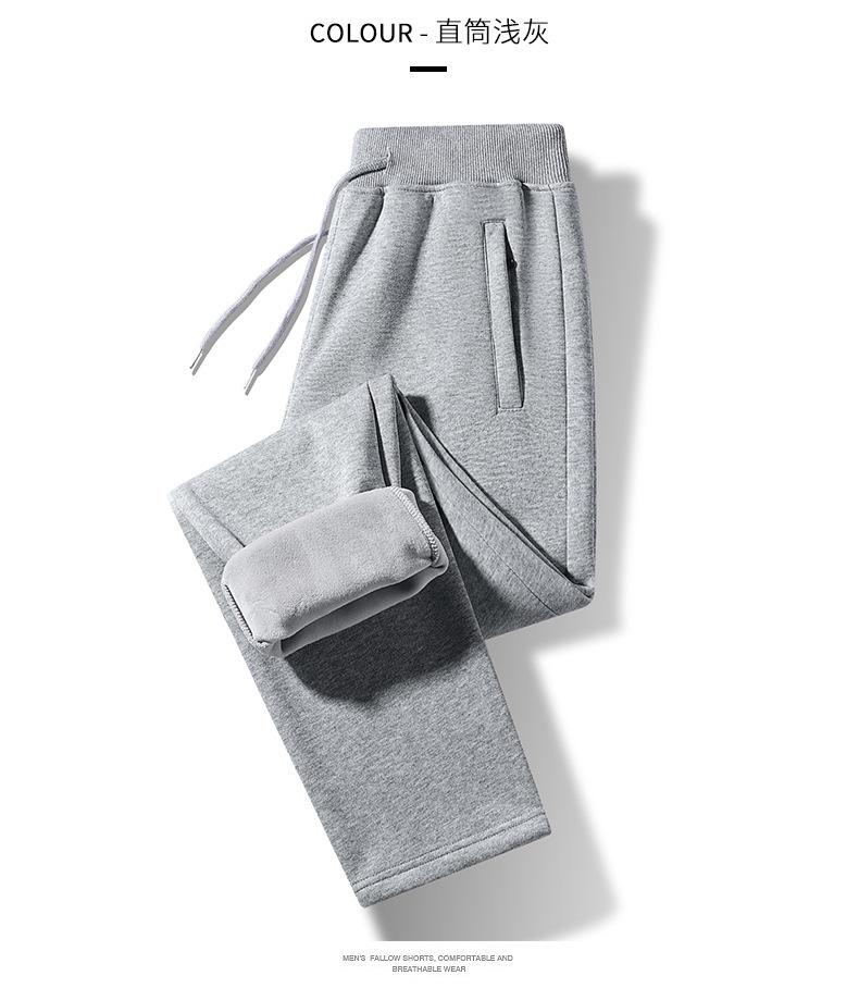 Pantalones Largos Casuales de Algodón Puro de Pierna Recta Pantalones de Sudor para Hombre Primavera Otoño Invierno Forro Polar Engrosado Suelto Talla Grande Pantalones de Hombre