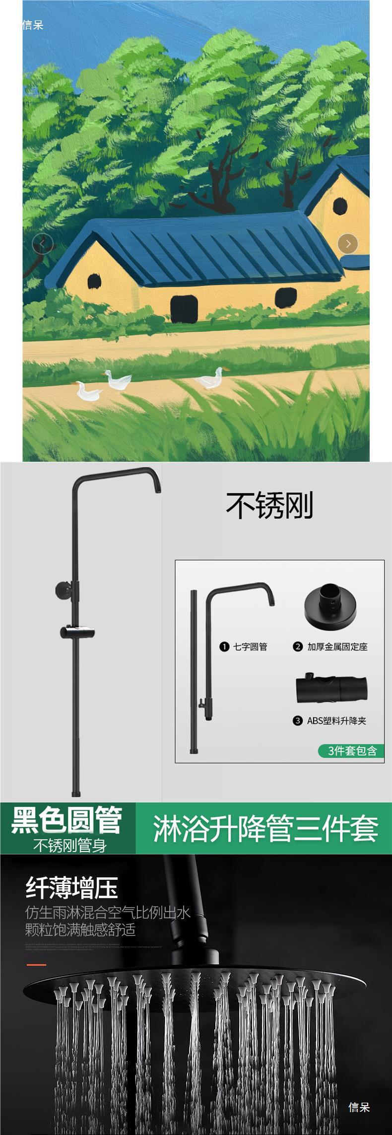 Black shower round tube punch mount (alloy), Black round tube large sleeve bracket column (alloy), Black round...