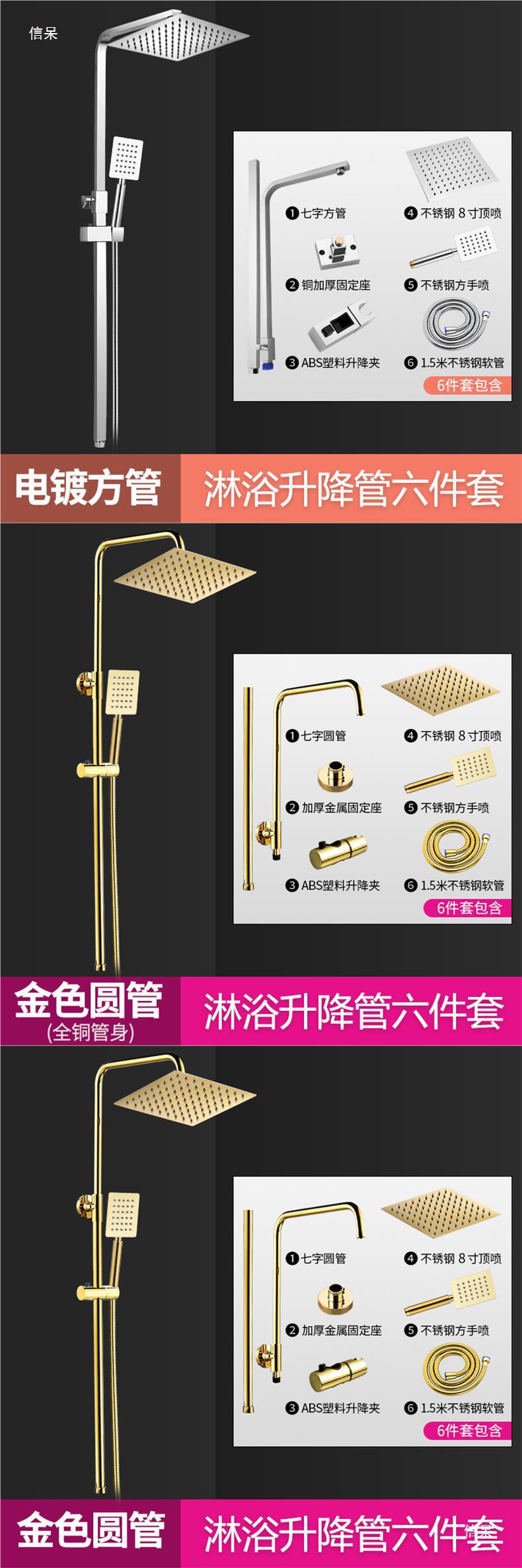 Accesorios de baño blanco cuadrado tubo de ducha brazo de ducha dorado soporte de boquilla superior columna varilla elevadora accesorios de válvula mezcladora