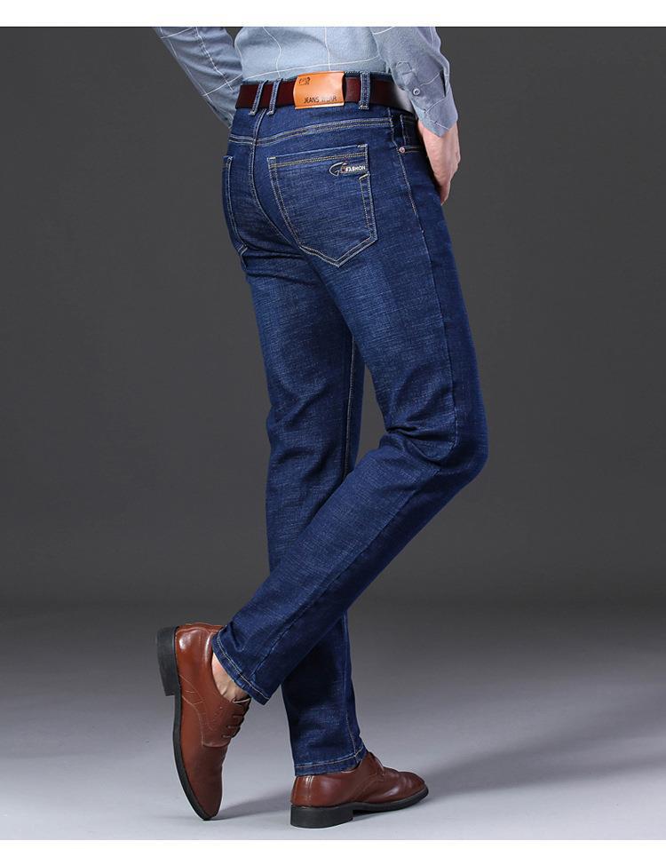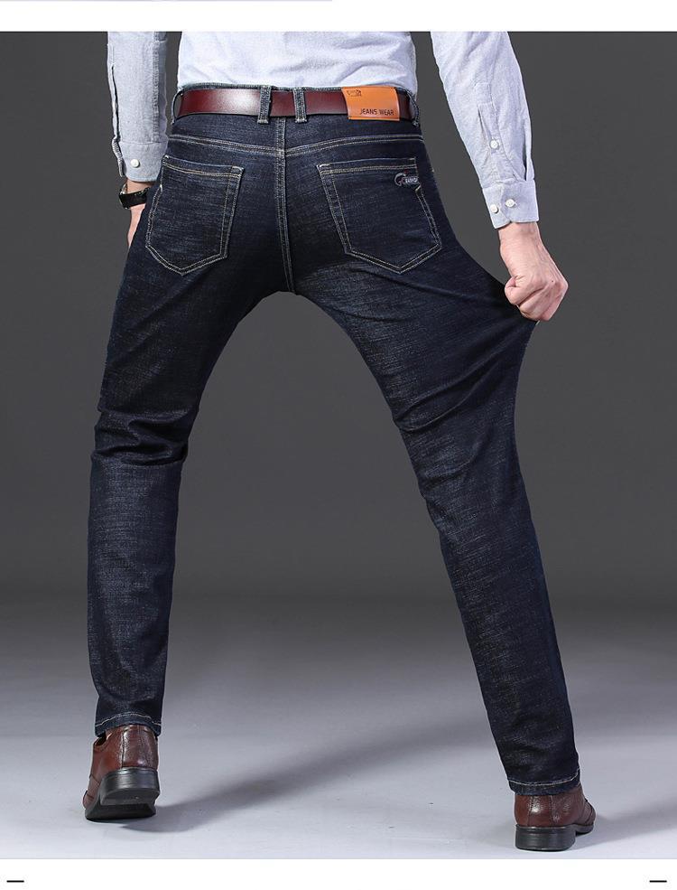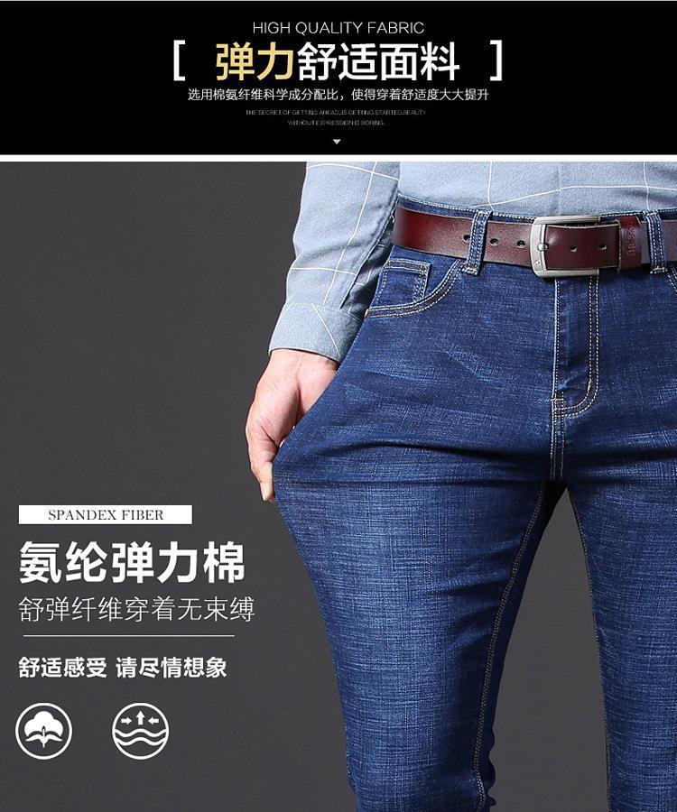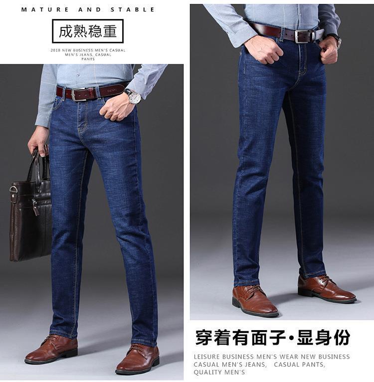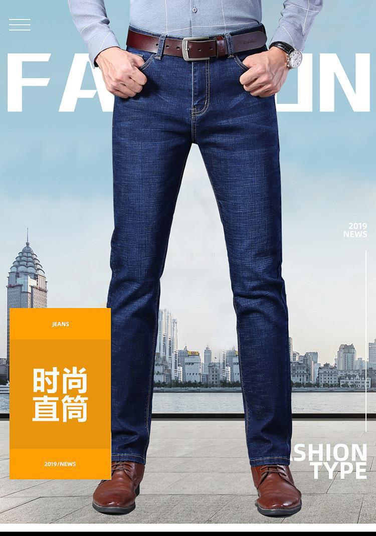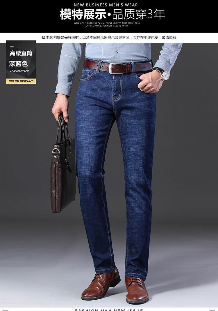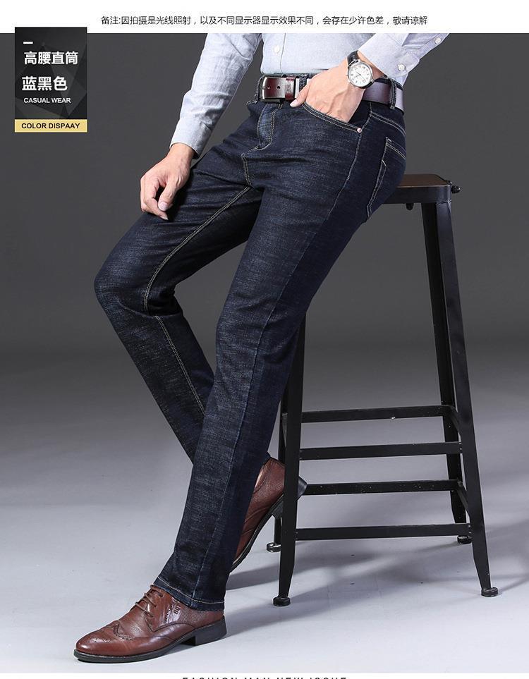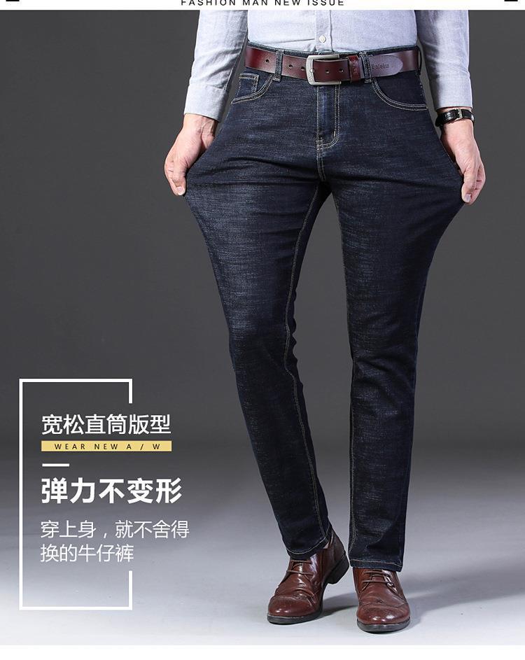 Marca de Moda Jeans Elásticos de Cintura Media para Jóvenes y Mediana Edad para Hombre Primavera y Otoño Rectos Sueltos Casual de Negocios Pantalones Largos