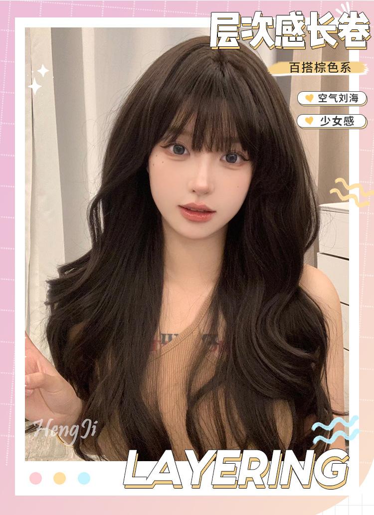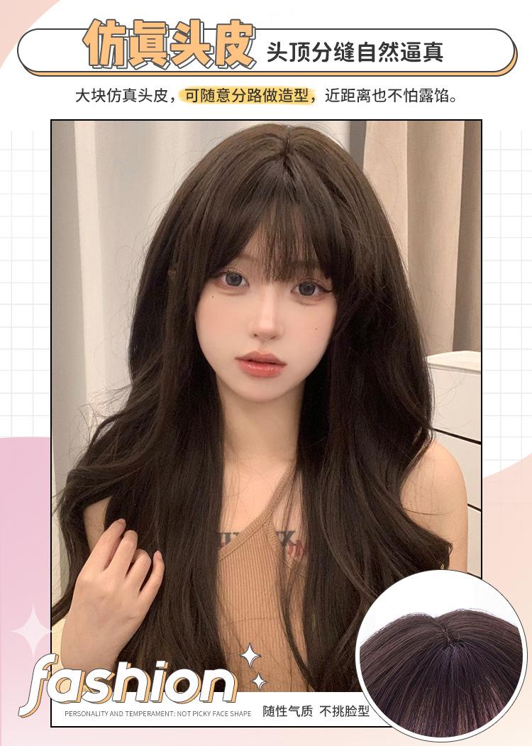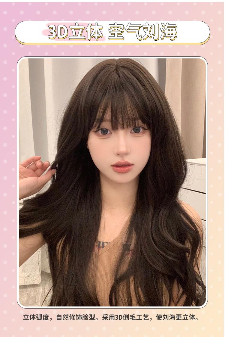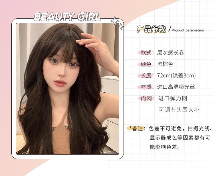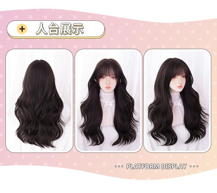 Peluca transfronteriza para mujer, cabello largo, ondulado, largo y rizado, estilo lolita, con flequillo realista y cobertura completa.