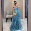Nuevo Vestido de Tirantes Estampado de Malla Transfronterizo Europeo y Americano de Primavera y Verano INS Vacaciones Ocio Vestido de Fiesta