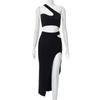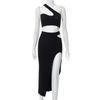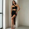 Traje de falda con hilo y abertura de color sólido para mujer, verano, transfronterizo, europeo y americano, moda, temperamento, ajustado, sexy, atuendo de chica hot