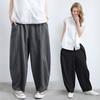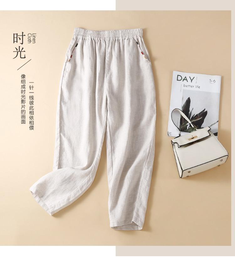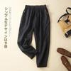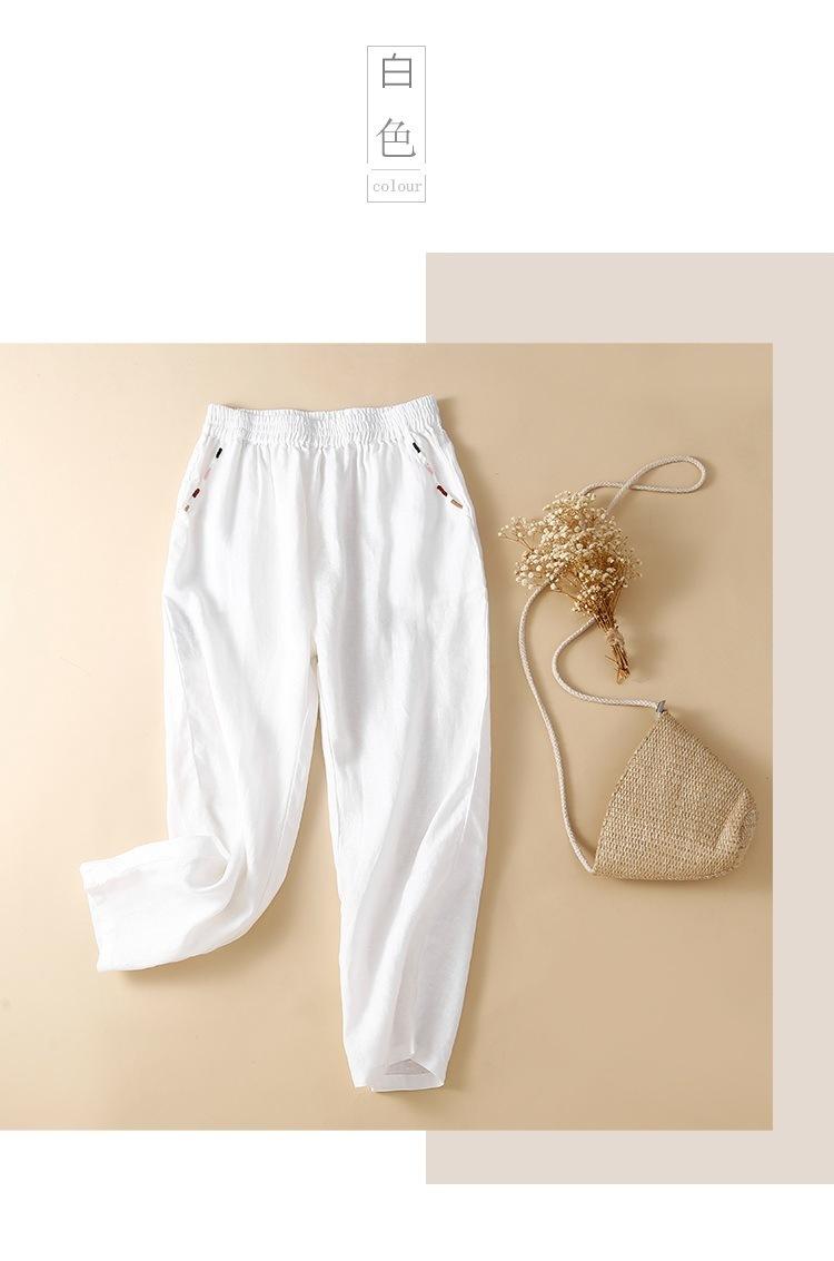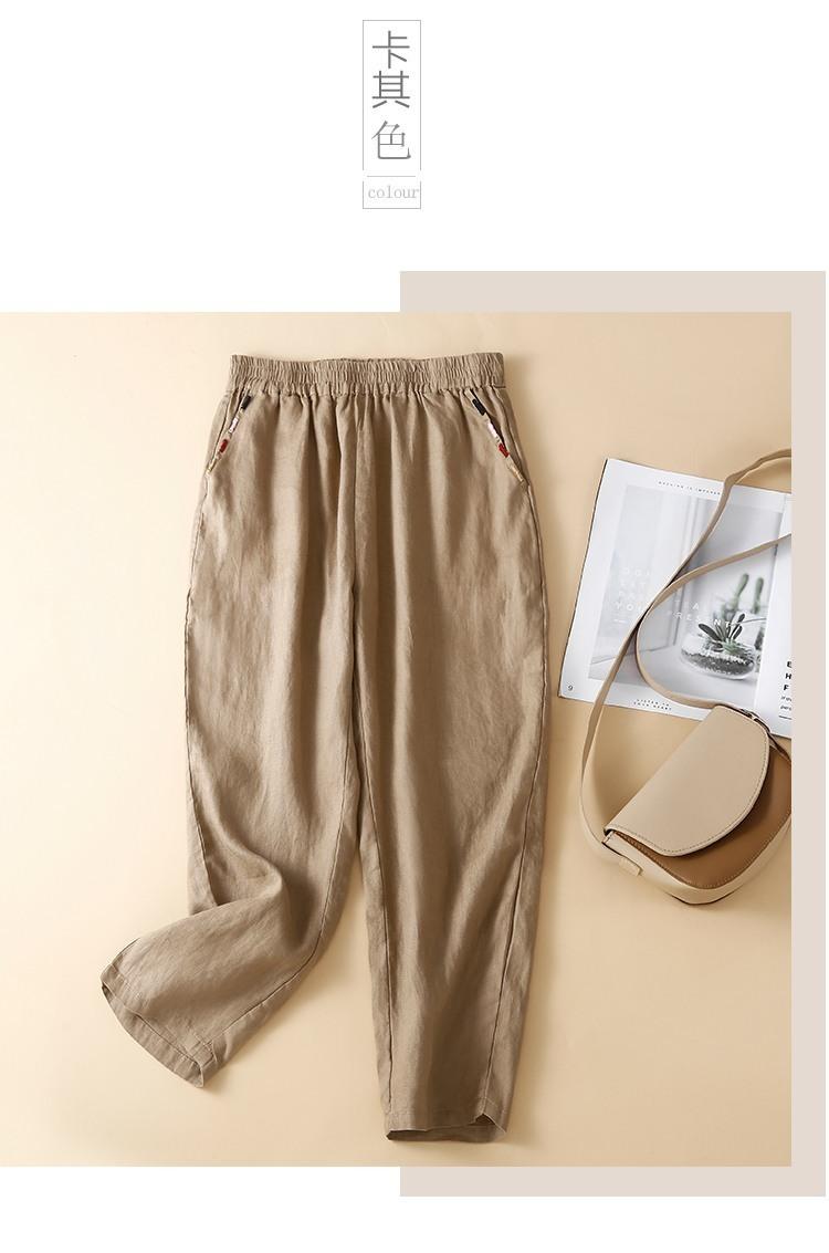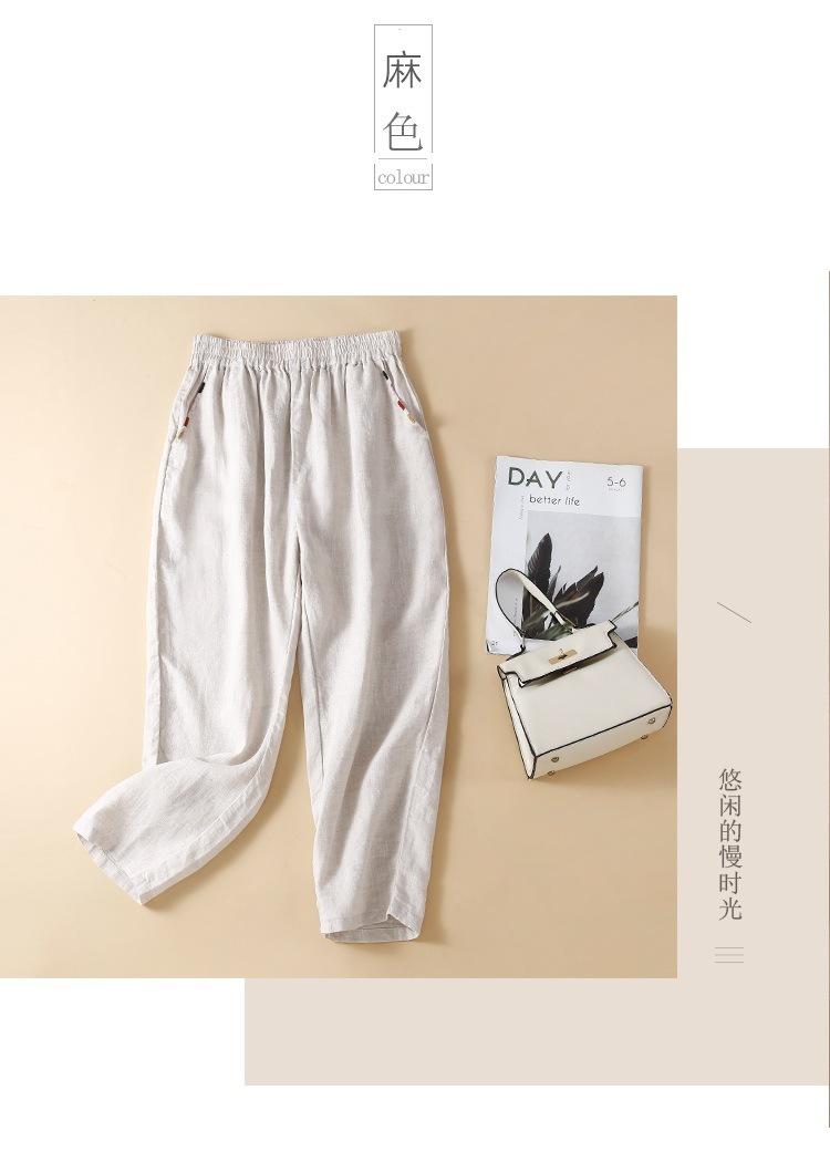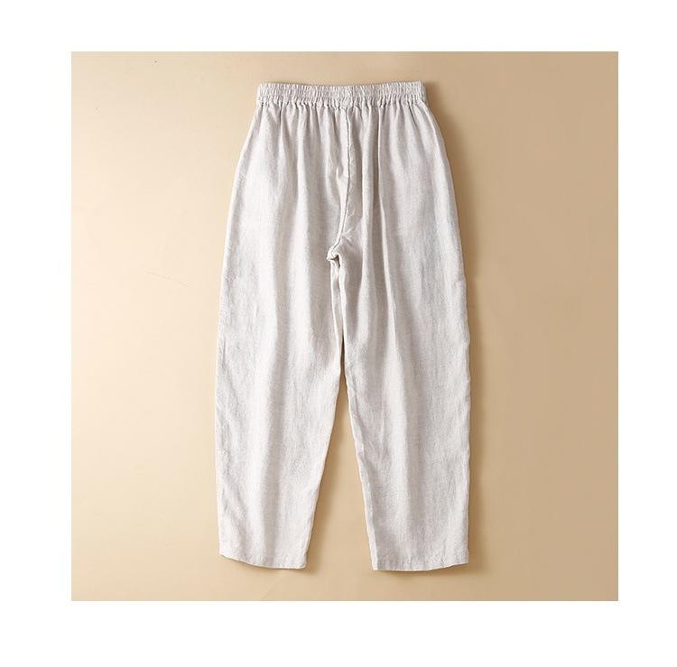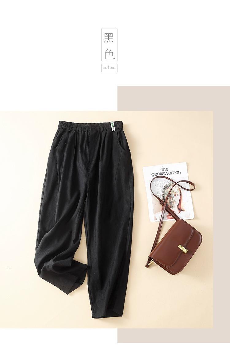 Pantalones de Lino de Algodón Verano Pantalones Harem de Mujer Sueltos Cintura Alta Adelgazantes Color Sólido Combinan con Todo Casuales Largo al Tobillo Estilo Coreano ins