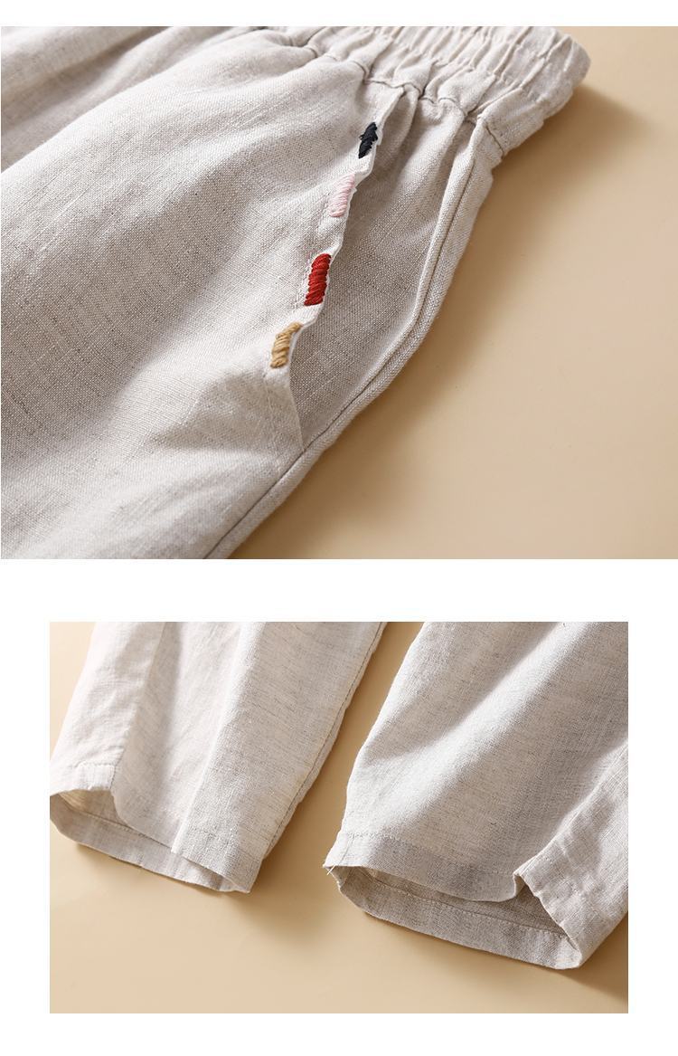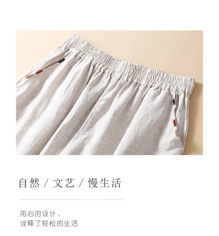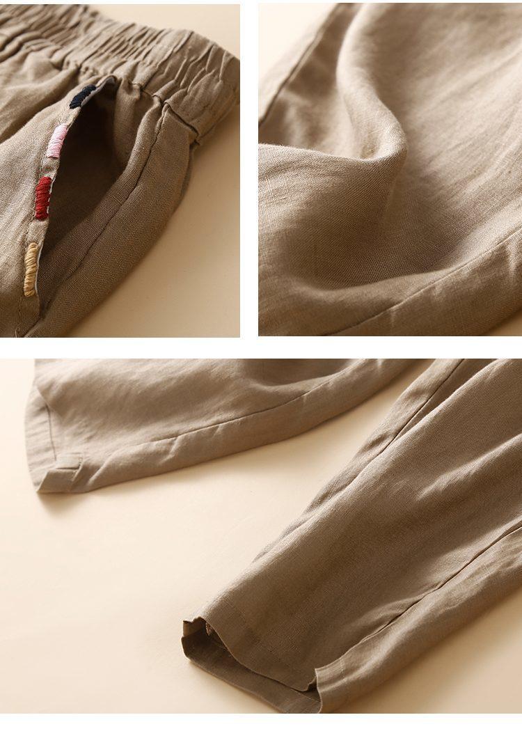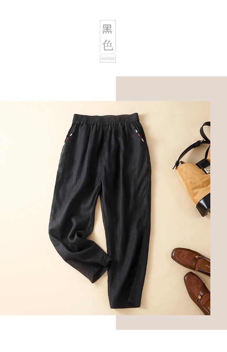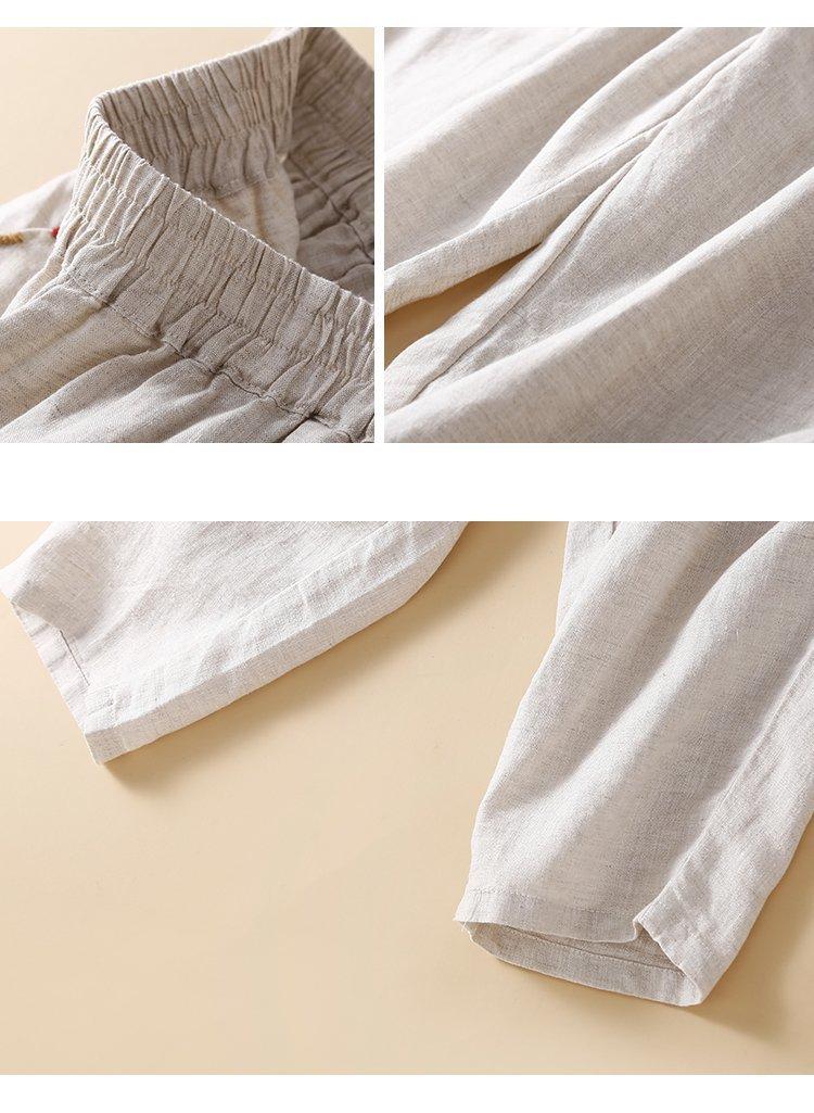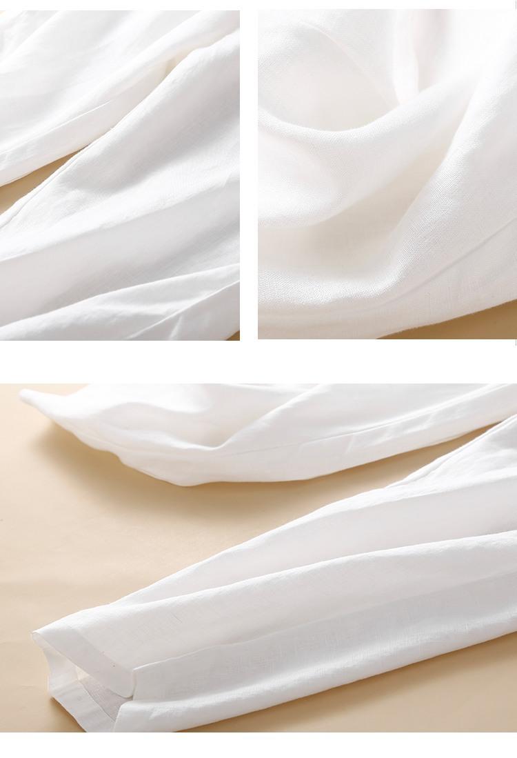 Pantalones de Lino de Algodón Verano Pantalones Harem de Mujer Sueltos Cintura Alta Adelgazantes Color Sólido Combinan con Todo Casuales Largo al Tobillo Estilo Coreano ins