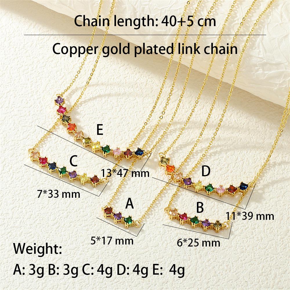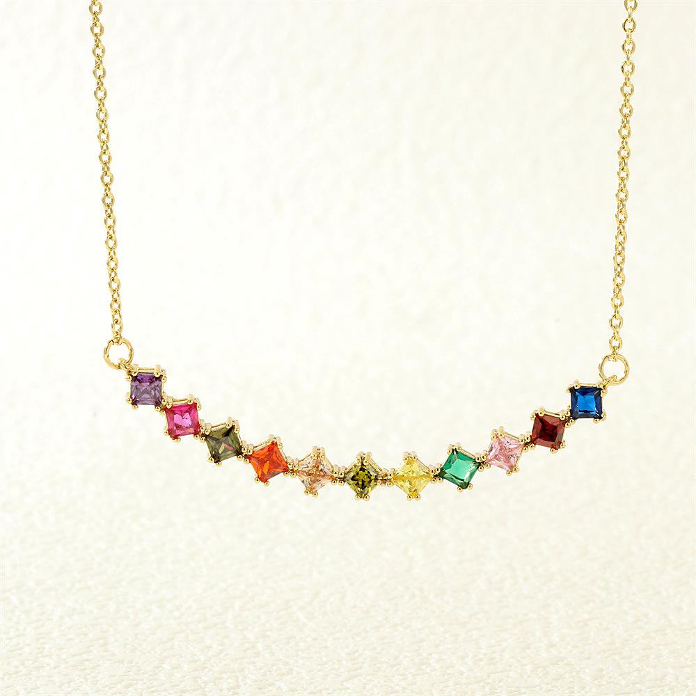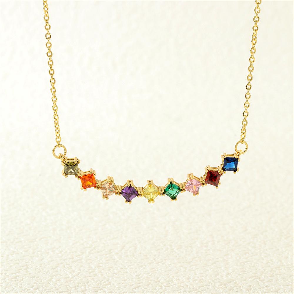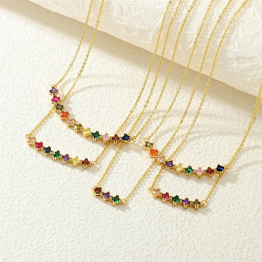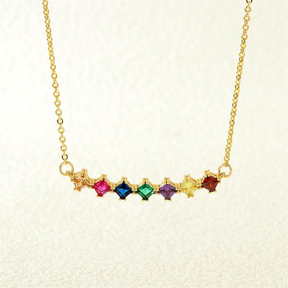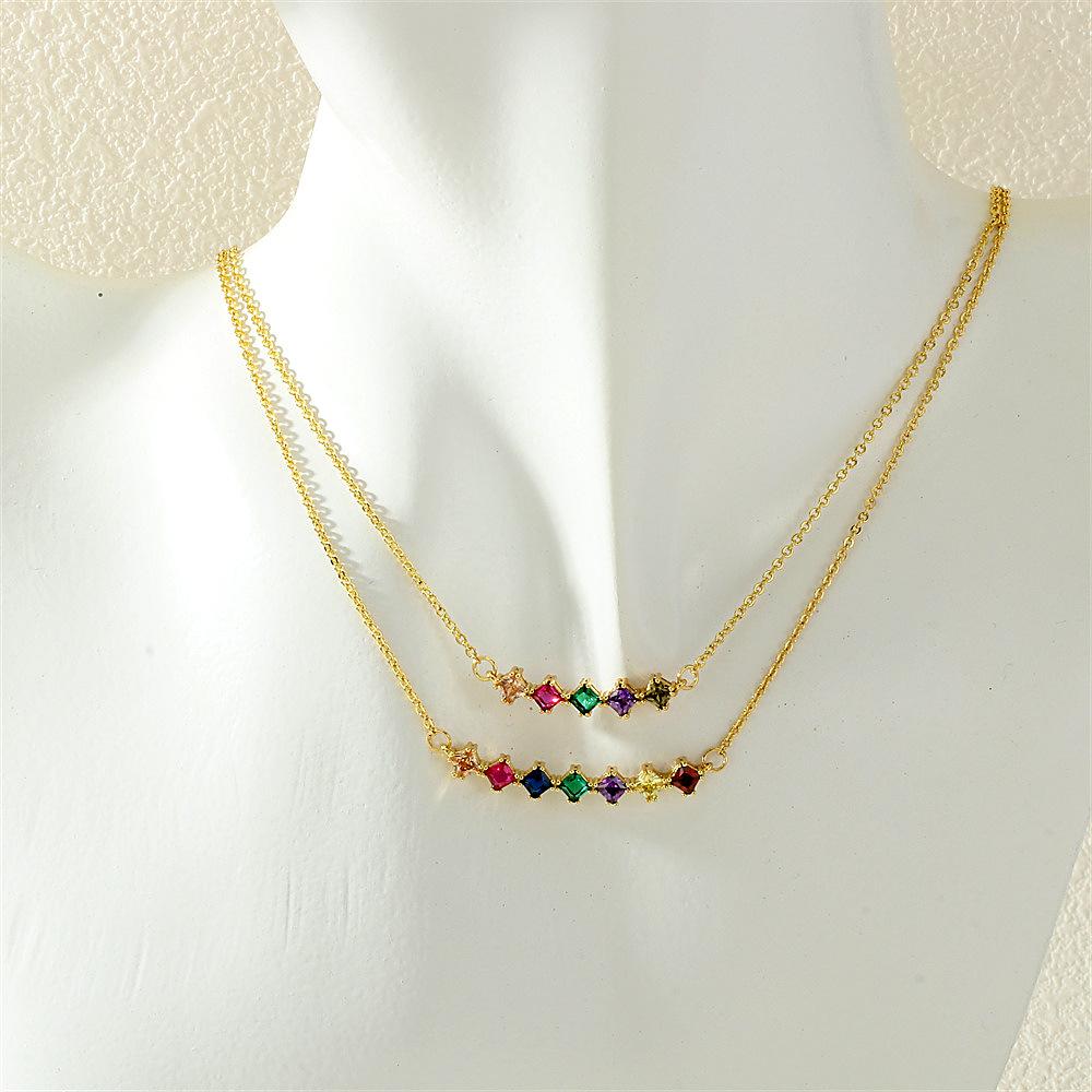 Collar de Cadena para Clavícula de Cobre de Alta Calidad Chapado en Oro de 18K para Mujer con Colgante Largo de Zirconia de Diamantes Geométricos Arcoíris Micropavé