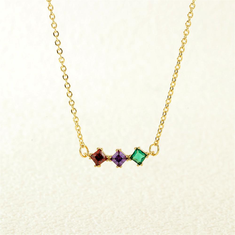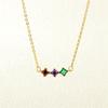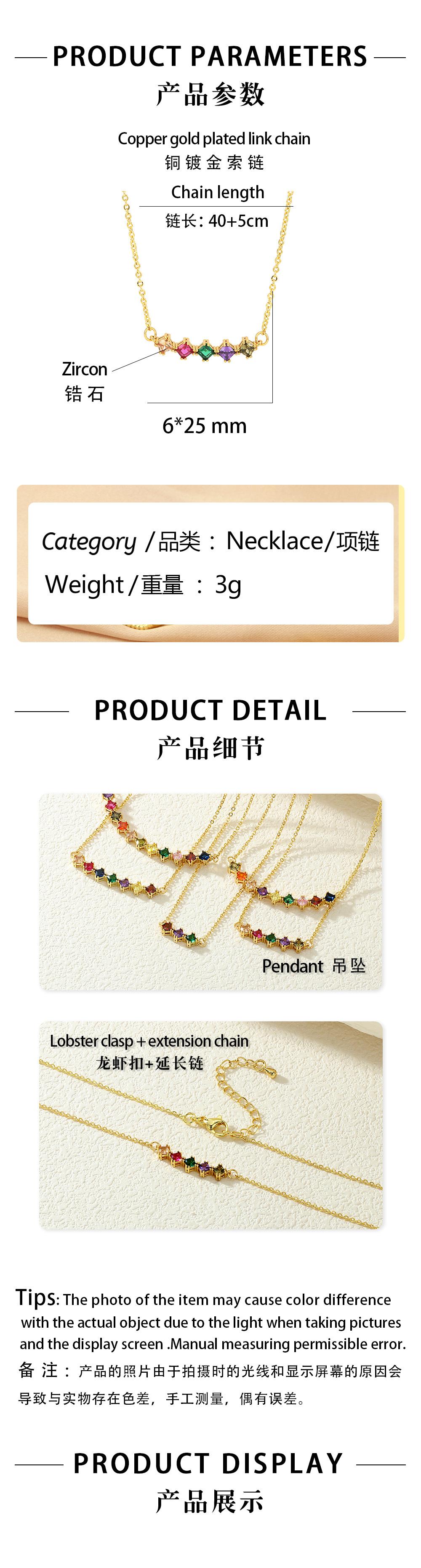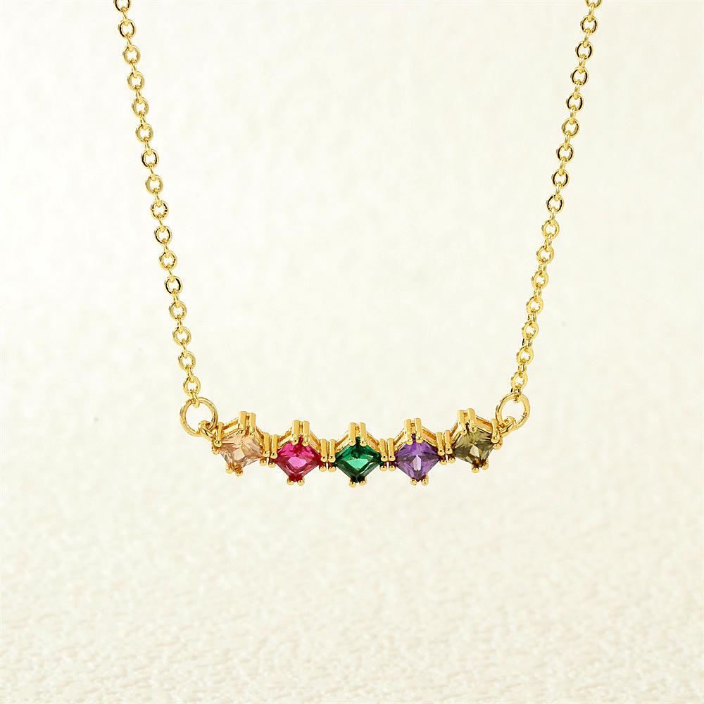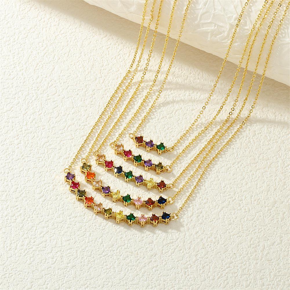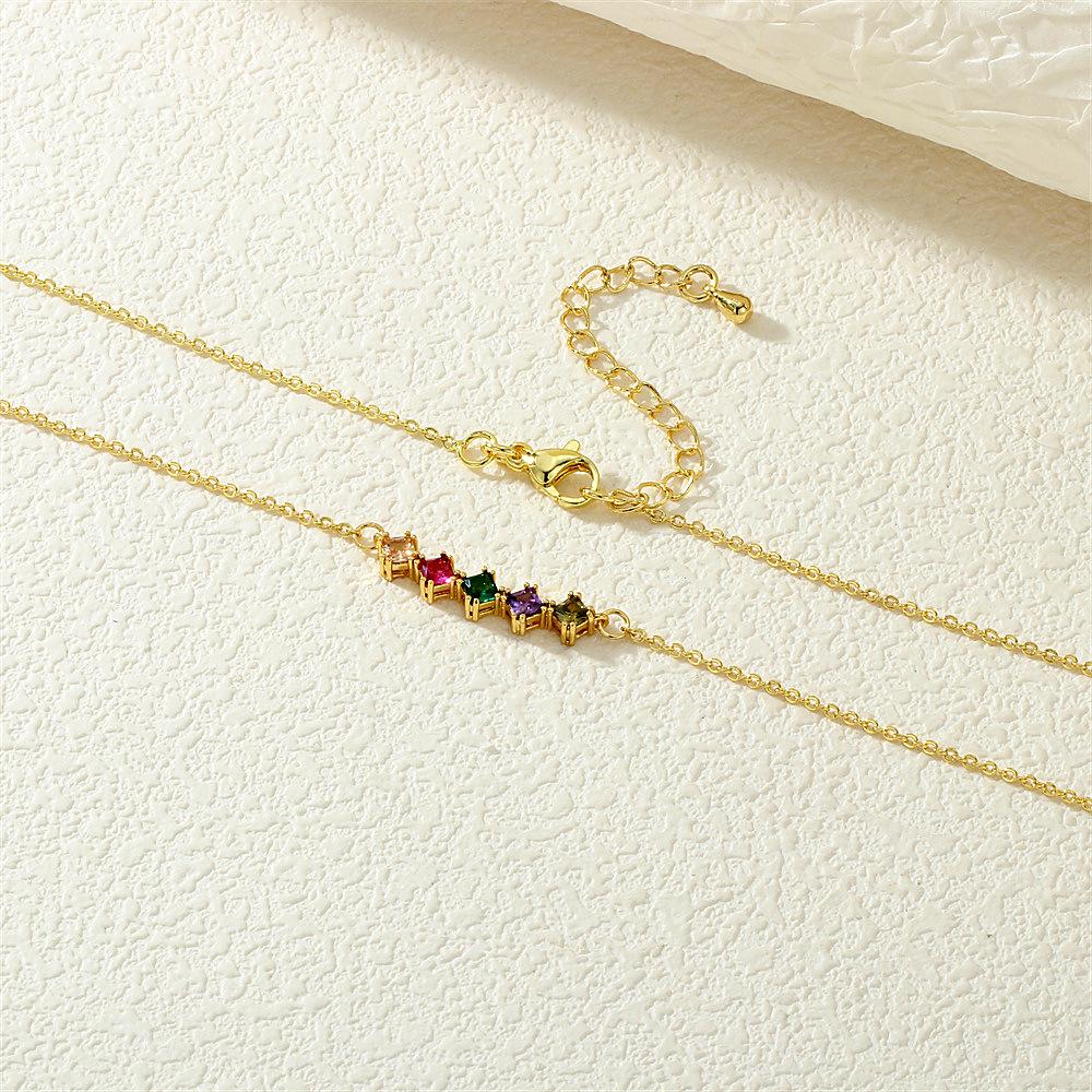 Collar de Cadena para Clavícula de Cobre de Alta Calidad Chapado en Oro de 18K para Mujer con Colgante Largo de Zirconia de Diamantes Geométricos Arcoíris Micropavé