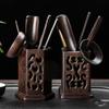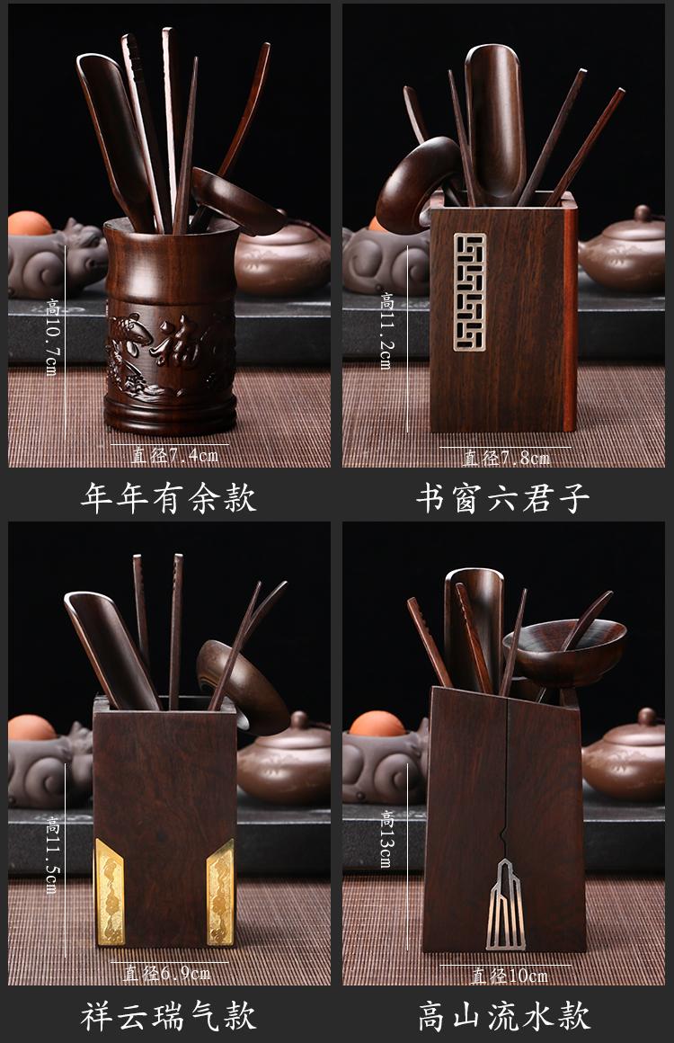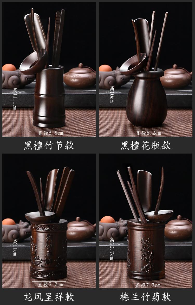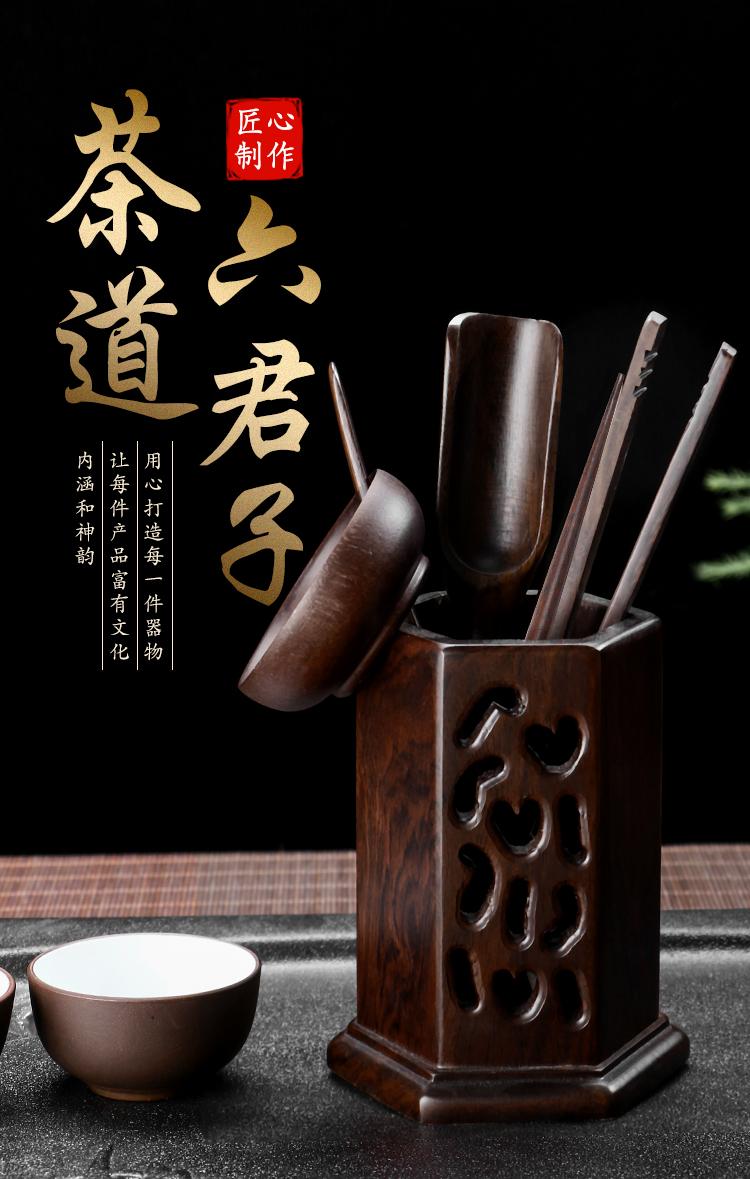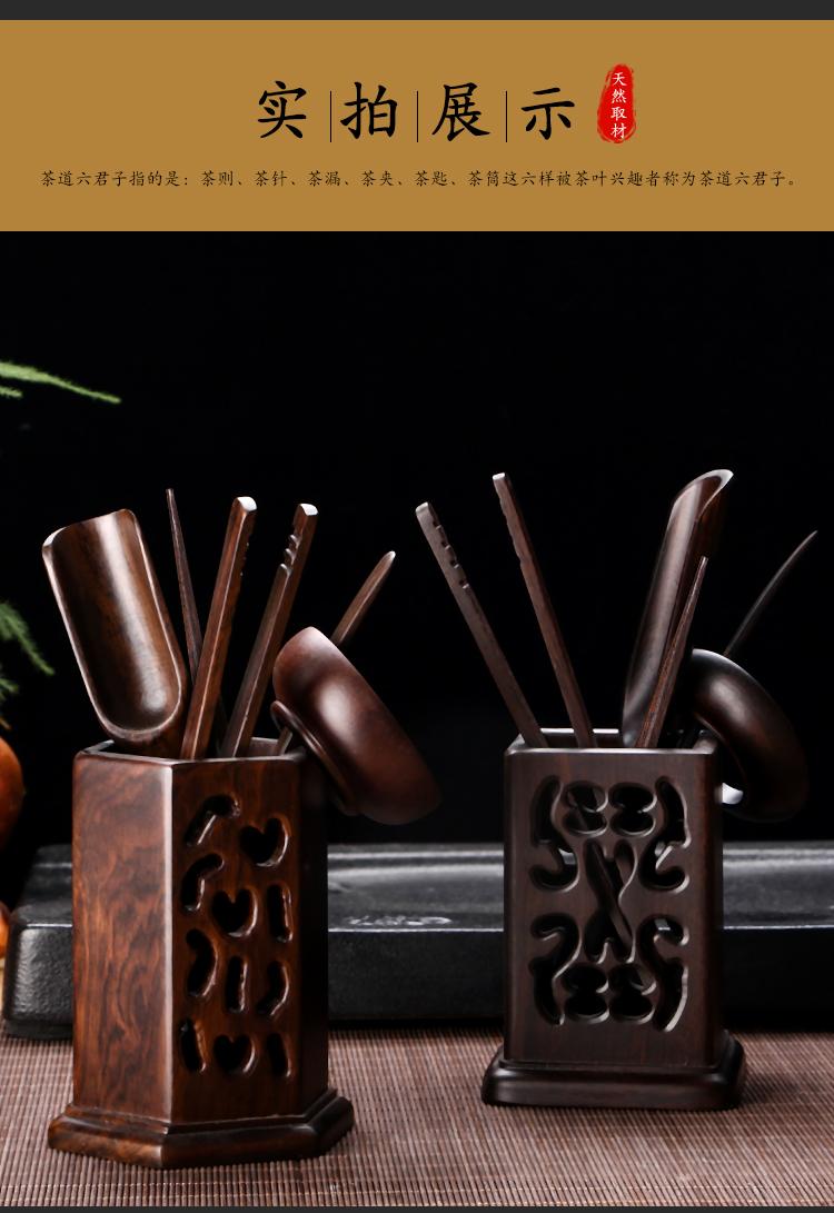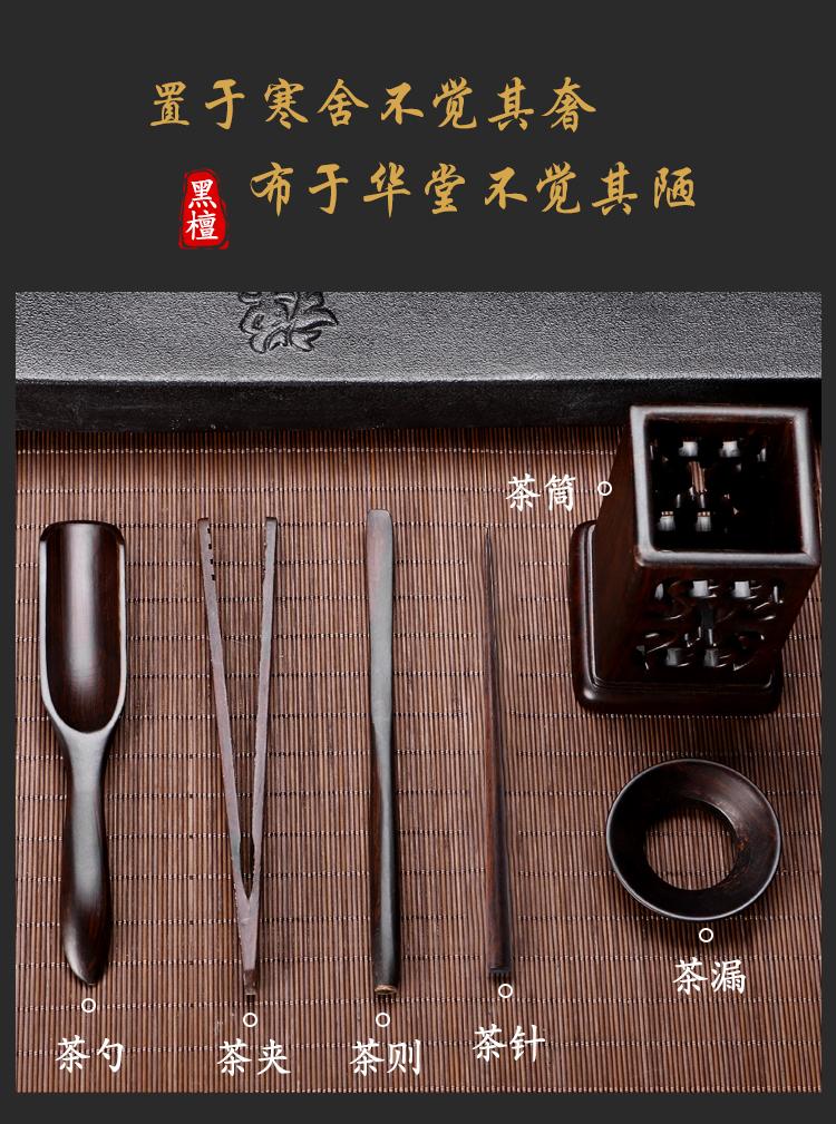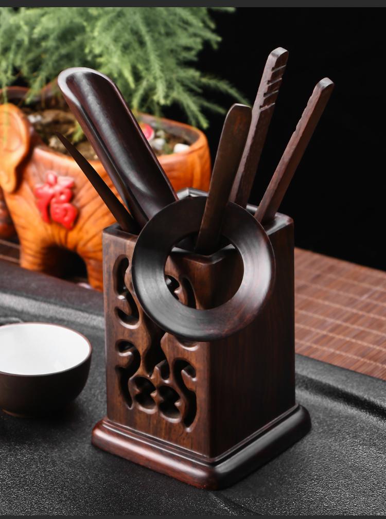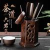 Juego de seis caballeros para ceremonia del té de madera maciza de ébano, pinza para té doméstica, cuchara, cuchillo para té Pu'er, aguja para té, tubo para té, accesorios para juego de té kung fu