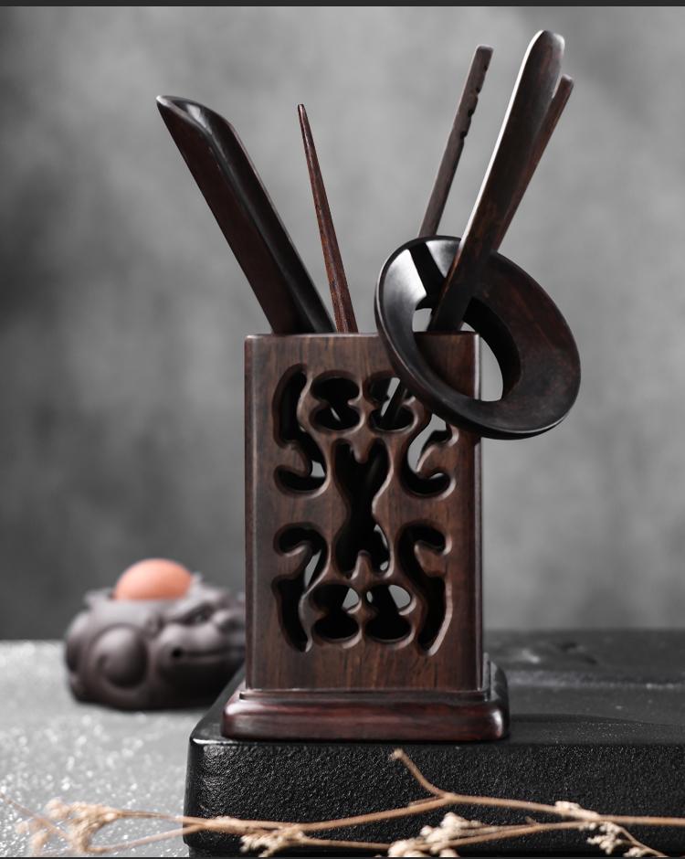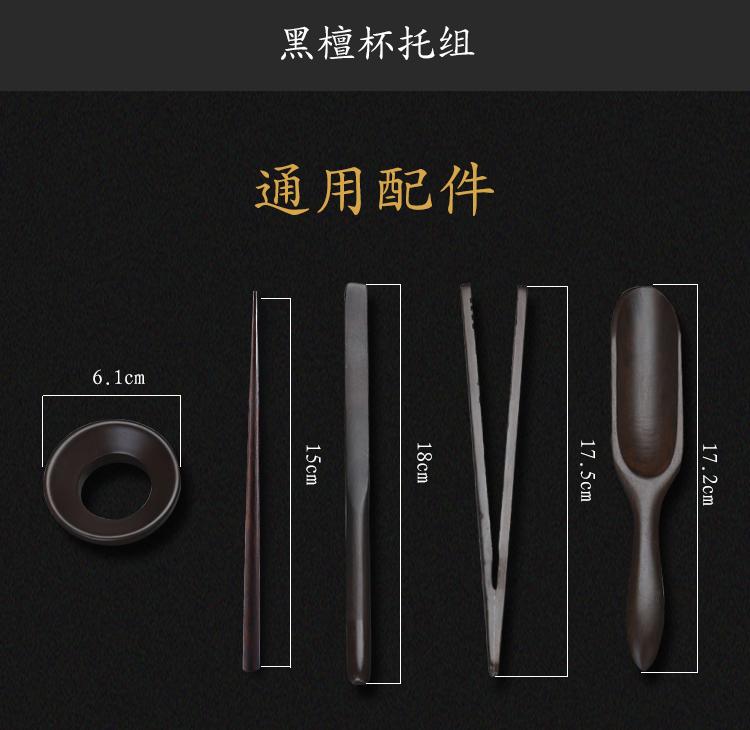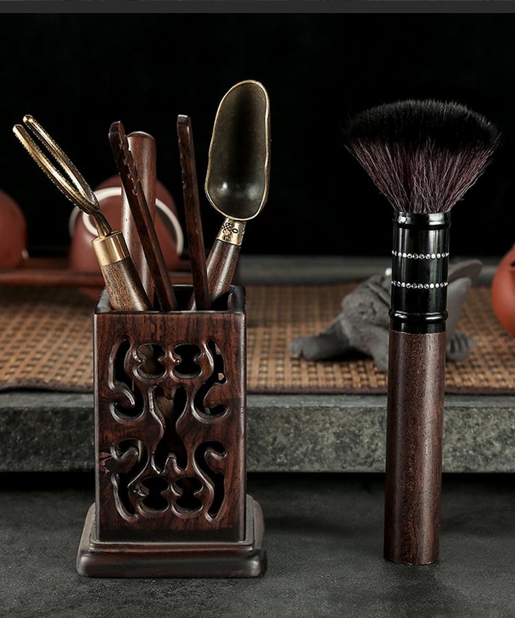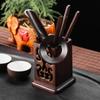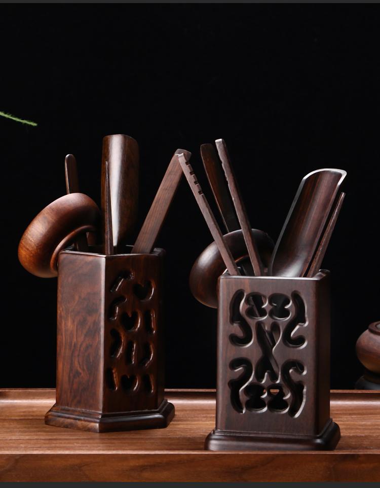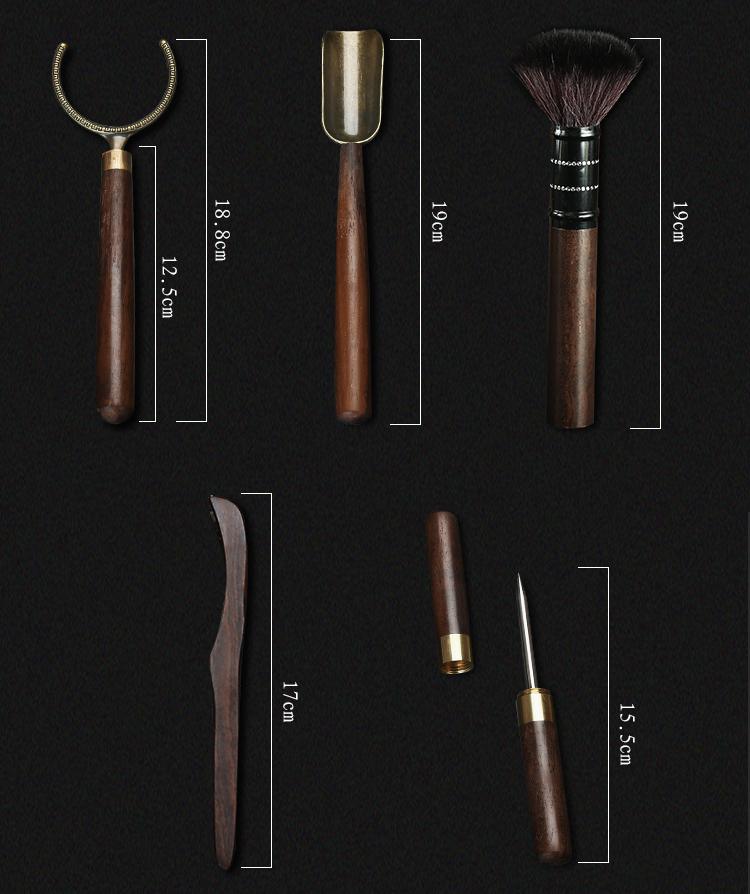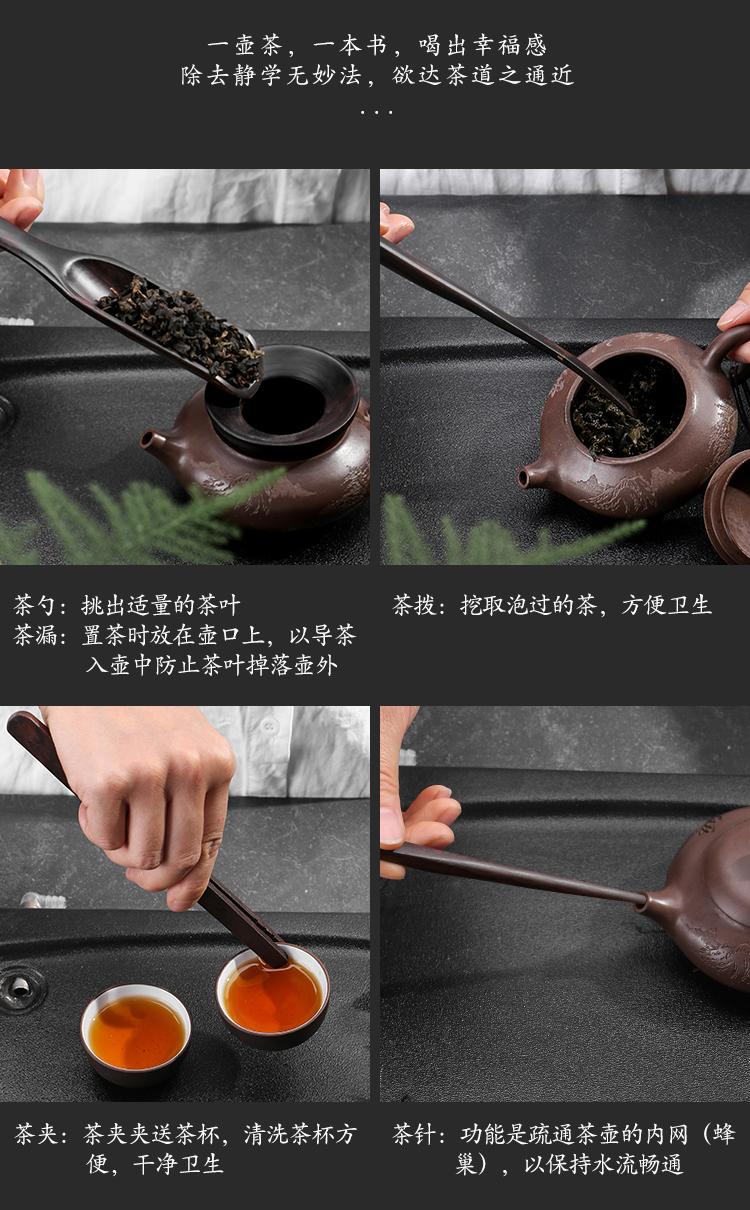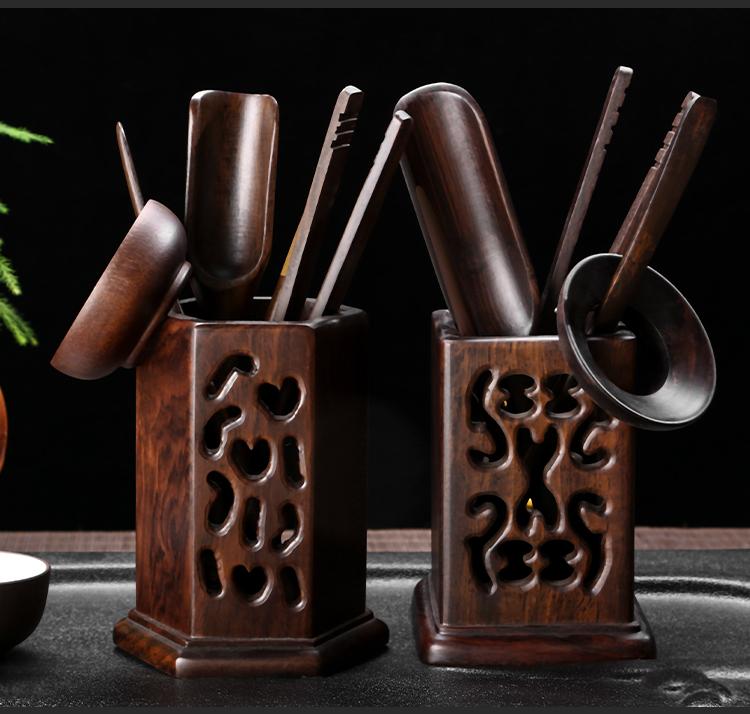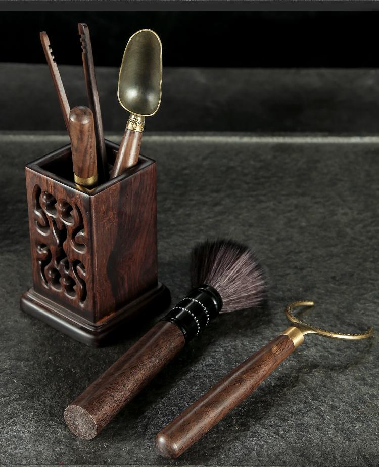 Juego de seis caballeros para ceremonia del té de madera maciza de ébano, pinza para té doméstica, cuchara, cuchillo para té Pu'er, aguja para té, tubo para té, accesorios para juego de té kung fu