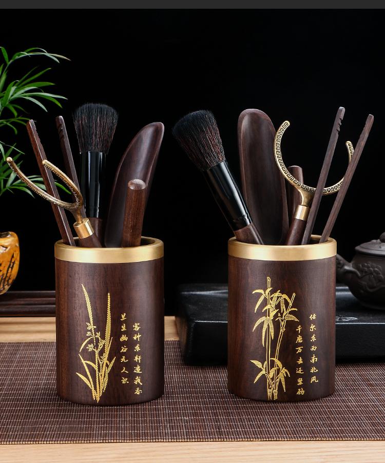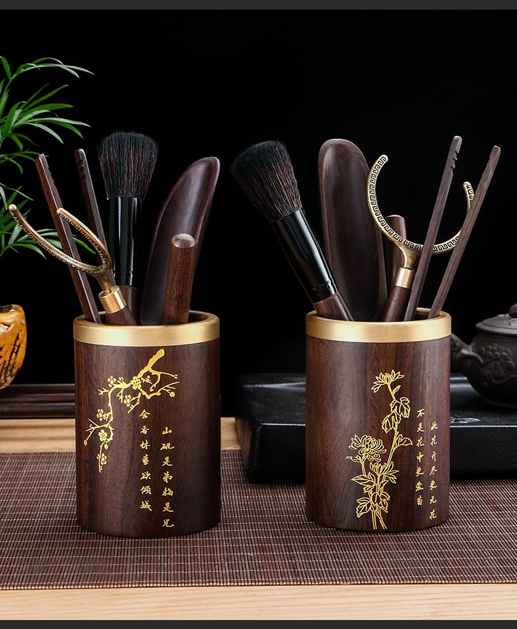 Copper Wood plum blossom six gentleman set [send tea towel]]