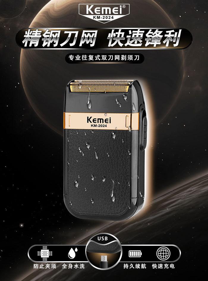 Afeitadora Recíproca Kemei Transfronteriza Km-2024 Afeitadora Eléctrica Super Limpia para Hombres Lavable para Todo el Cuerpo