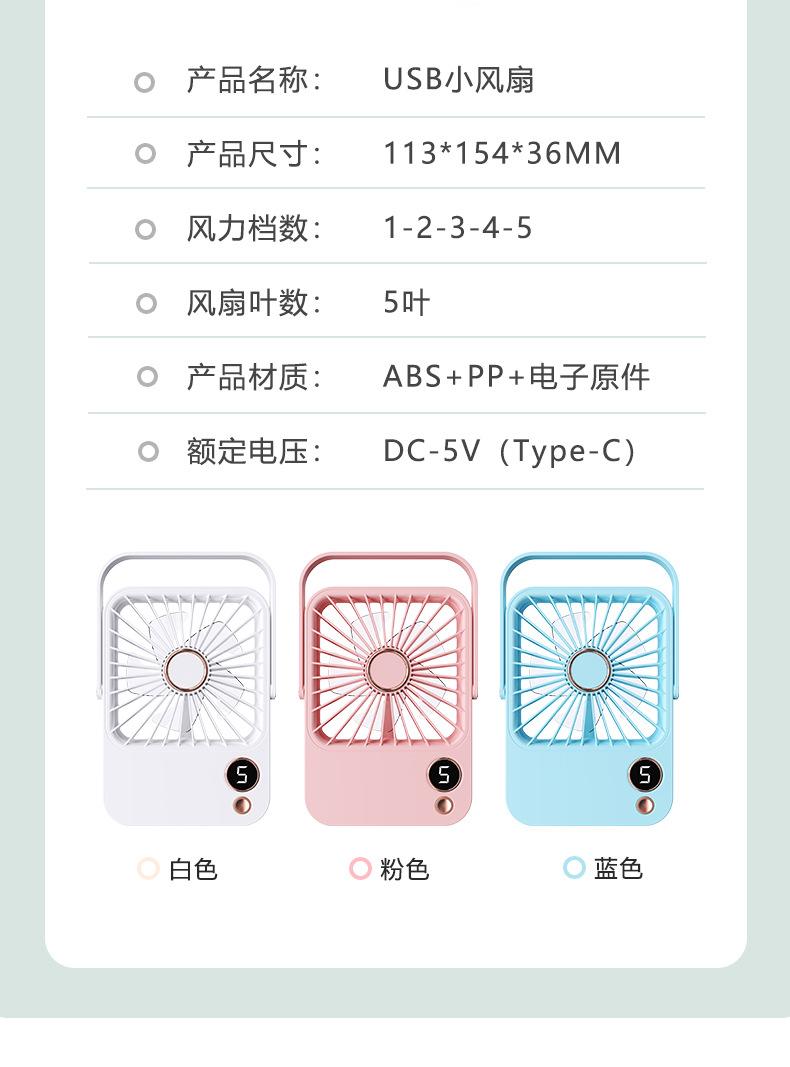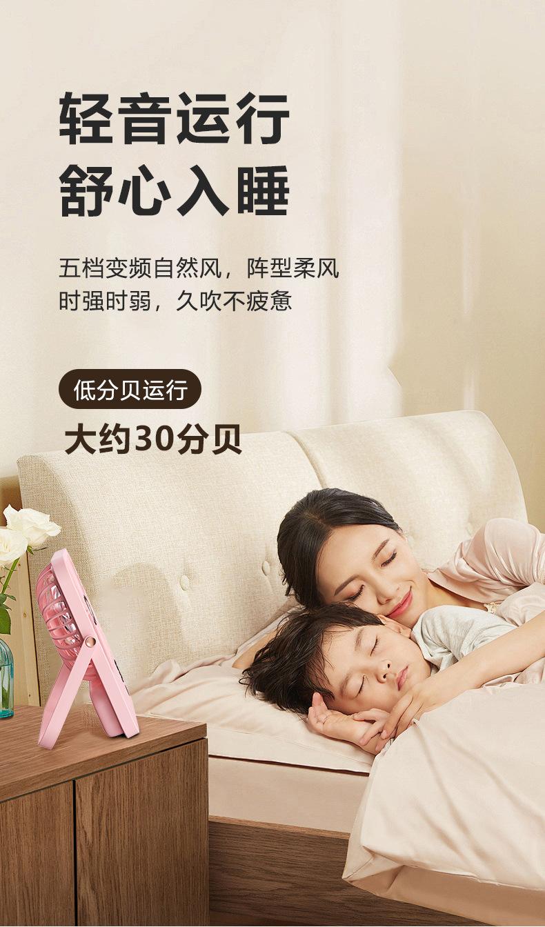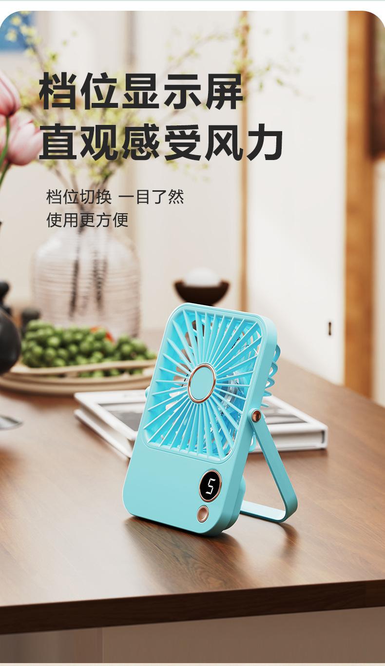 Ventilador Pequeño de Escritorio Delgado y Ligero Oficina Hogar Plegable de Mano Portátil Carga Viento Fuerte de Cinco Velocidades Bajo Ruido Mini Ventilador