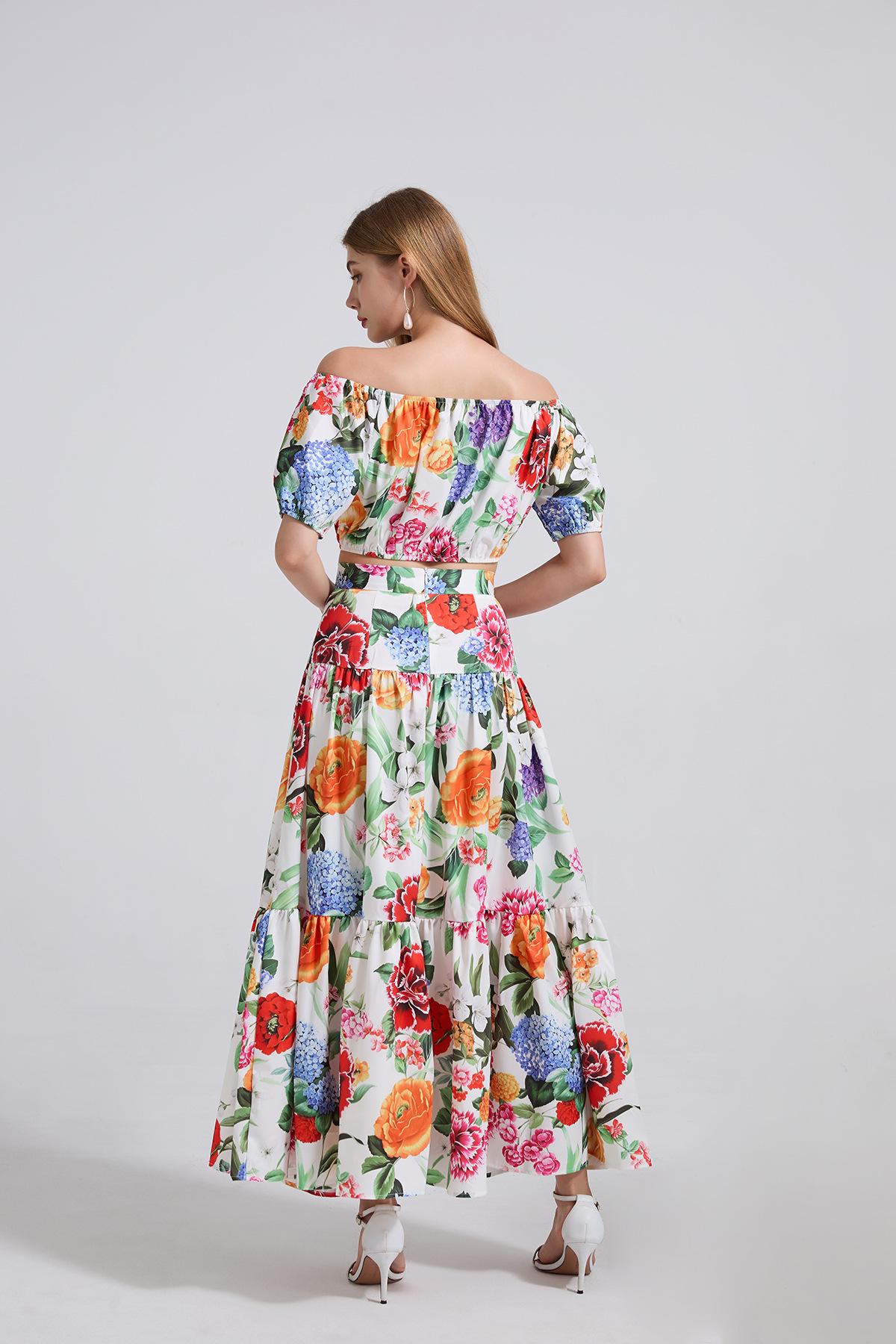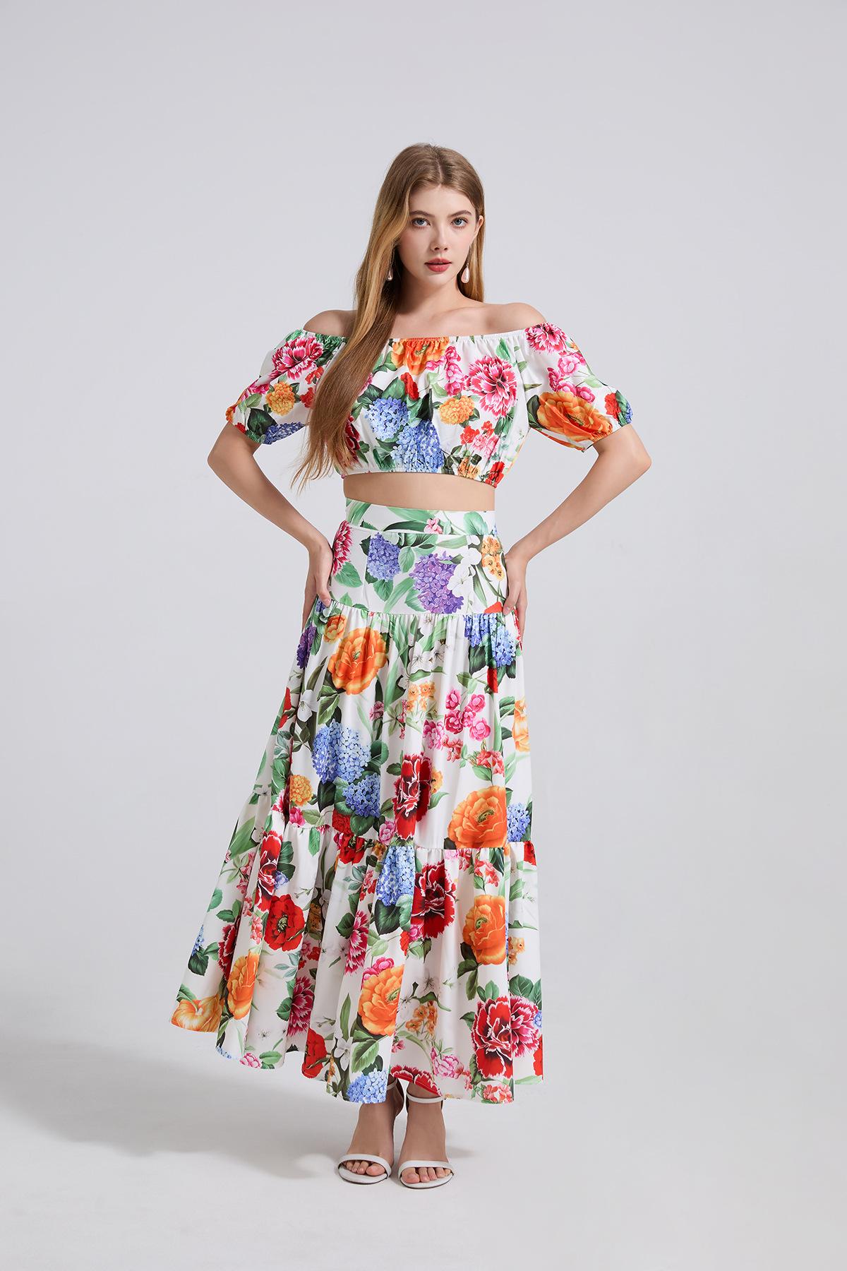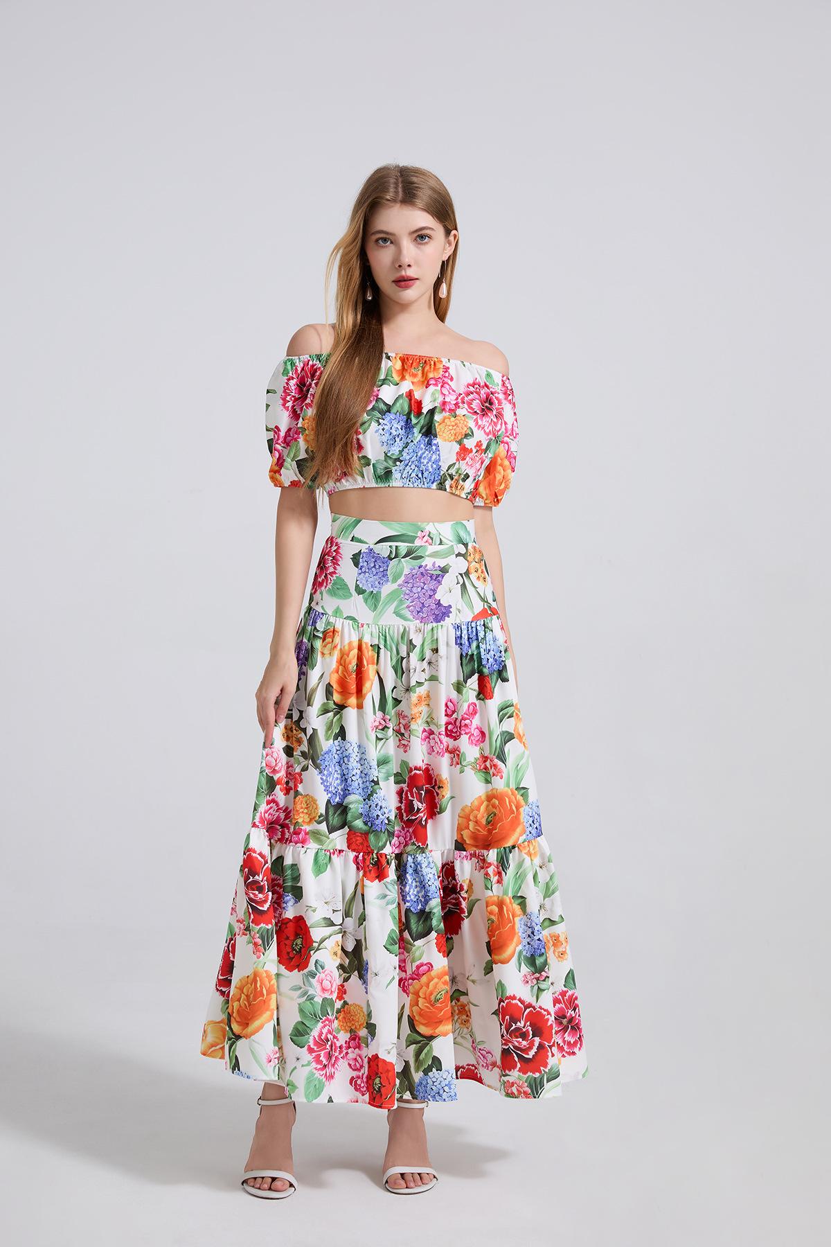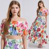 Moda Europea y Americana 2025 Top Corto de Tubo con Cuello de una Línea y Hombros Descubiertos + Falda de Cintura Alta Traje de Dos Piezas